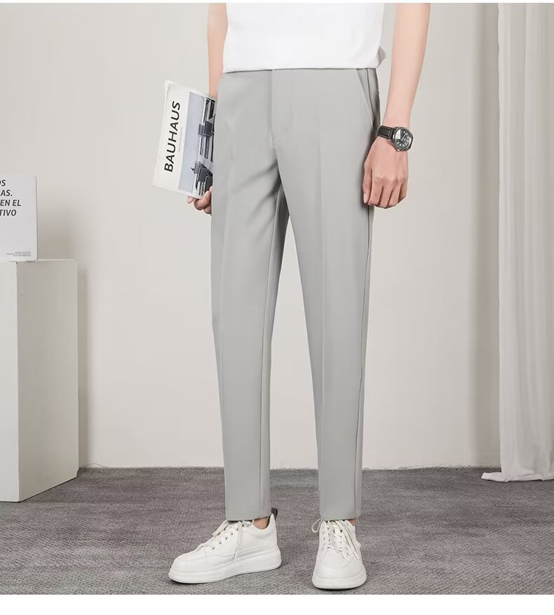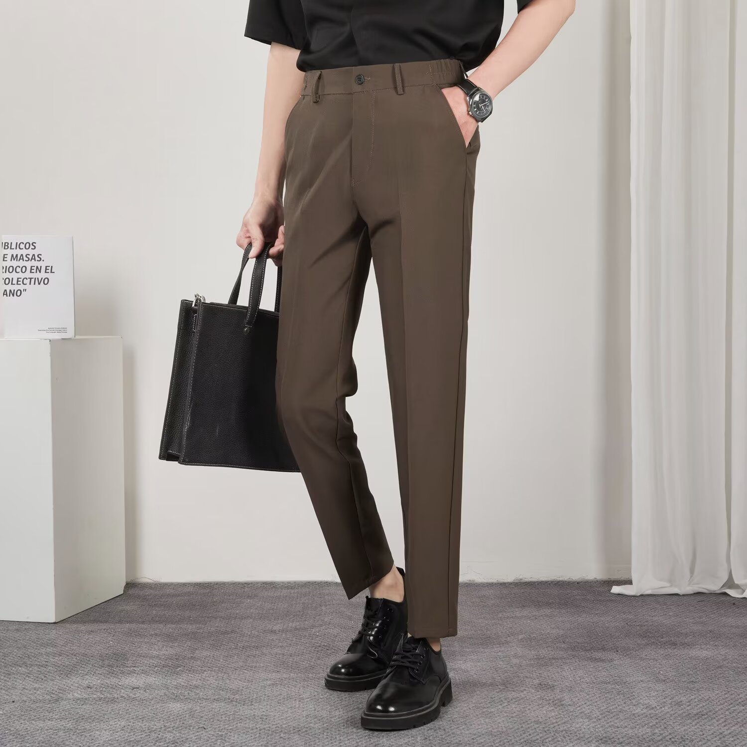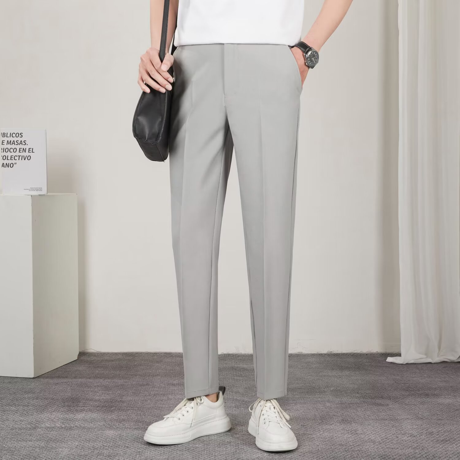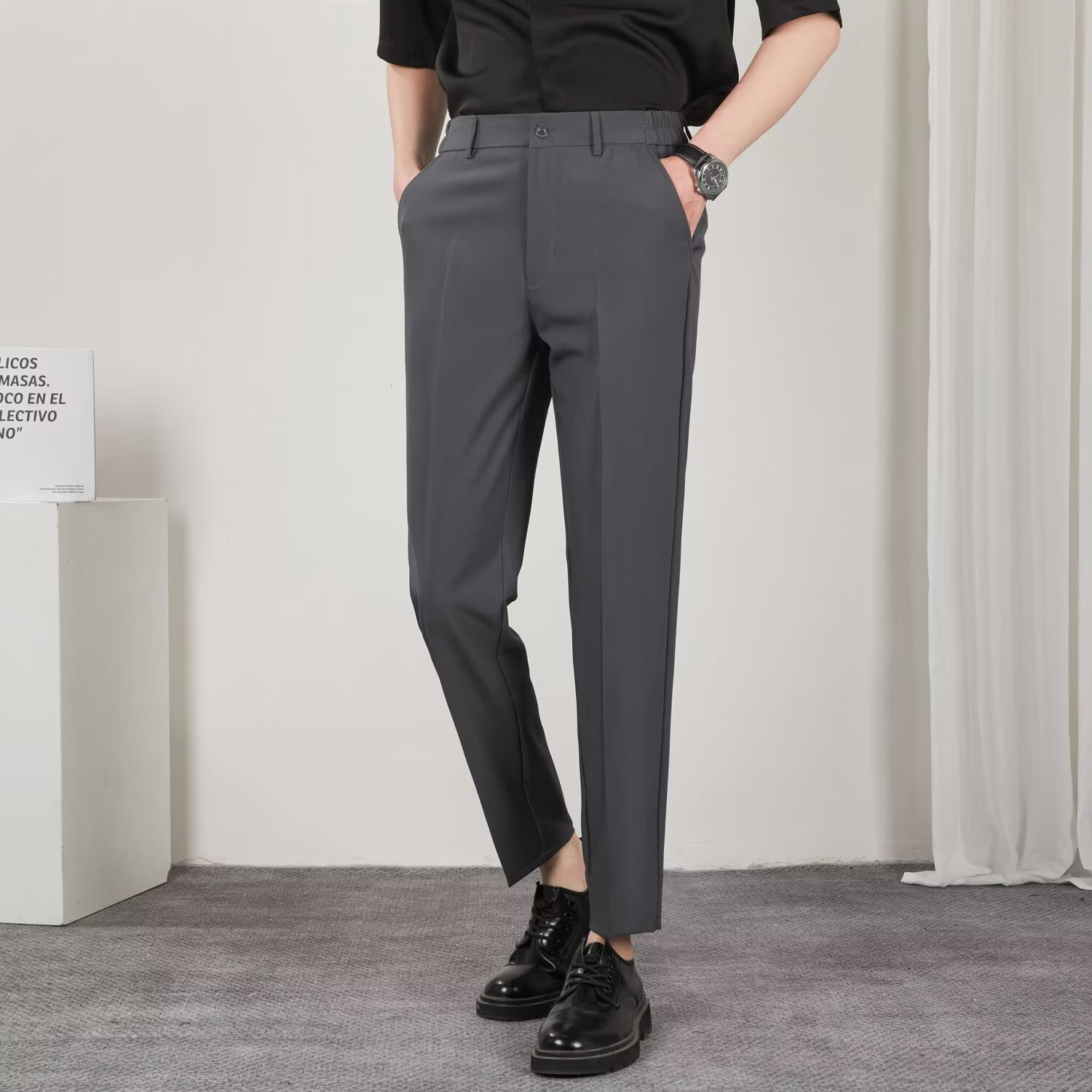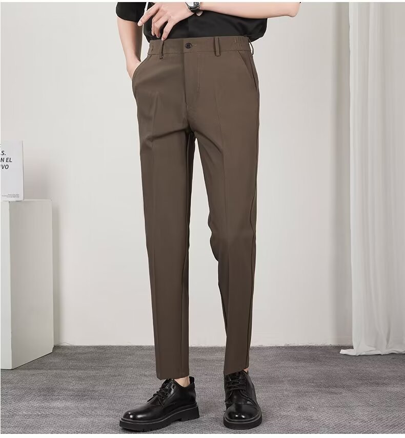 春秋新款小西裤男长裤子坠垂感修身小脚九分休闲裤男士商务西装裤