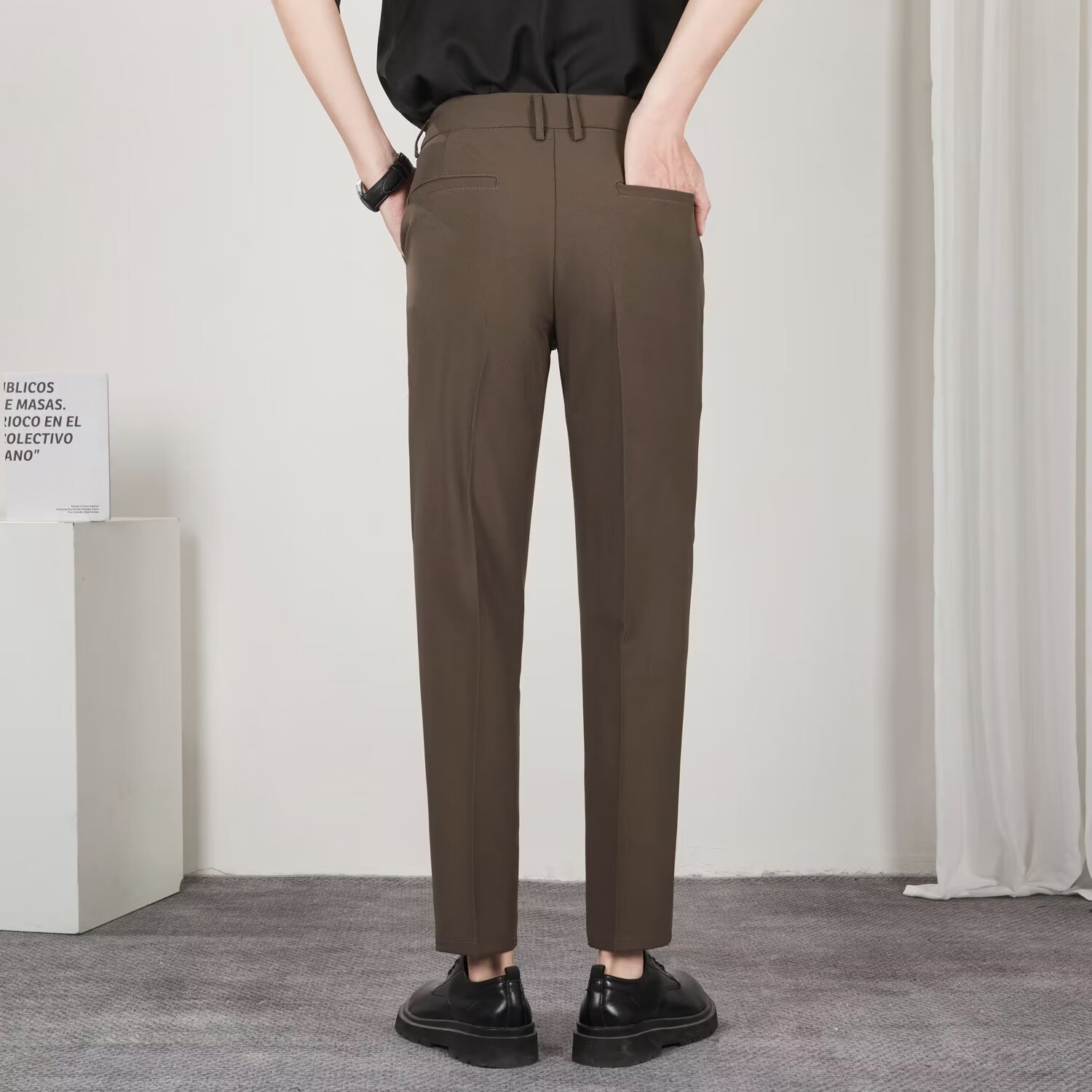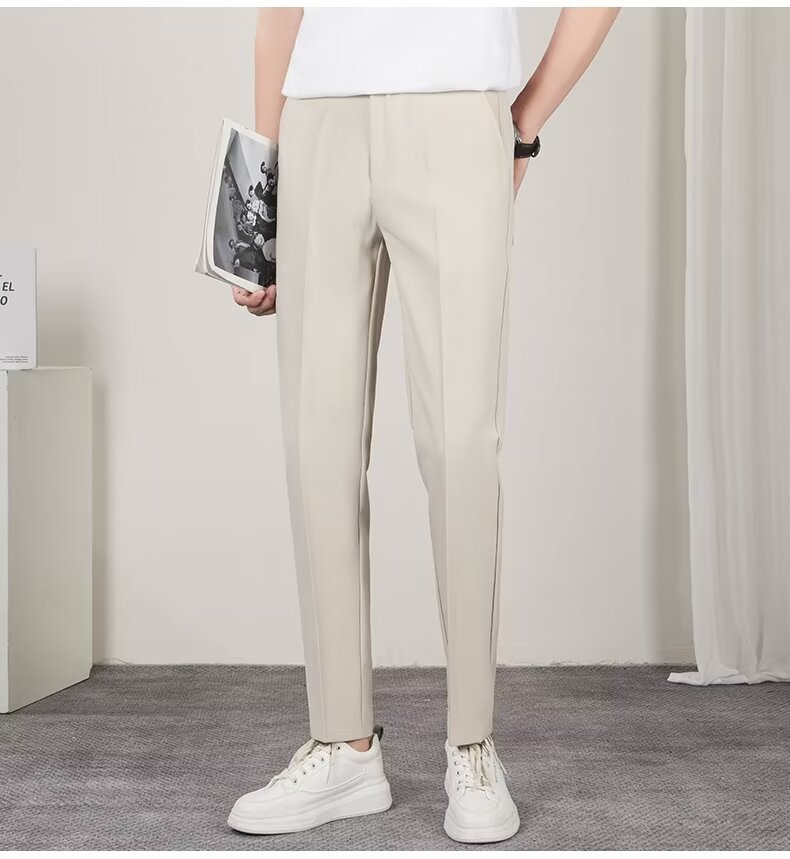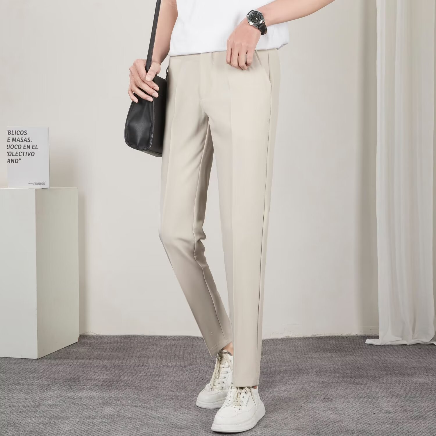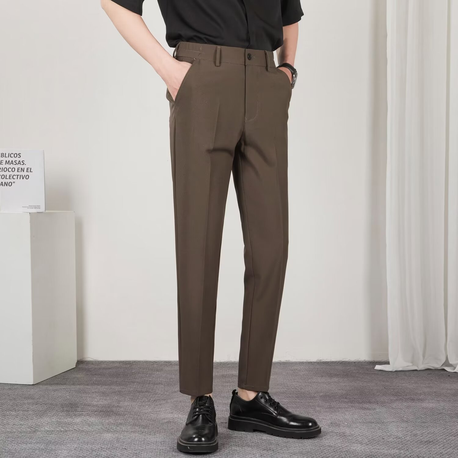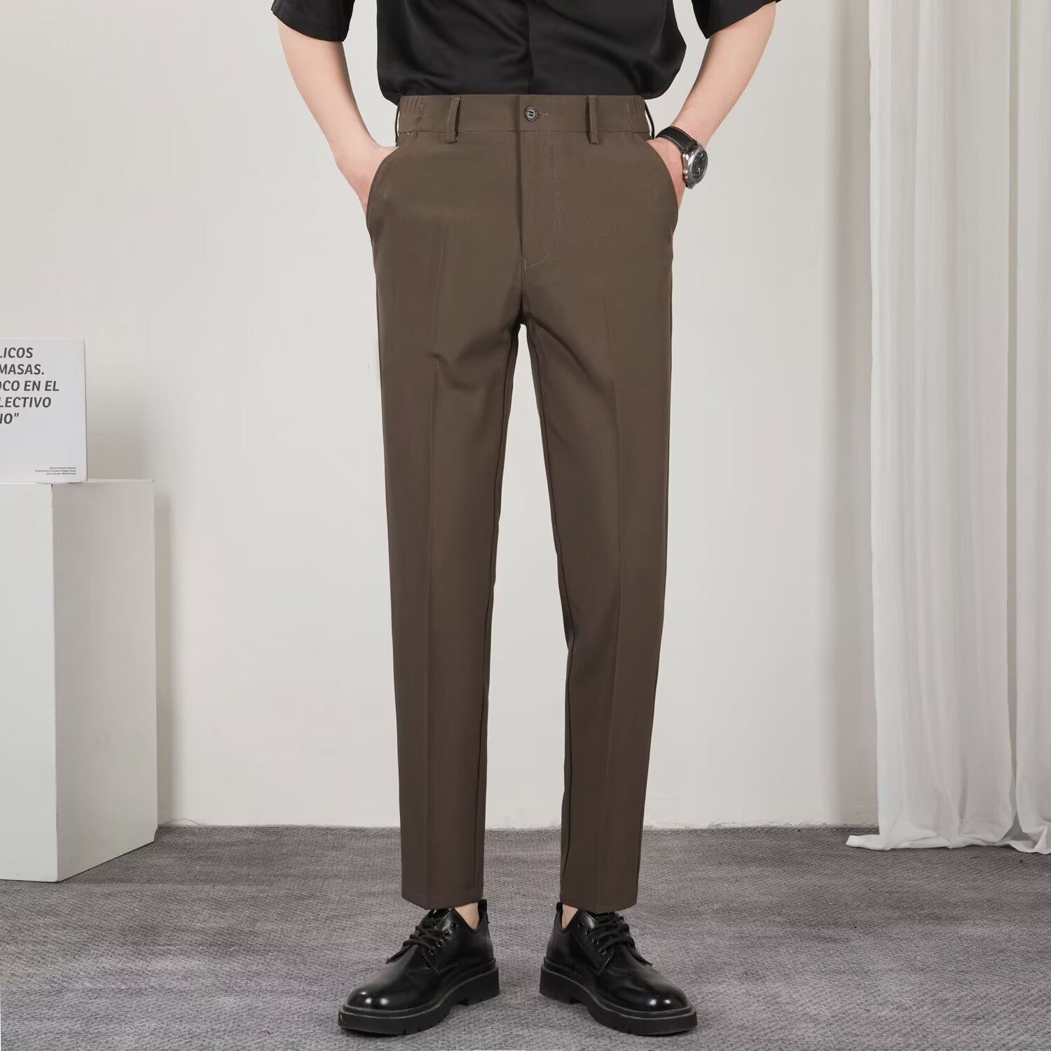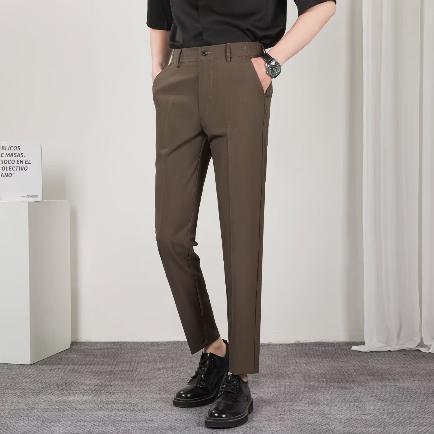 春秋新款小西裤男长裤子坠垂感修身小脚九分休闲裤男士商务西装裤