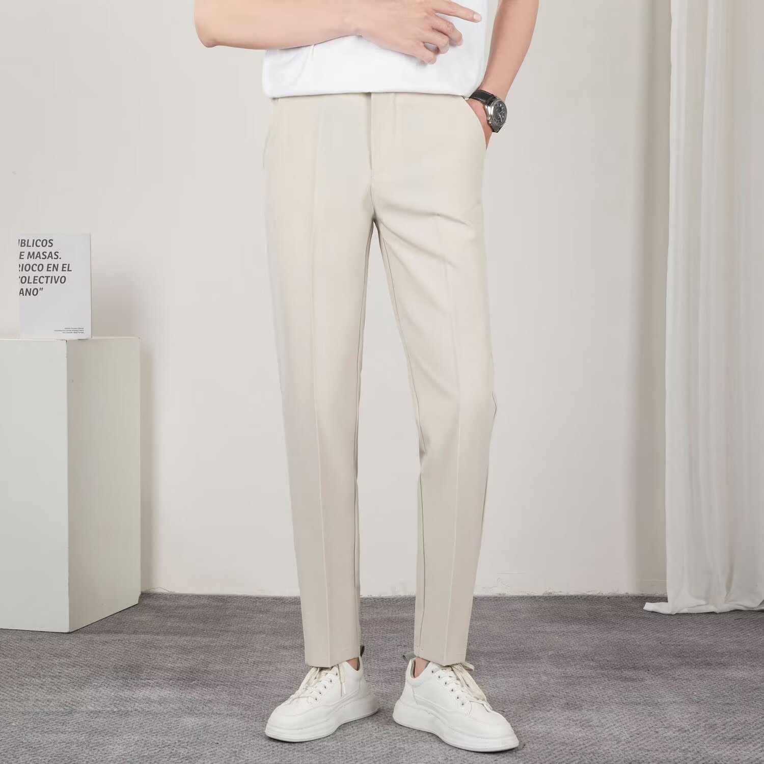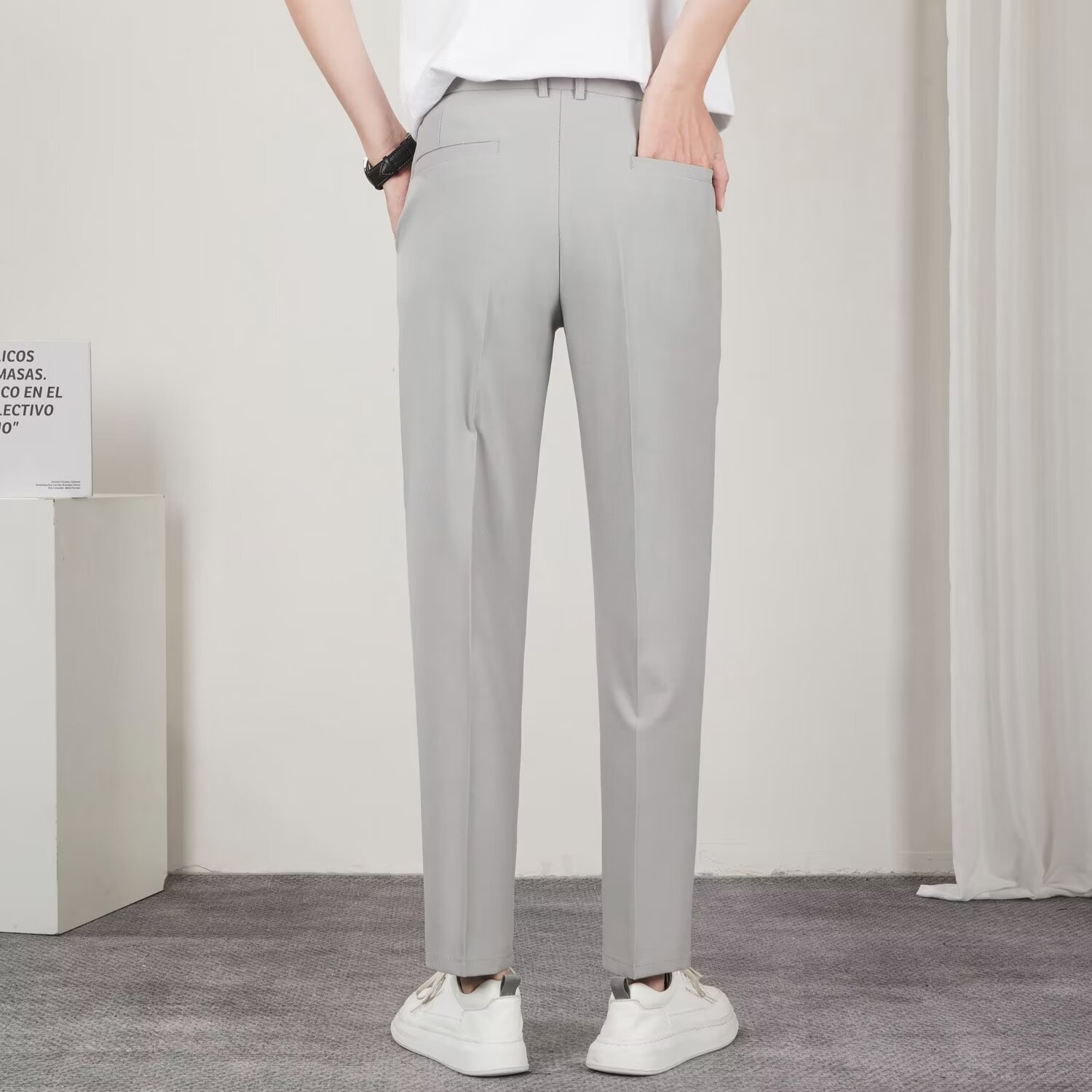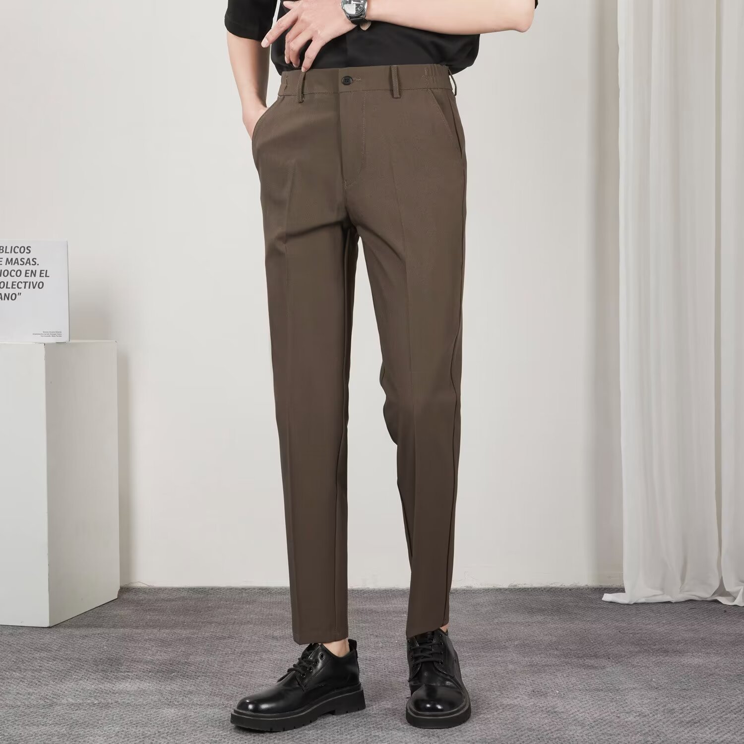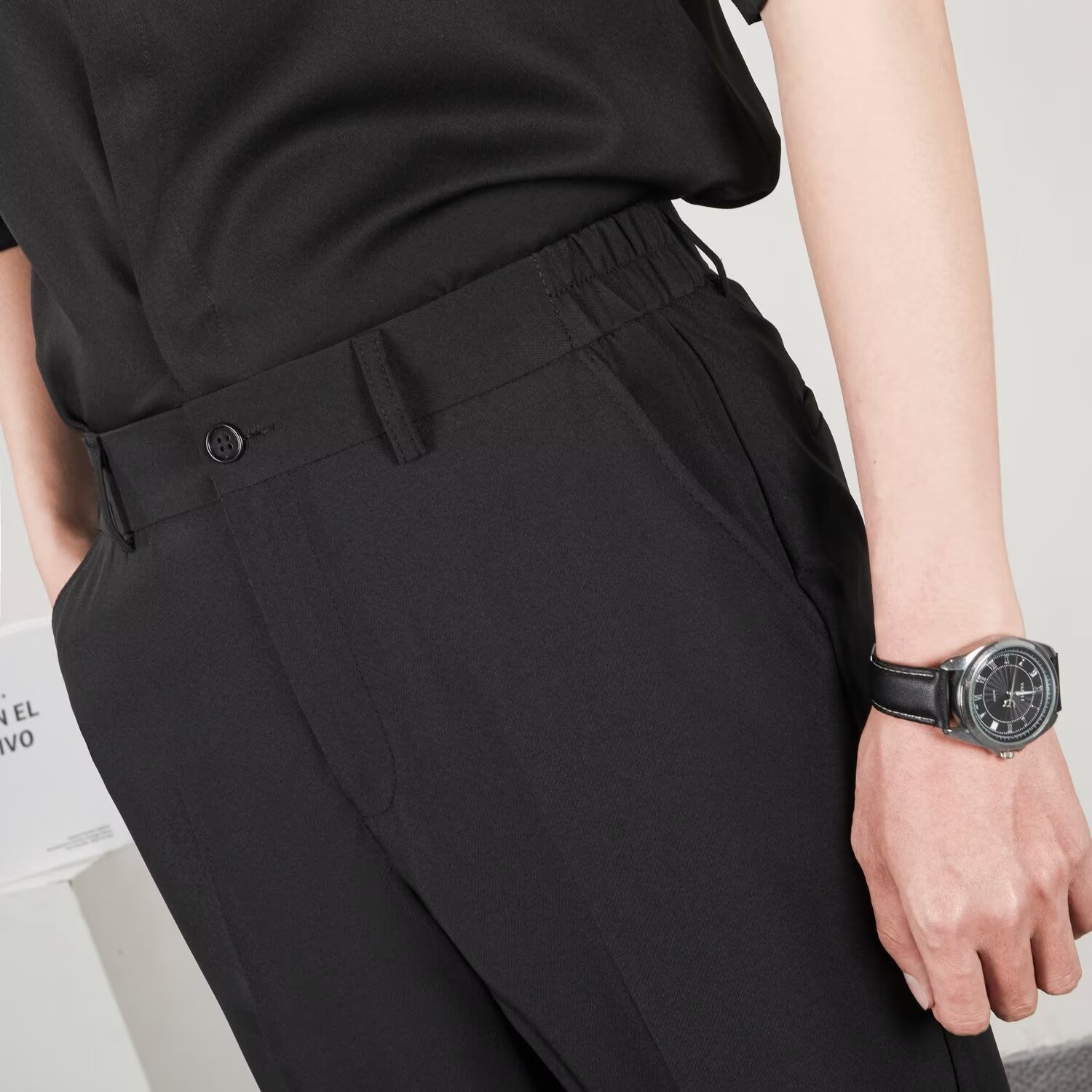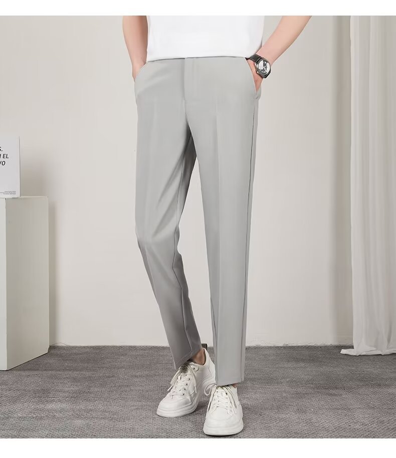 春秋新款小西裤男长裤子坠垂感修身小脚九分休闲裤男士商务西装裤