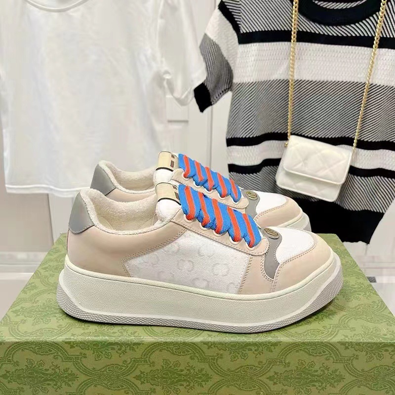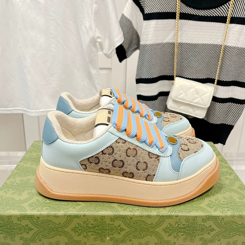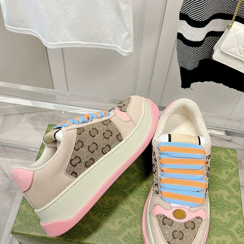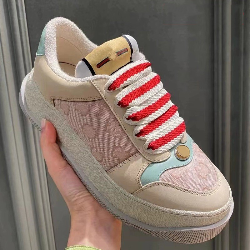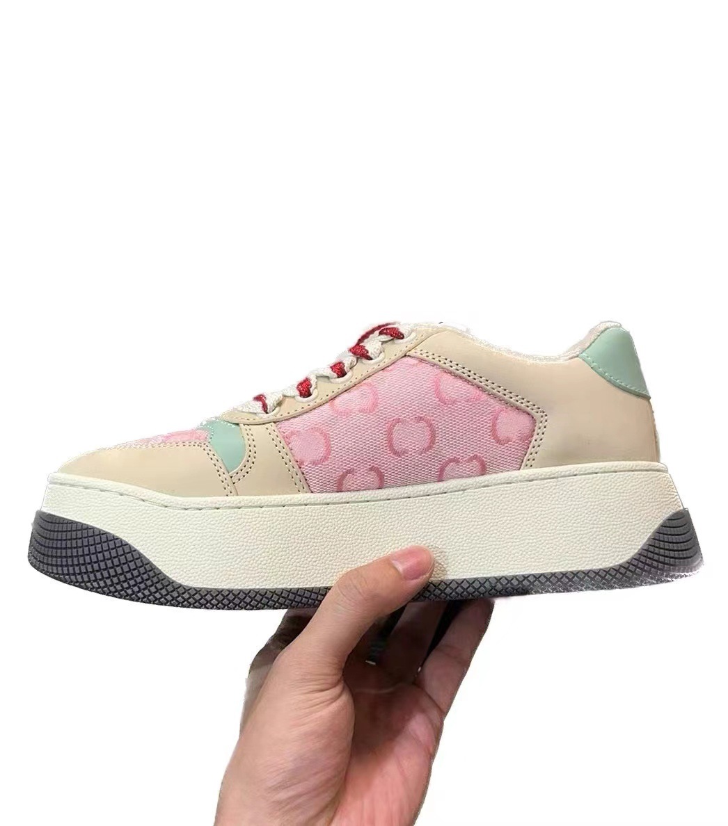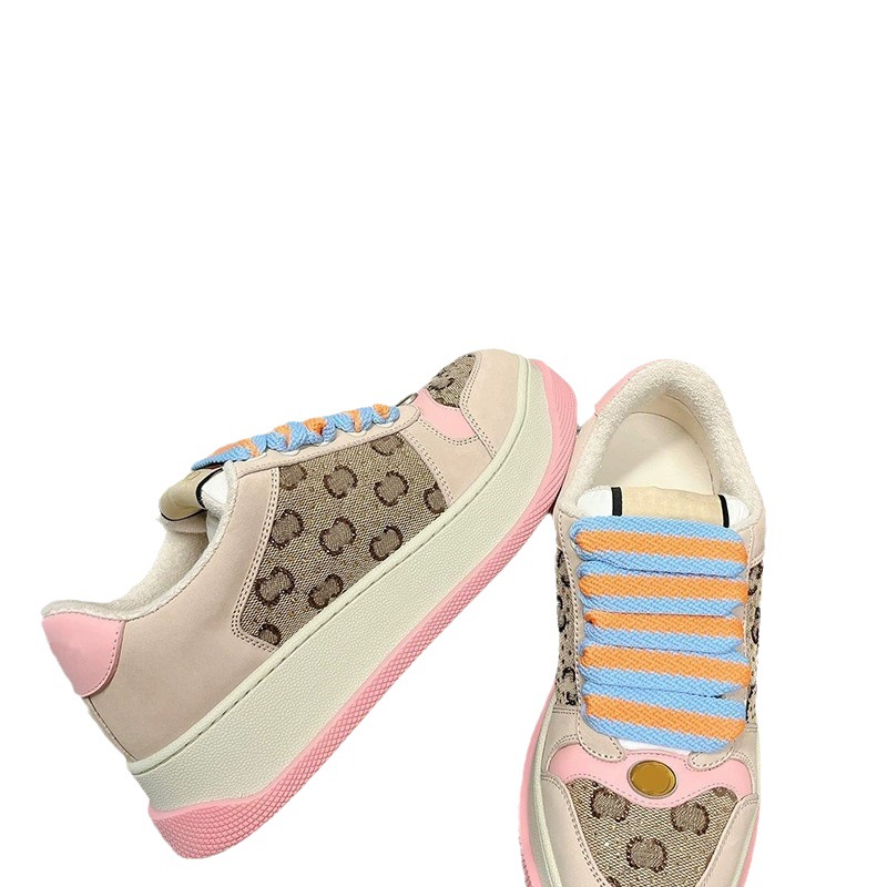 顶板!真皮面包鞋女2023新款小脏鞋厚底小白鞋粉色脏脏鞋百搭