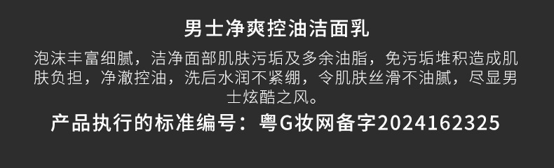 男士控油洗面奶150g洁面乳补水保湿清洁毛孔不紧绷男士护肤