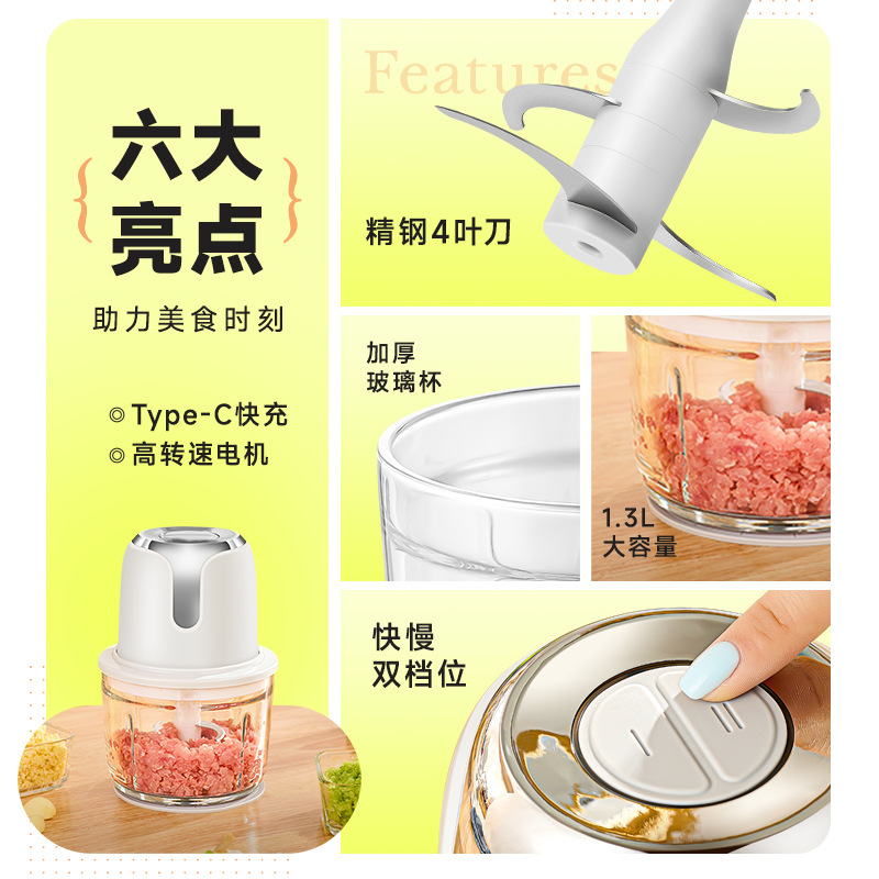 无线电动绞肉机家用玻璃绞肉机大容量批发碎肉机厨房电动料理机