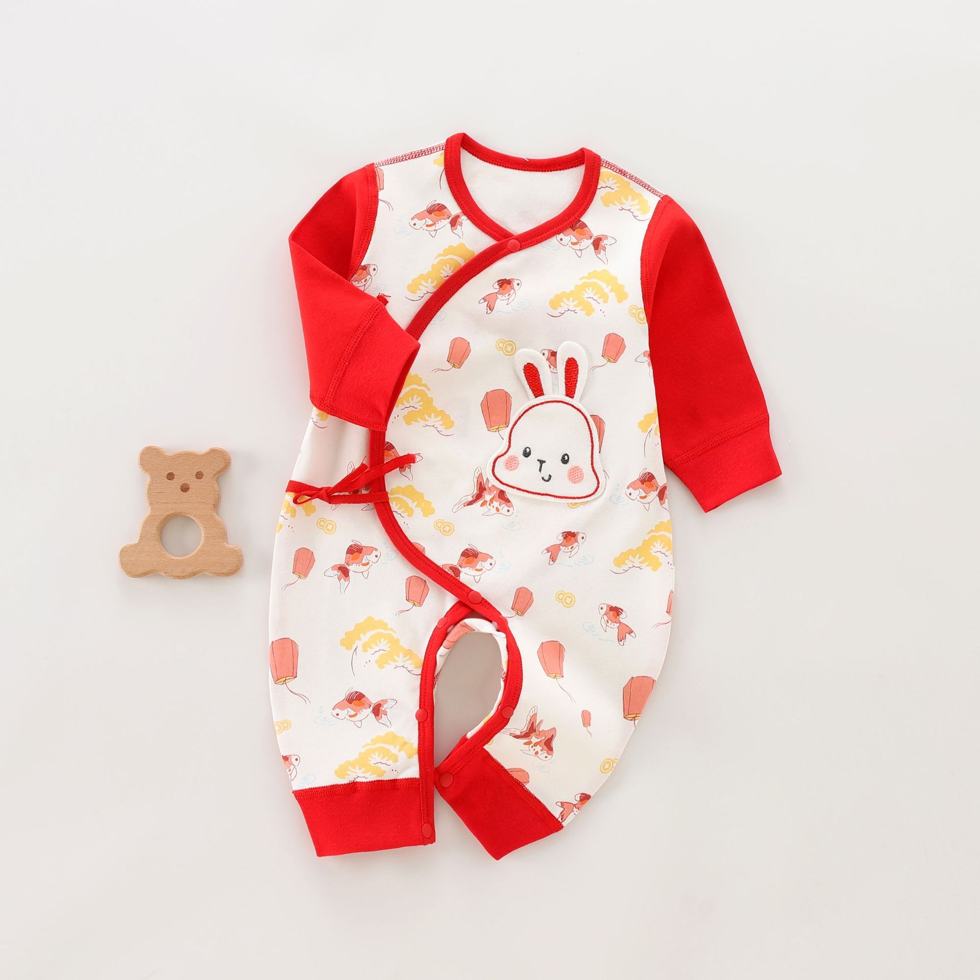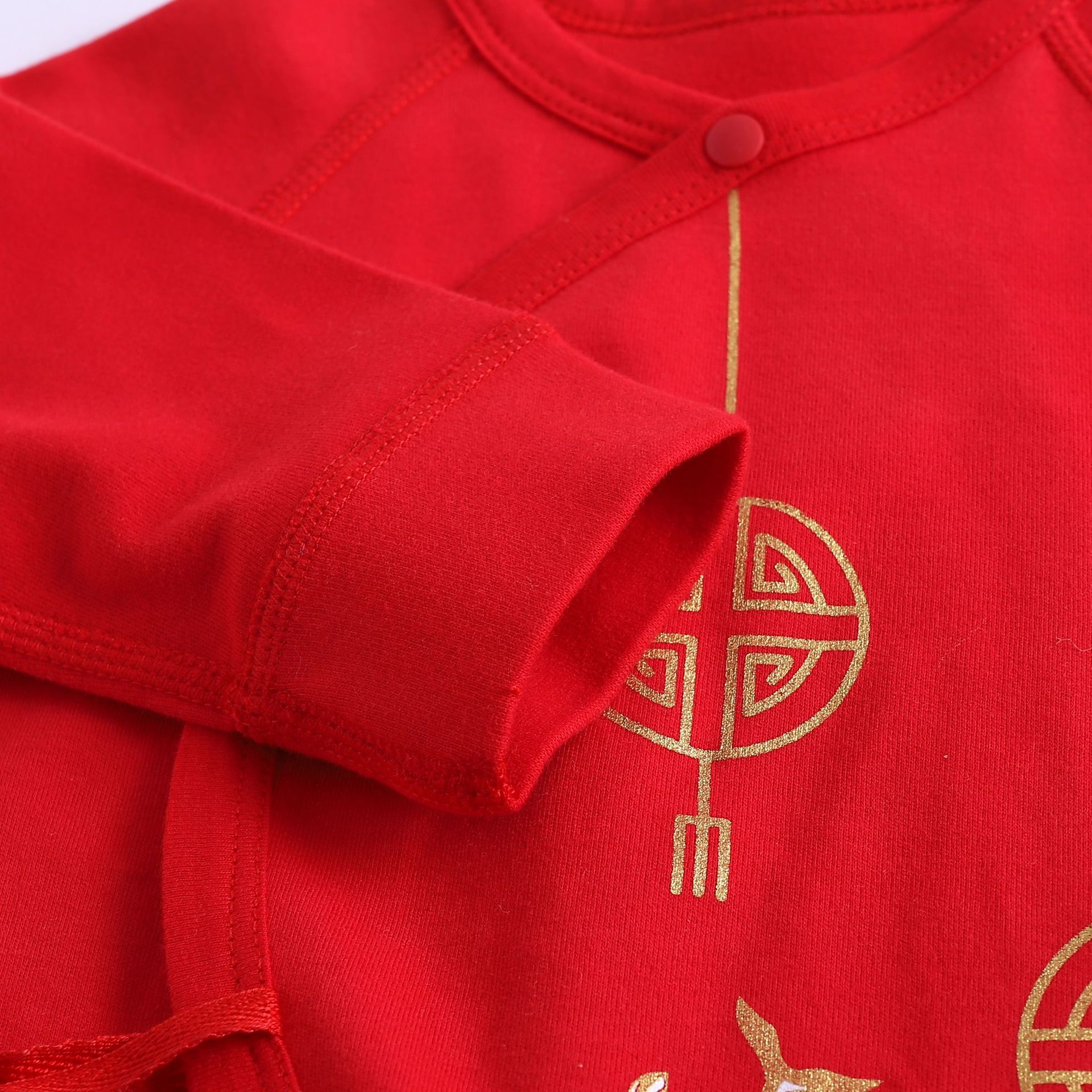 婴儿满月服男女宝宝过年大红色连体衣中国风绑带和尚服新生儿衣服