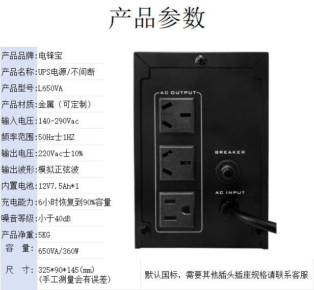 ups不间断电源1000VA600W110v220v加工电脑监控断电保护厂家直销