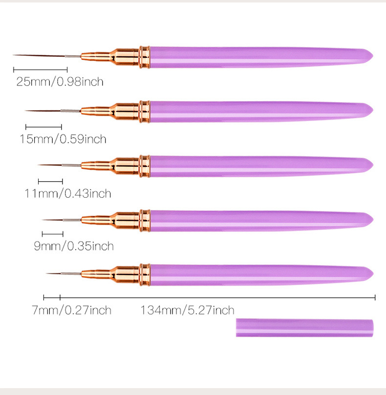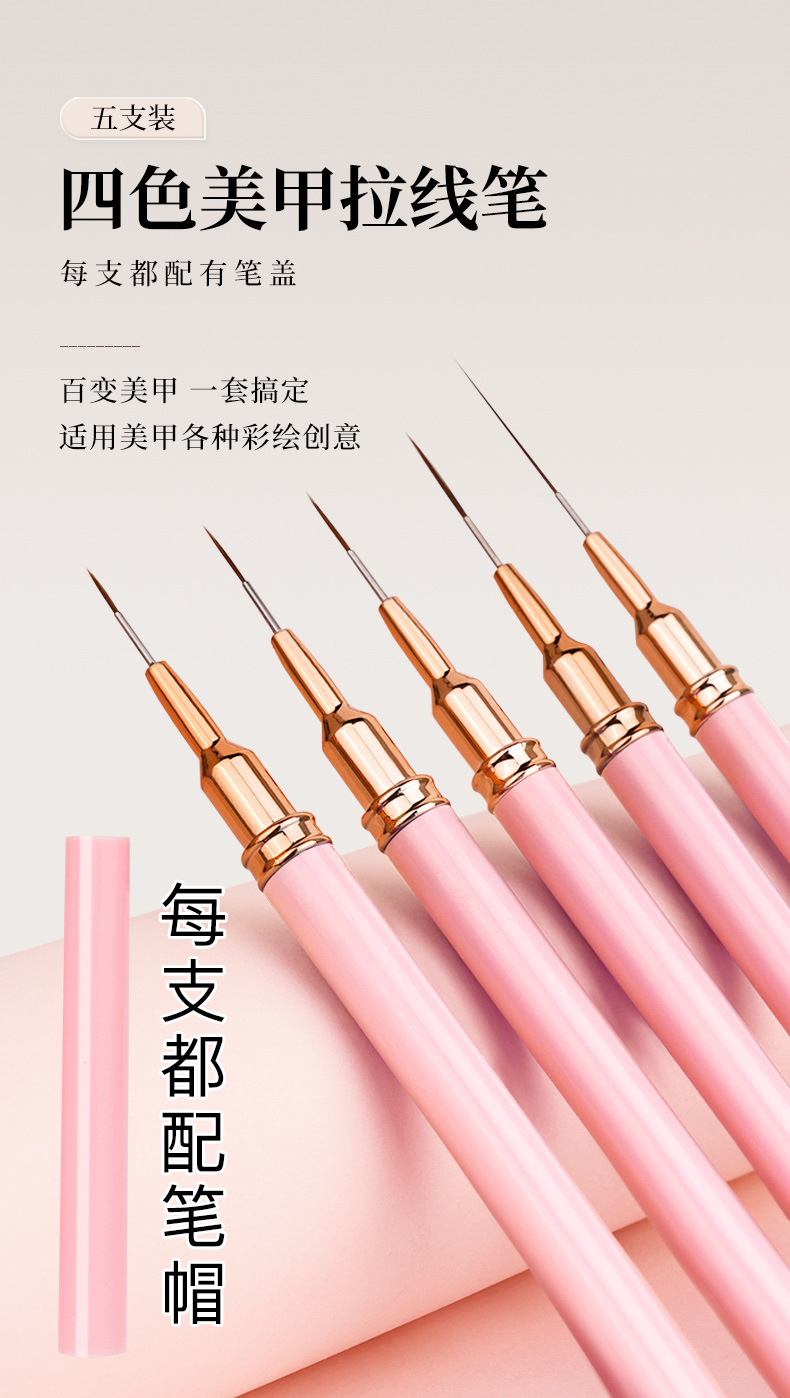 B351塑料杆拉线笔5支装拉线超细美甲笔套装画花彩绘勾线调色美甲