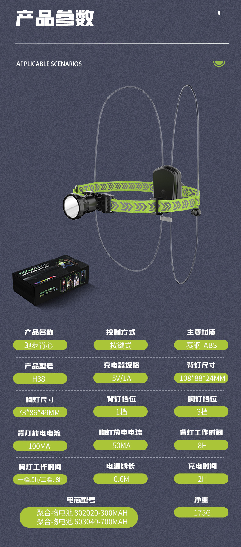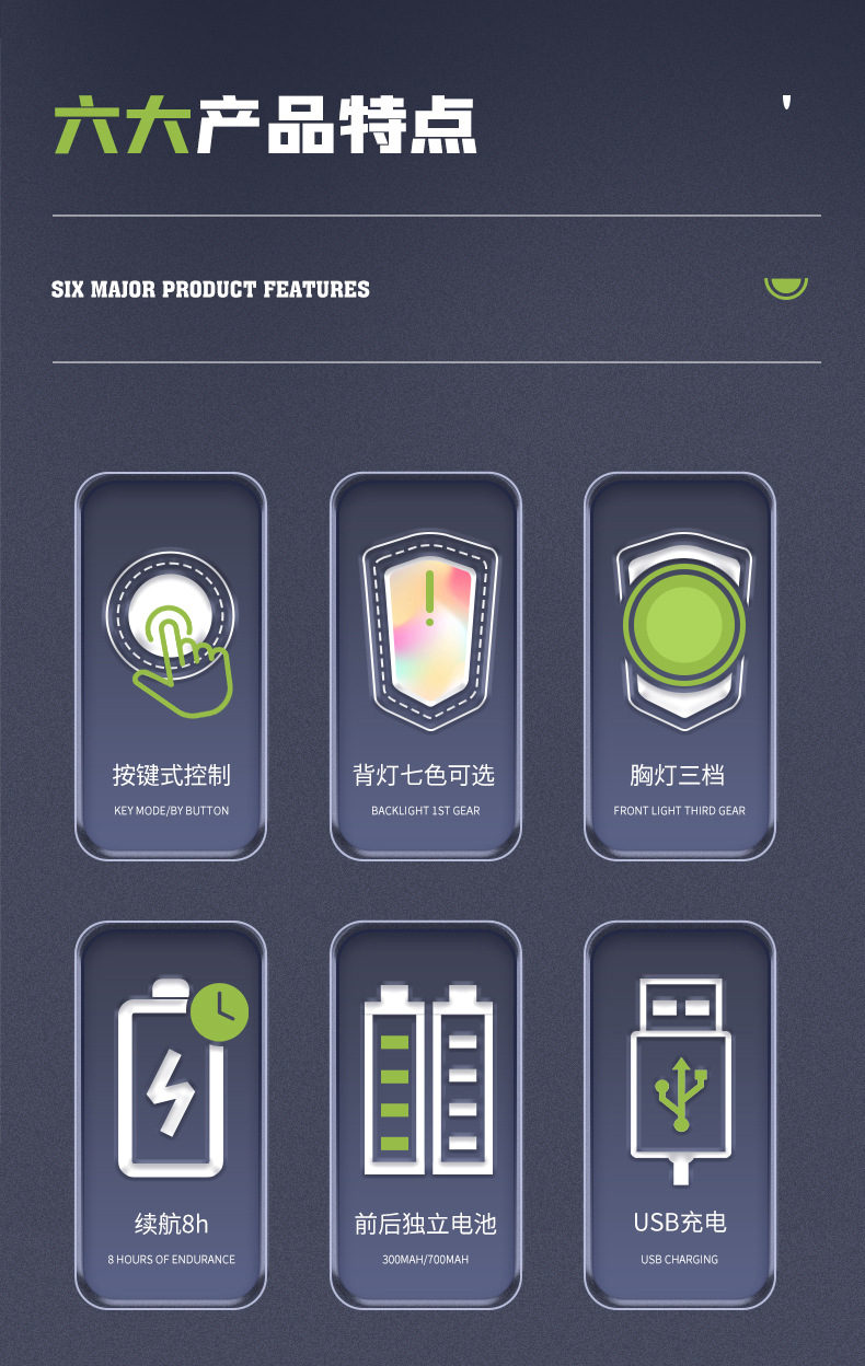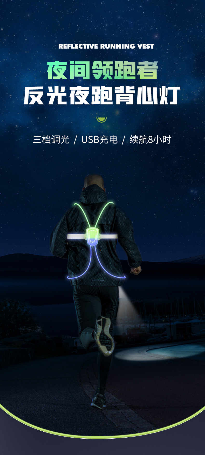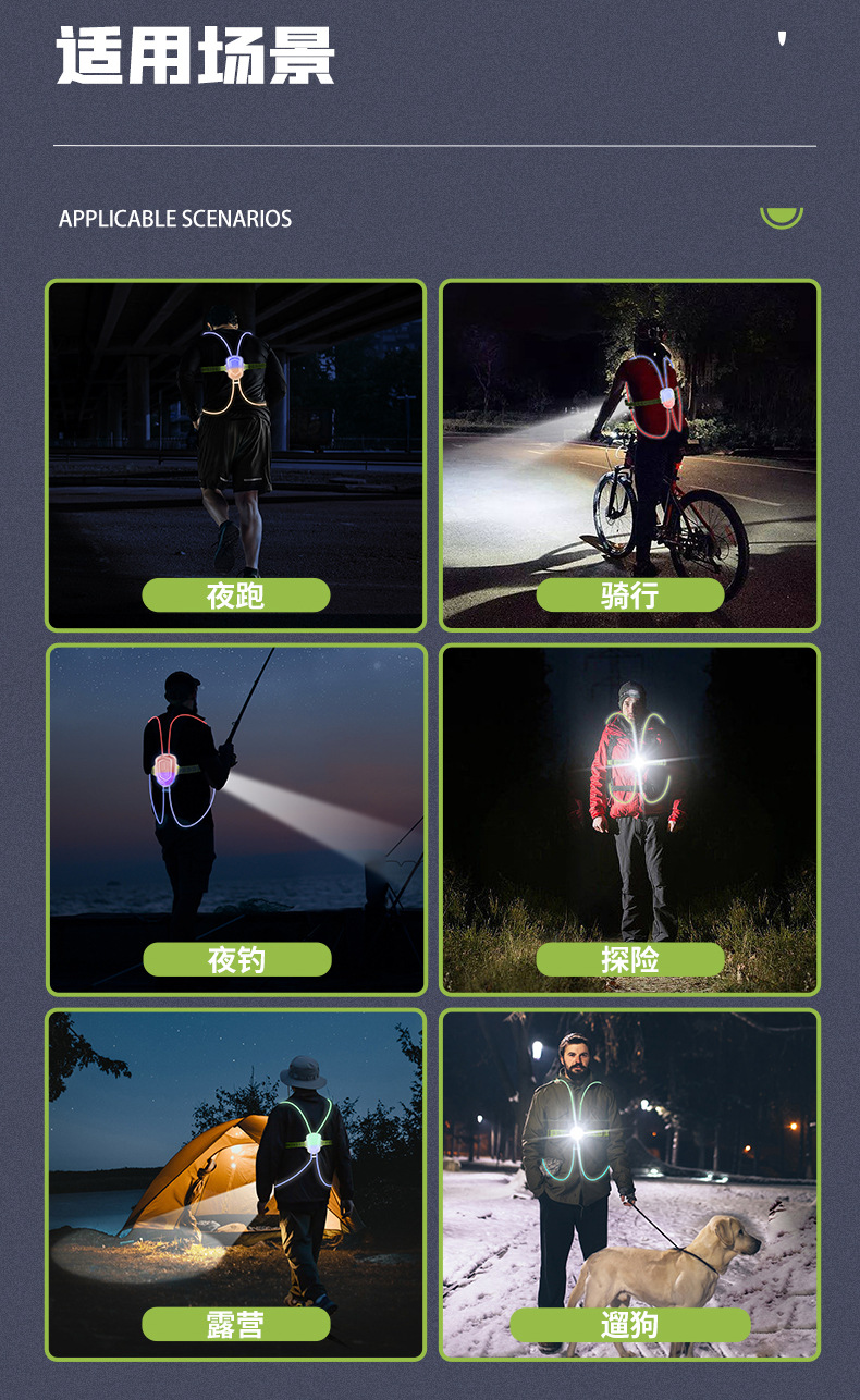 跨境跑步灯户外登山露营遛狗散步骑行警示照明灯夜跑夜钓鱼灯充电