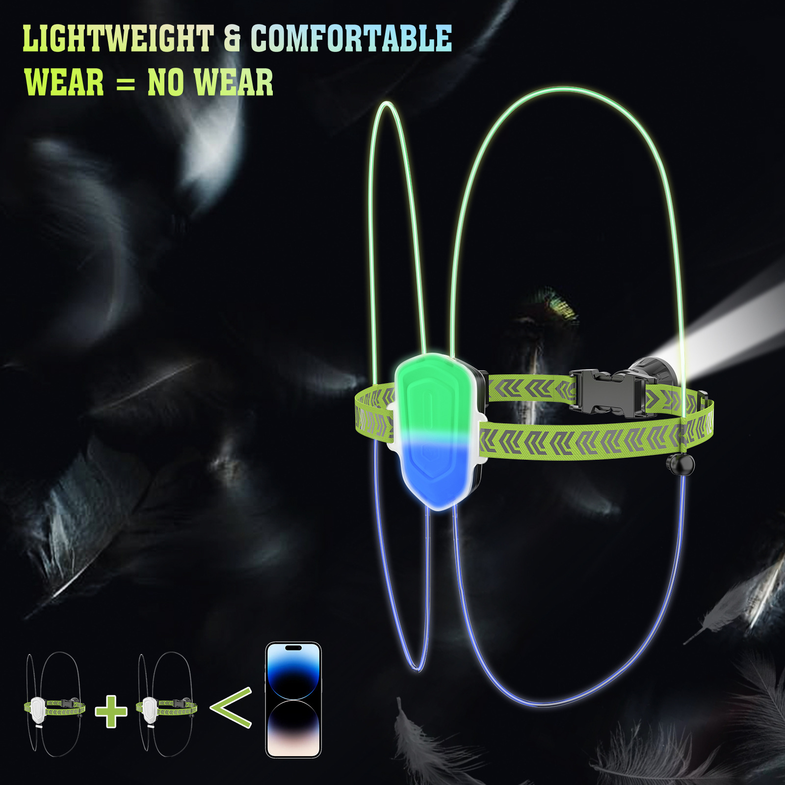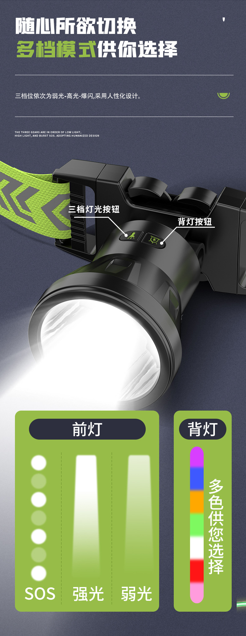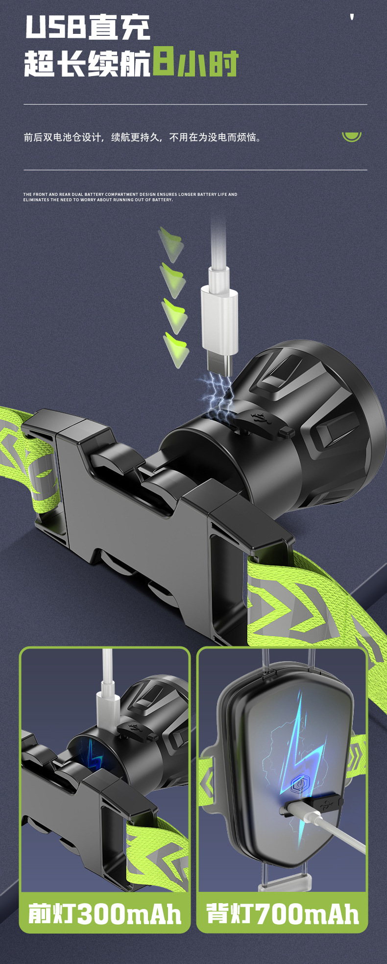 跨境跑步灯户外登山露营遛狗散步骑行警示照明灯夜跑夜钓鱼灯充电