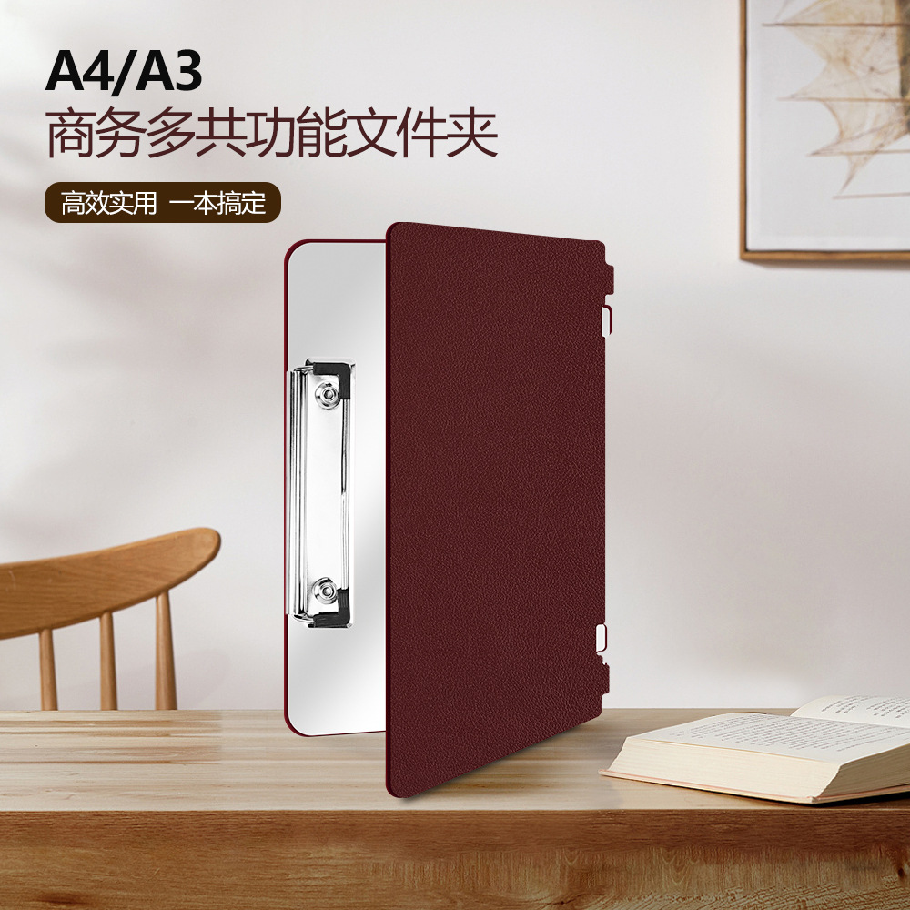 跨境便携折叠写字板仿真皮铝合金A4写字板学生办公收纳板
