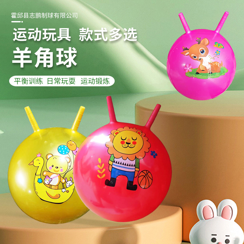 55cm热销早教幼儿园儿童感统教具羊角球跳跳球充气瑜伽健身球玩具
