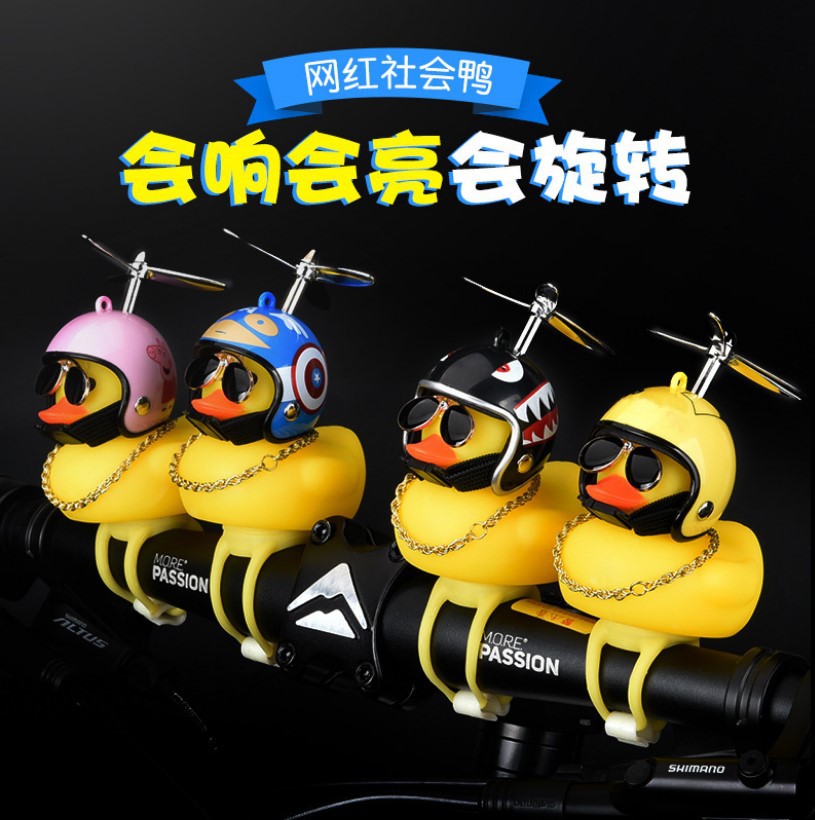 分为:破风鸭(自行车和电动车款--竹蜻蜓+头盔+会响鸭子+灯+底座)