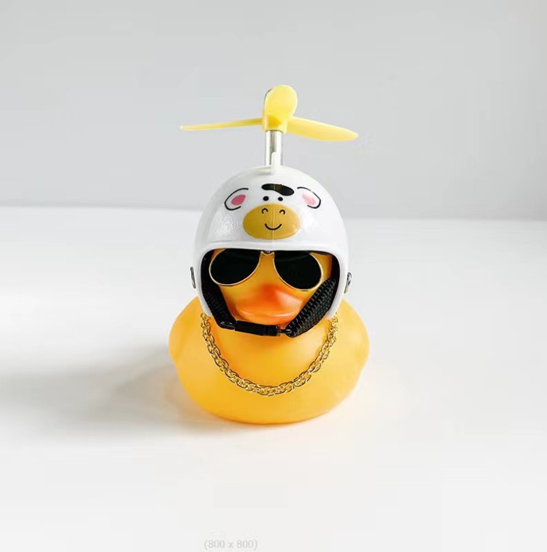 车载鸭:(汽车款的--竹蜻蜓+眼镜+链子+会响鸭子+双面胶)