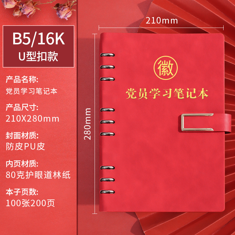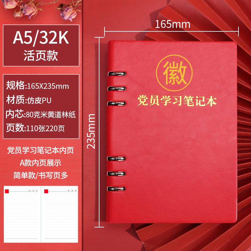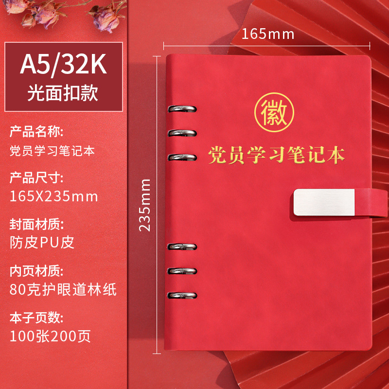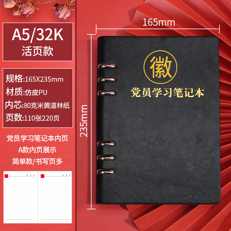 党员学习笔记本厚本子2024年新款活页a5组织生活记录本单位定制