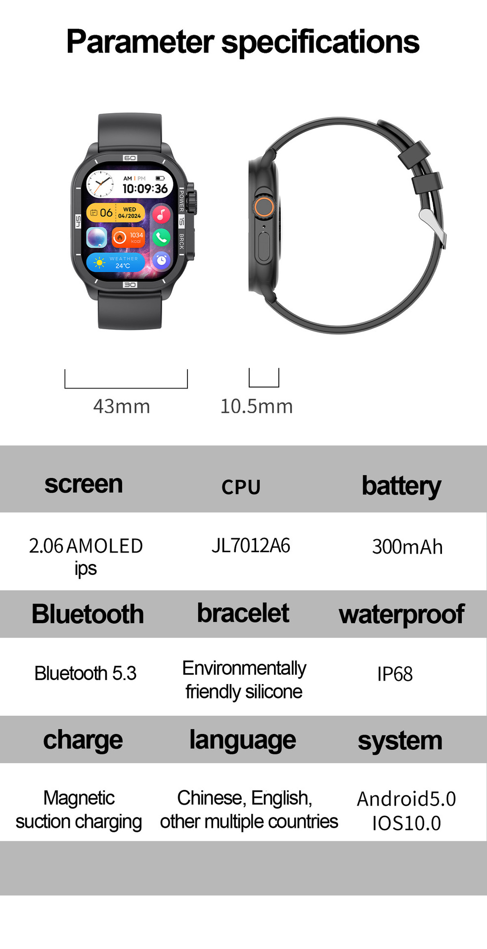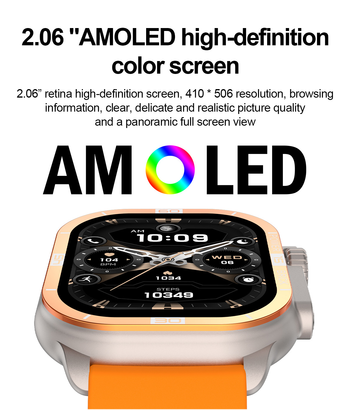 跨境专供HK96蓝牙通话AMOLED运动健康智能手表