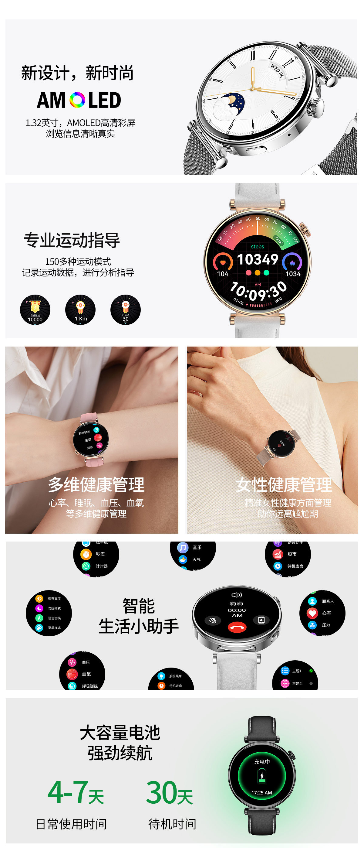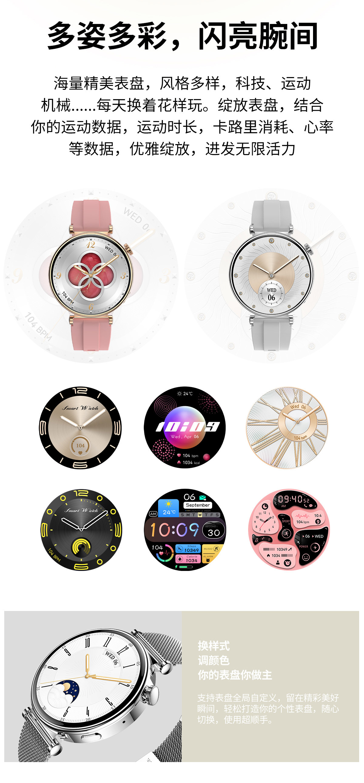 新品N4 Mini女士款时尚手表女性健康管理智能蓝牙通话手表