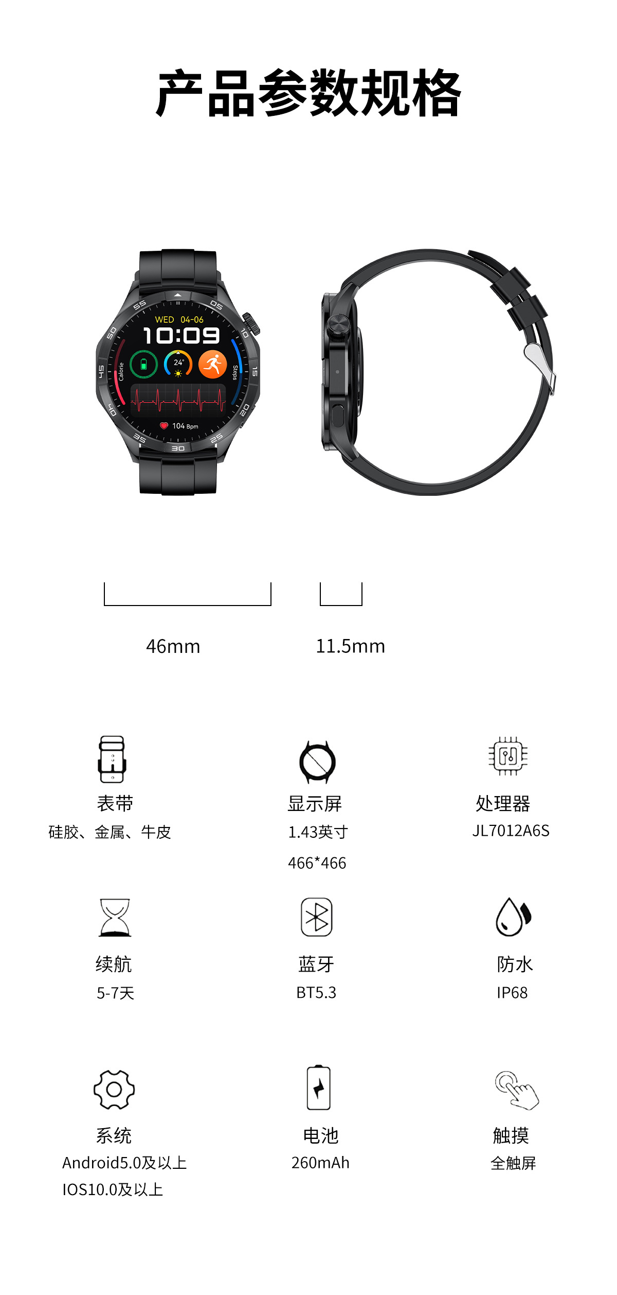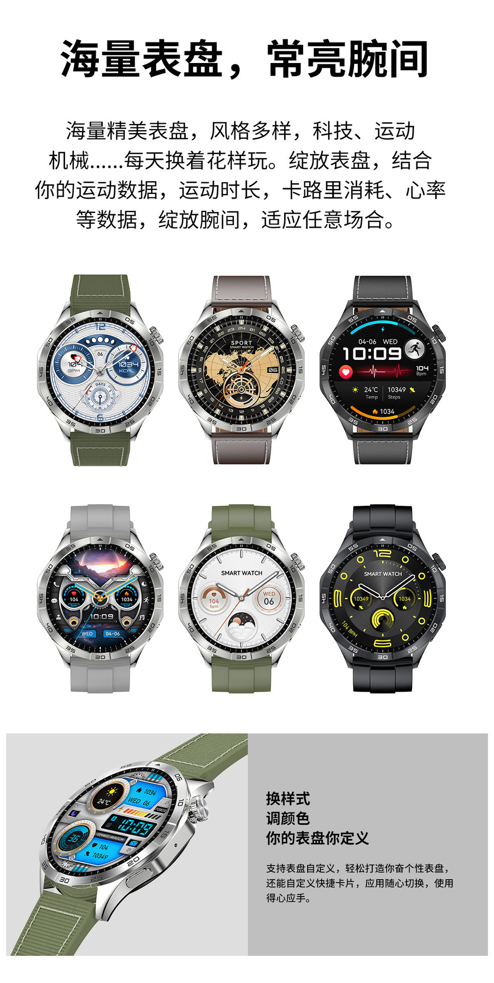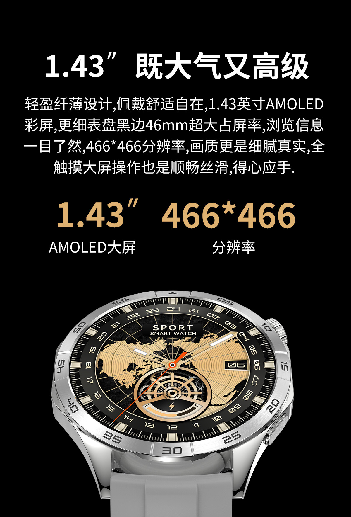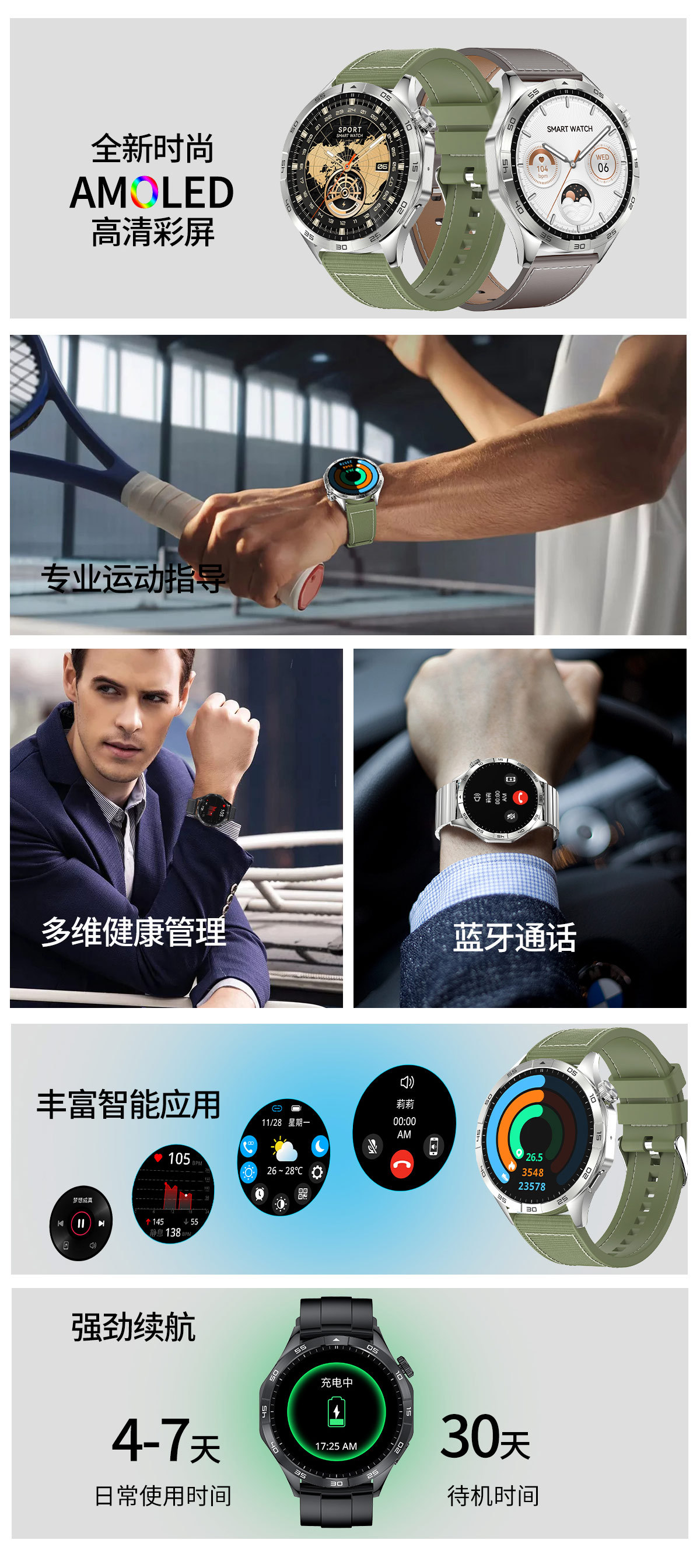 WatchGT4新品N4高清1.43寸AMOLED蓝牙通话运动健康防水智能手表