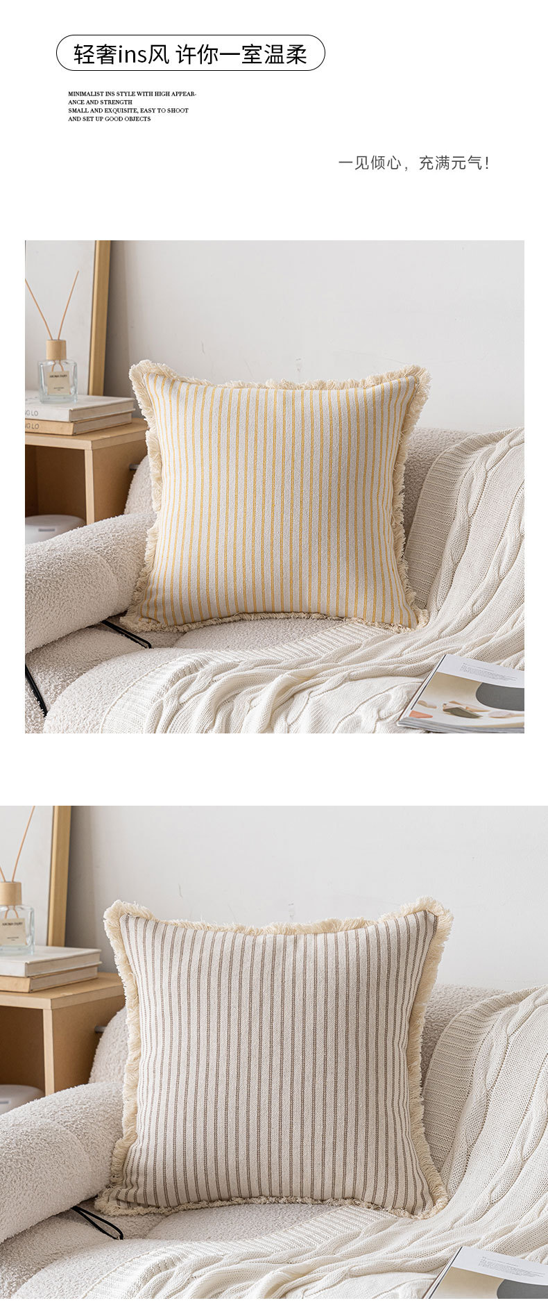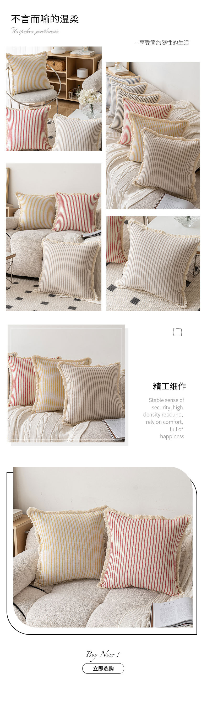 新款棉麻条纹抱枕Ins风简约家居沙发靠垫带流苏边床头靠枕抱枕套