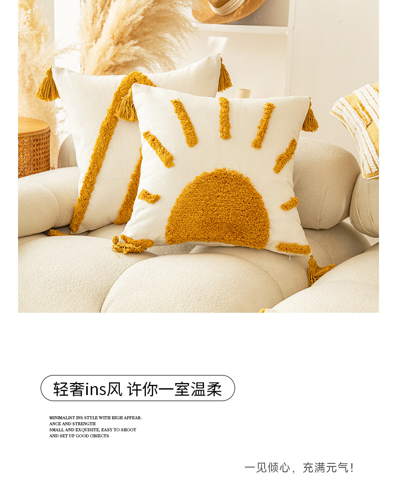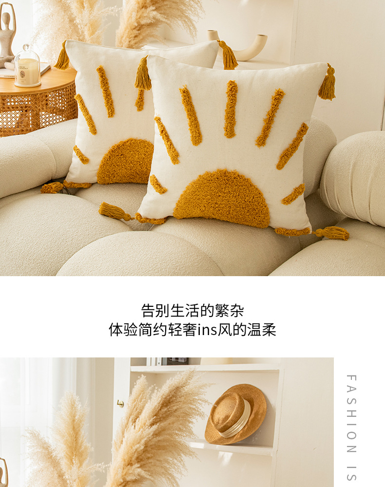 严选波西米亚金色太阳抱枕浪漫阳光流苏圈绒靠枕卧室沙发家用靠垫