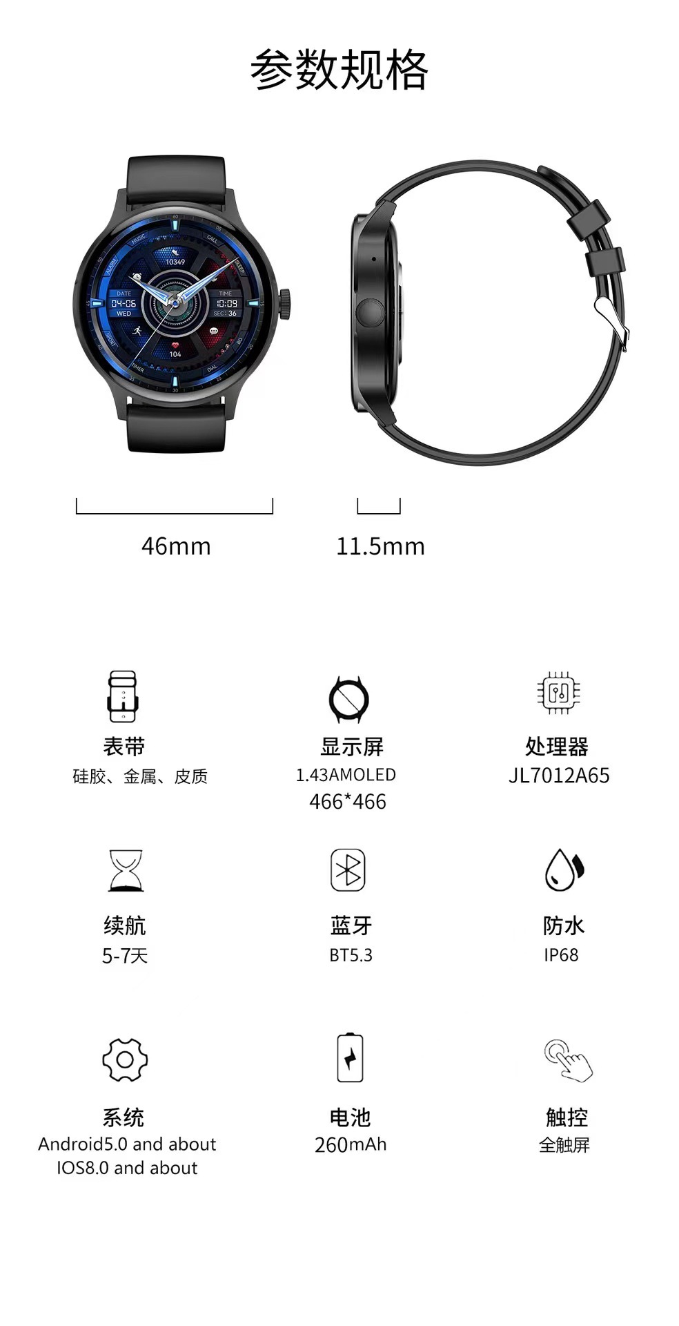 N10 MAX新品私模蓝牙通话智能手表AMOLED智能运动健康手表