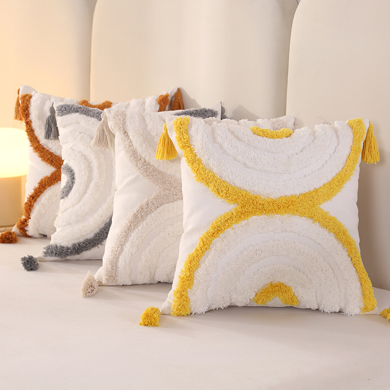 棉麻抱枕ins 波西米亚民宿风簇绒腰枕靠垫沙发腰靠流苏枕套靠背垫