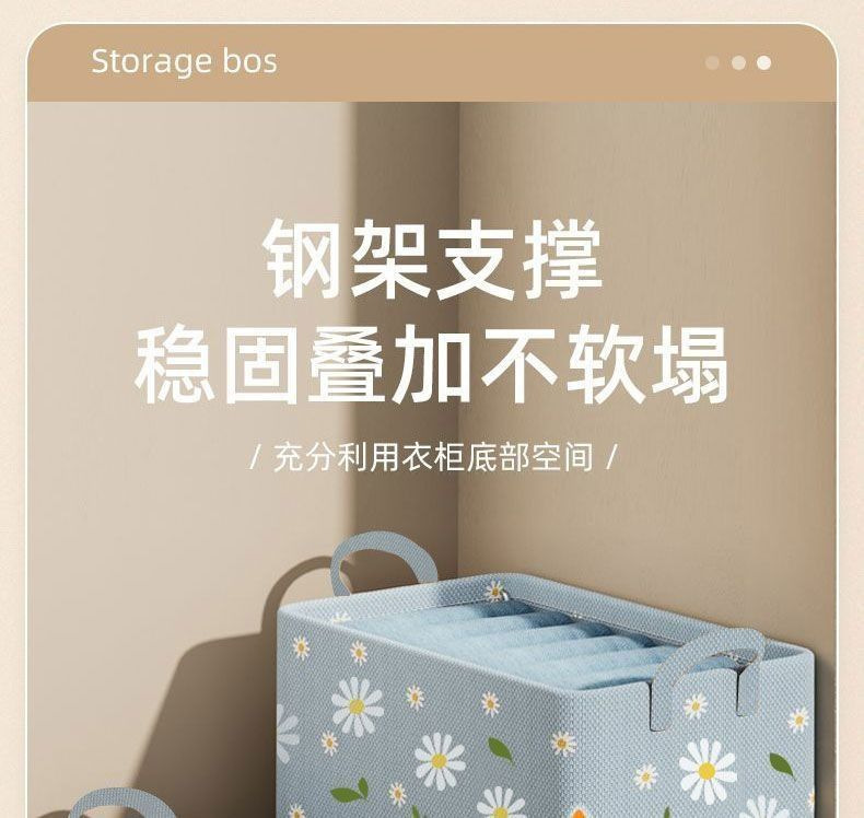 新款雏菊加粗钢架衣服收纳箱衣柜收纳折叠式收纳盒衣服裤子收纳筐