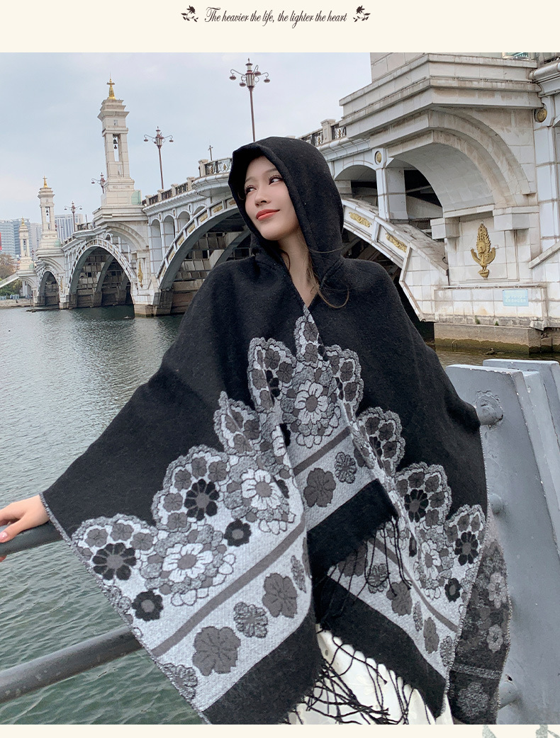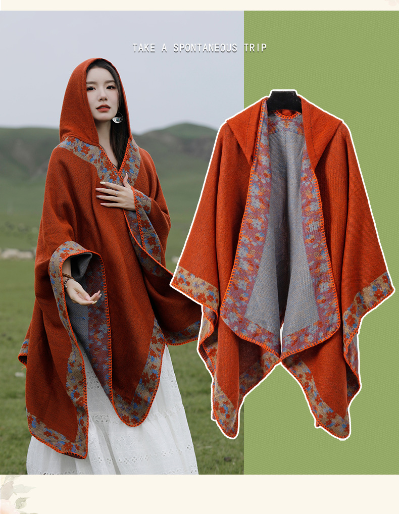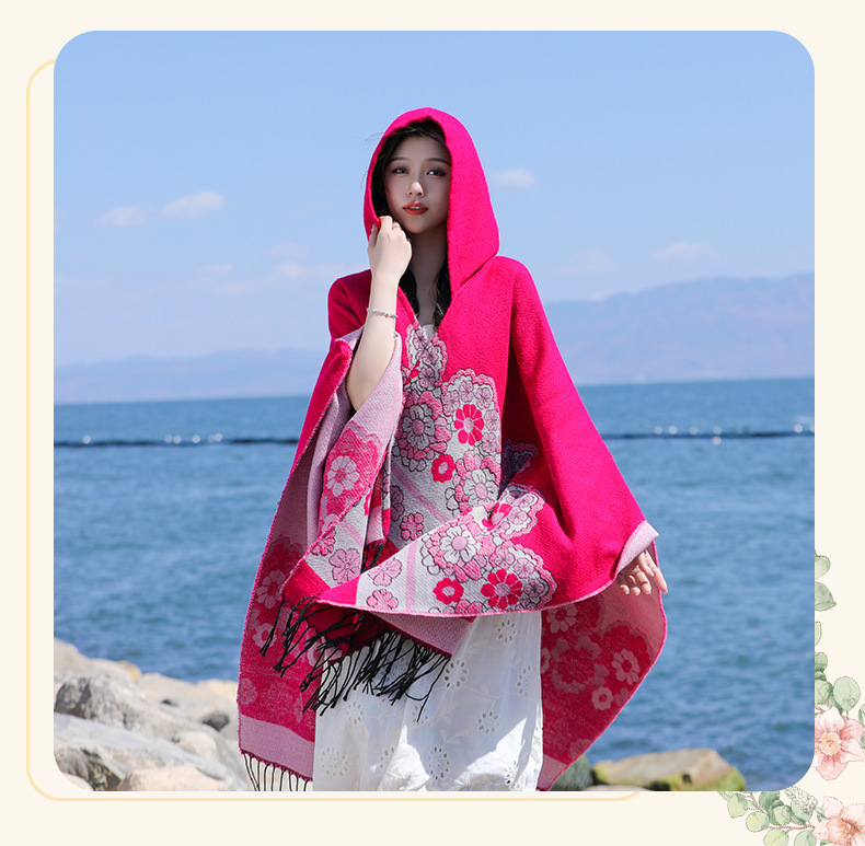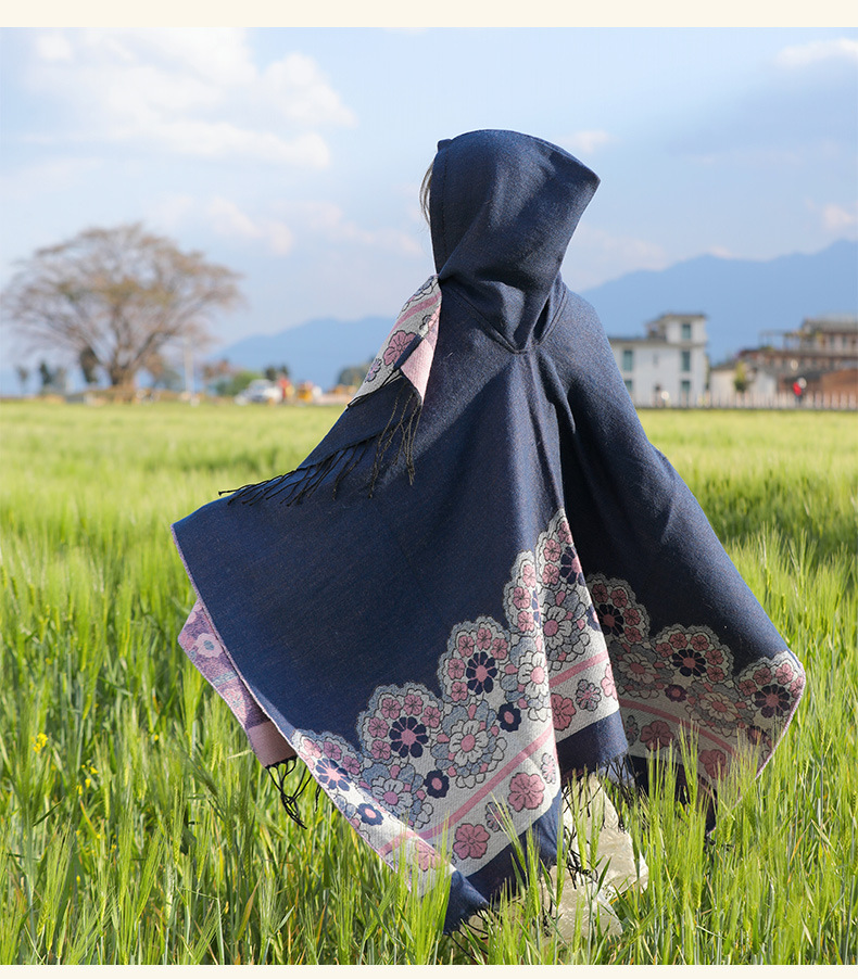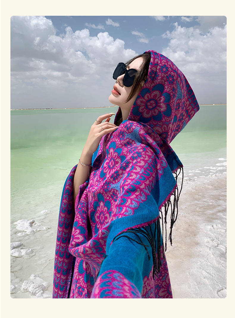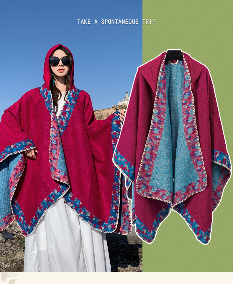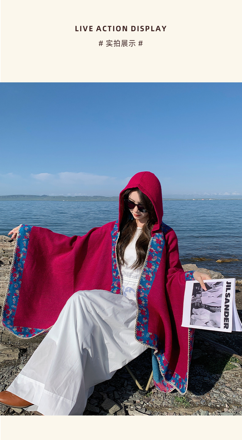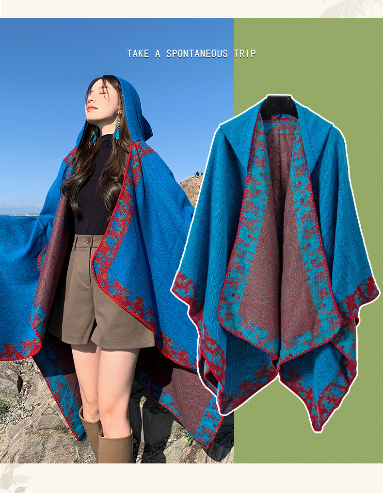新款披肩民族风云南旅游穿搭夏天围巾女开衫外搭连帽斗篷流苏披风