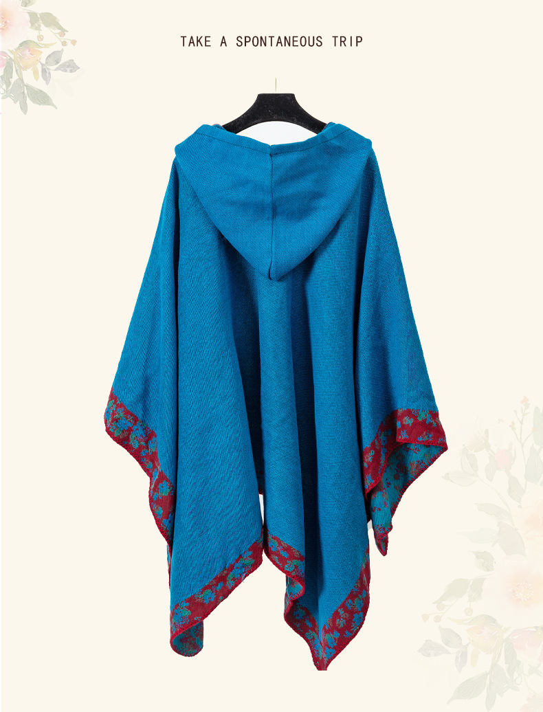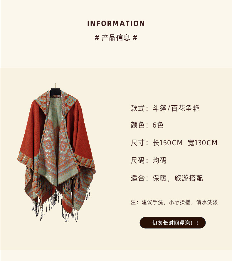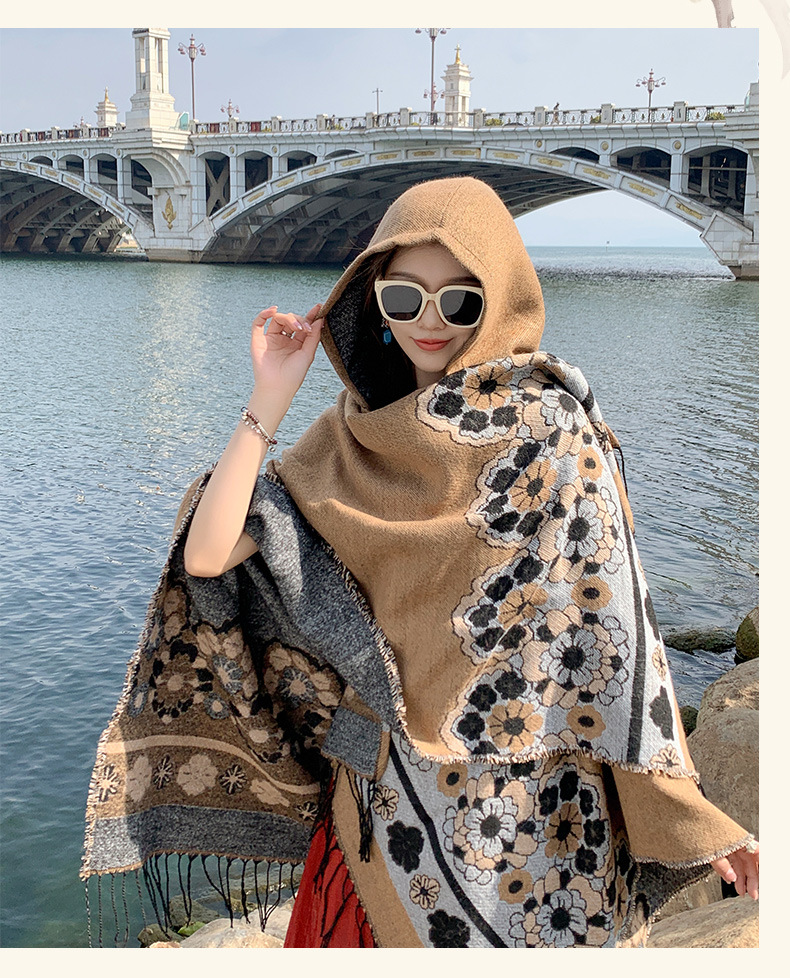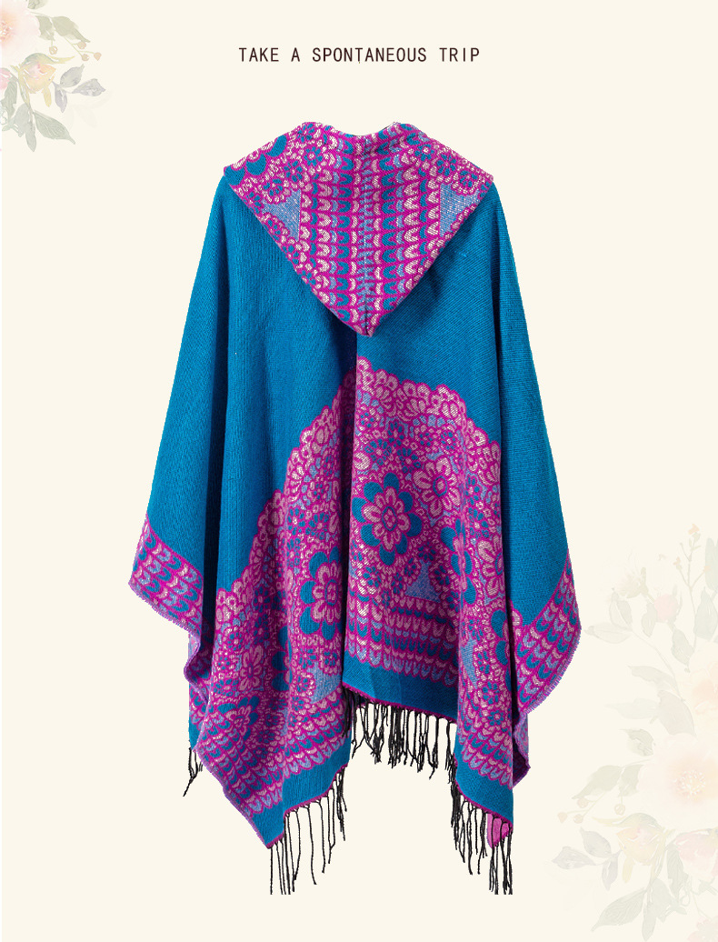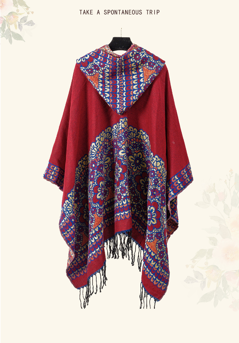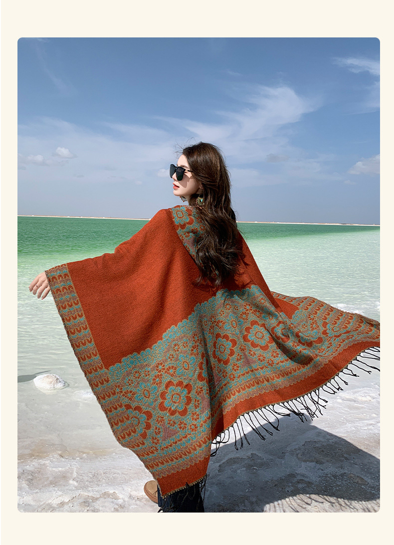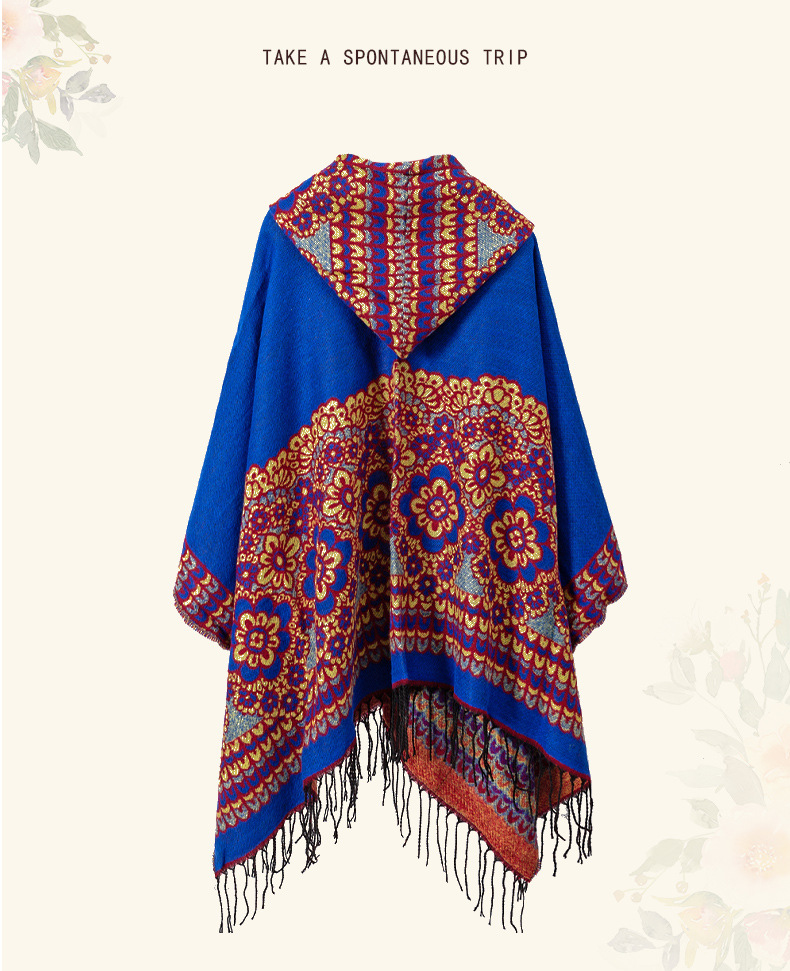 新款披肩民族风云南旅游穿搭夏天围巾女开衫外搭连帽斗篷流苏披风