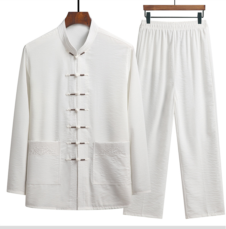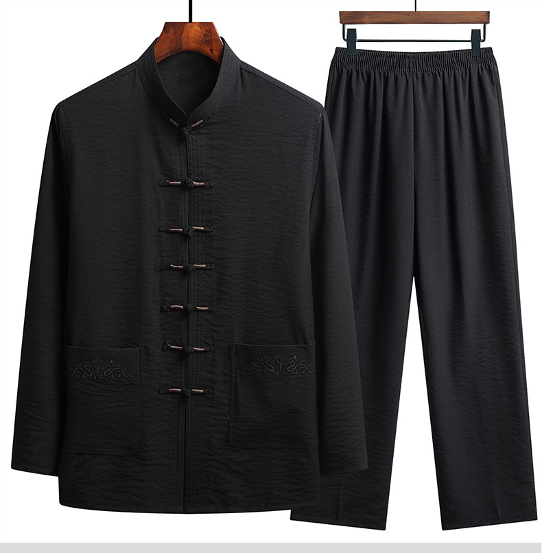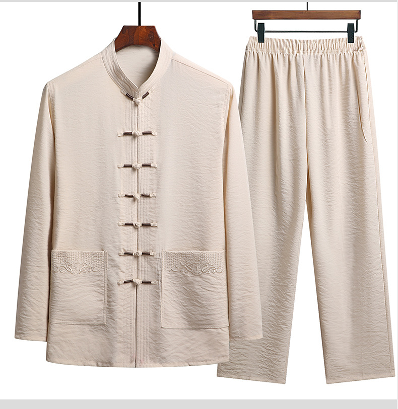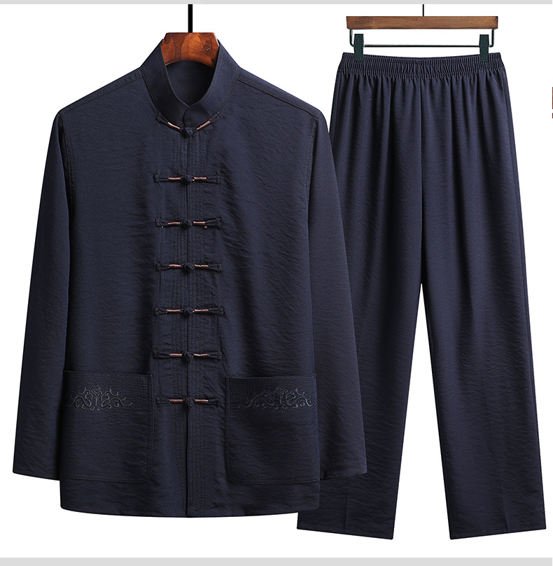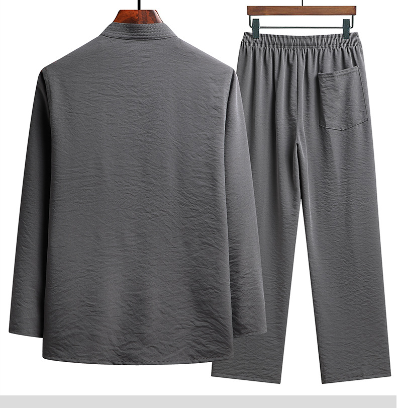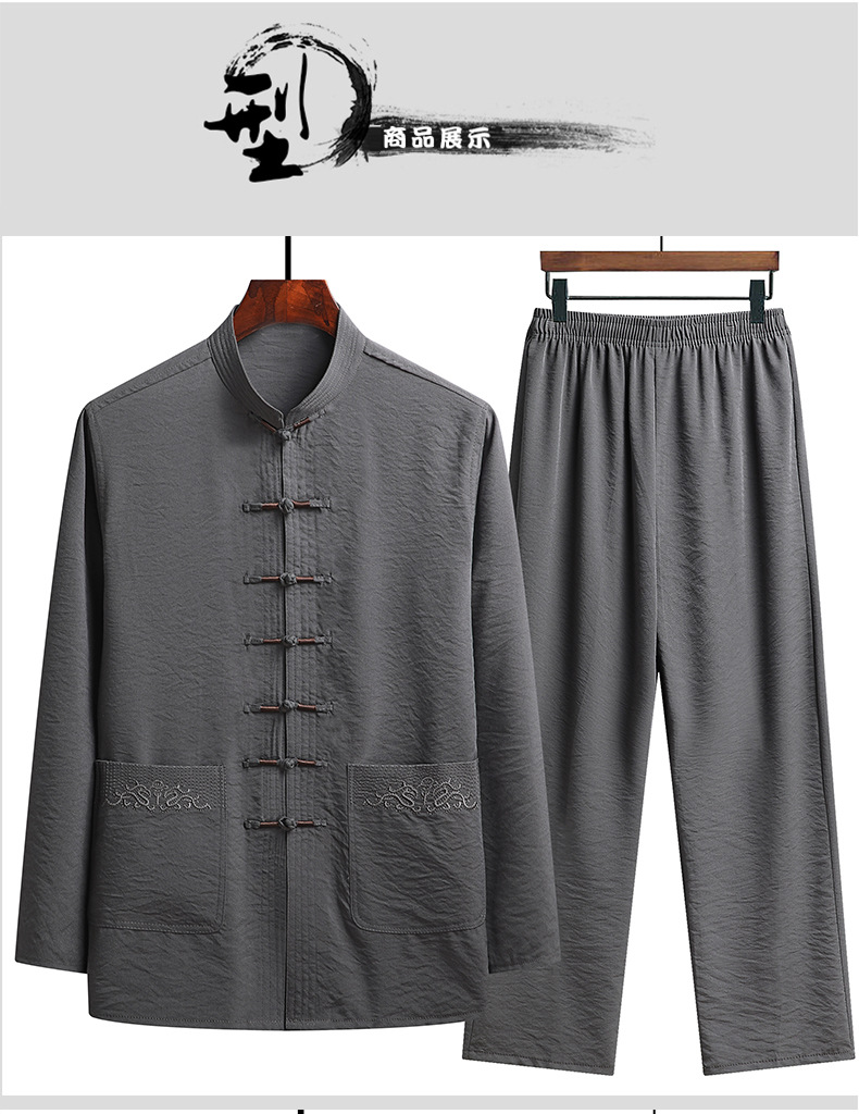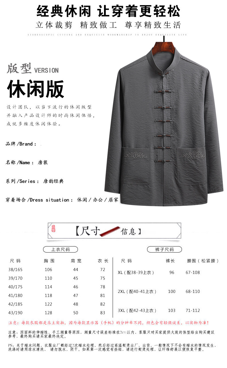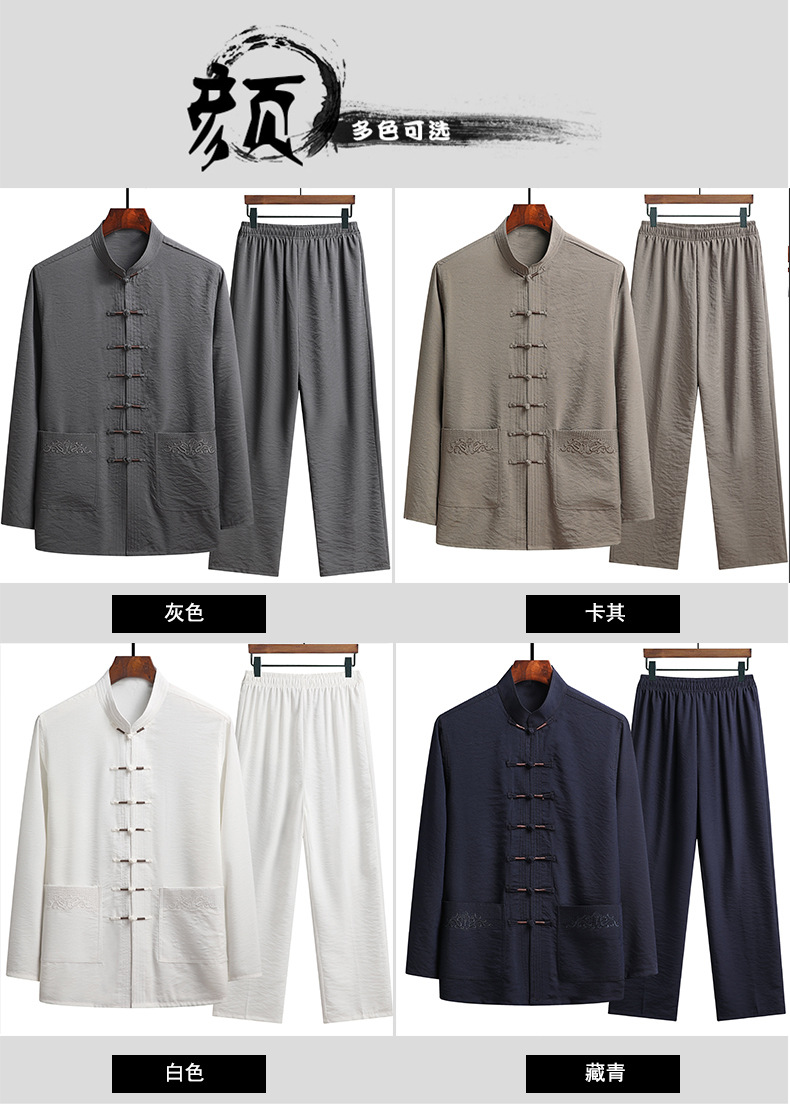 中老年人唐装男长袖棉麻套装爸爸春秋装中式太极服汉服爷爷装衣服