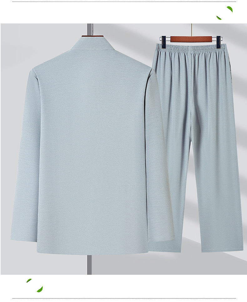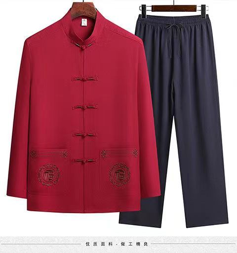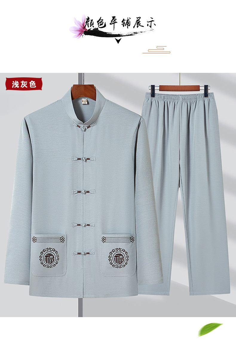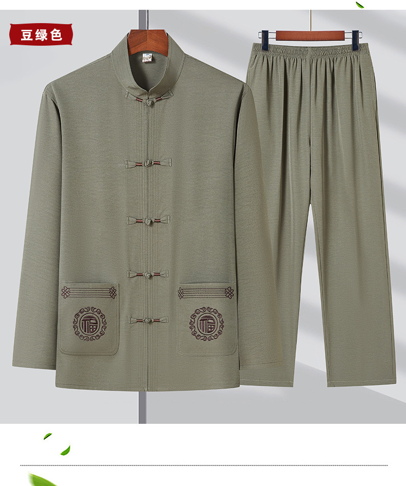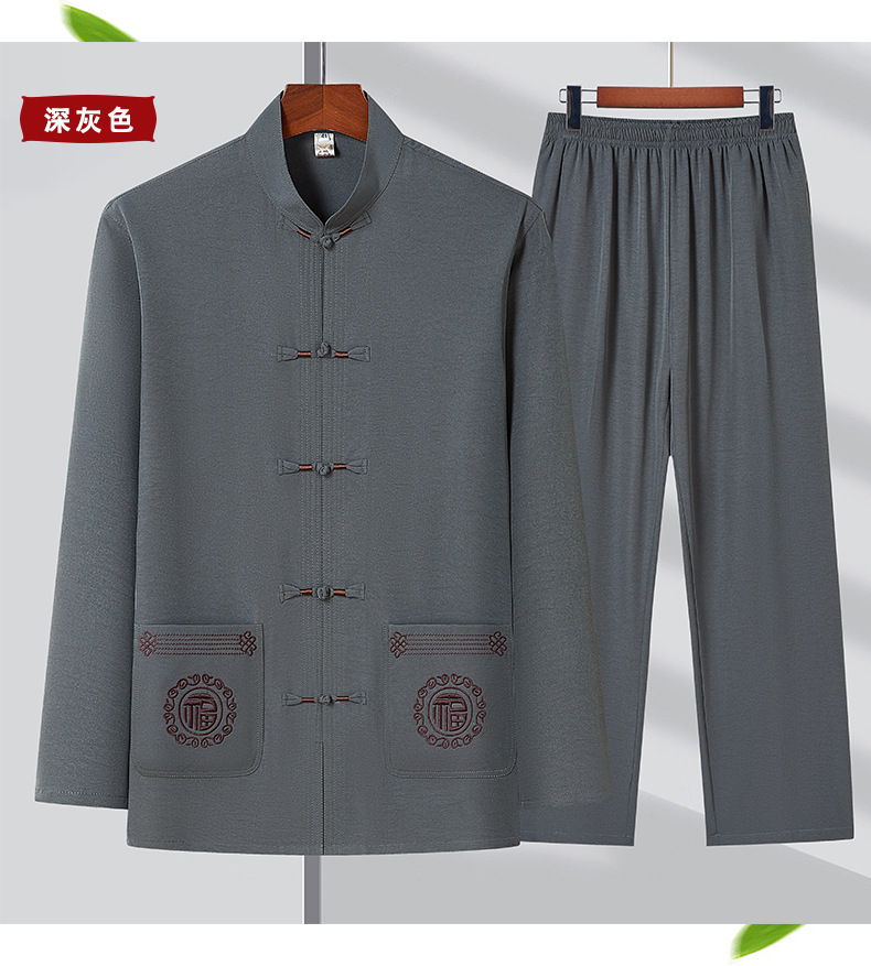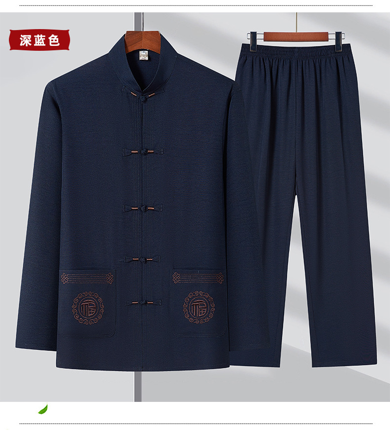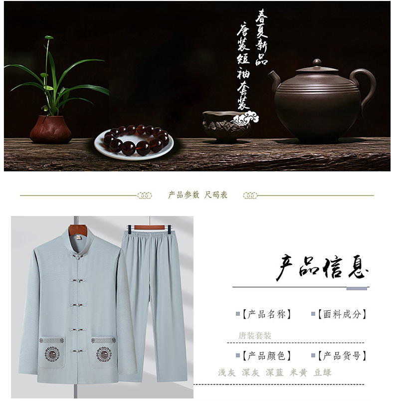 唐装男中老年长袖套装中国风中式爷爷春夏款棉麻两件套老人衣服薄