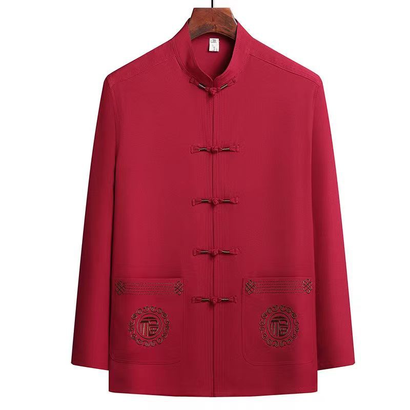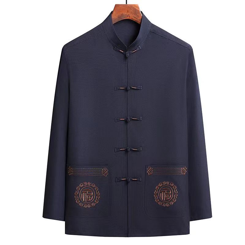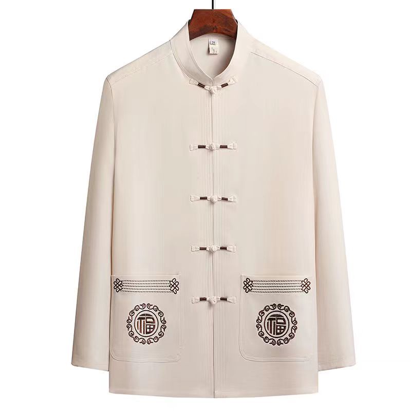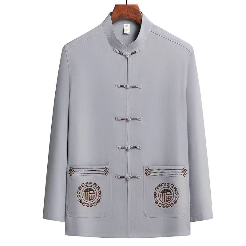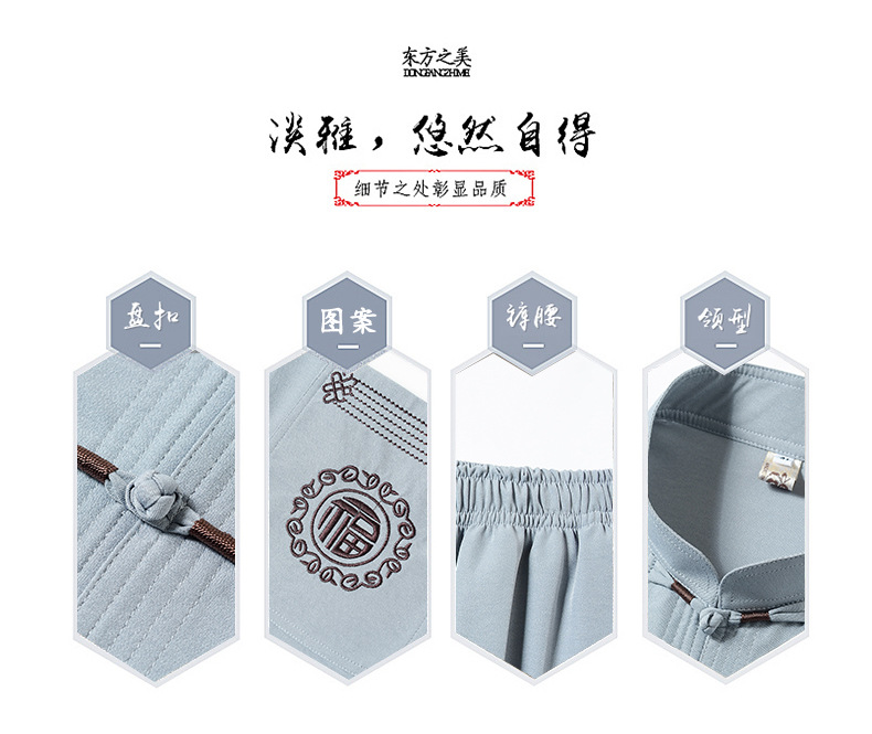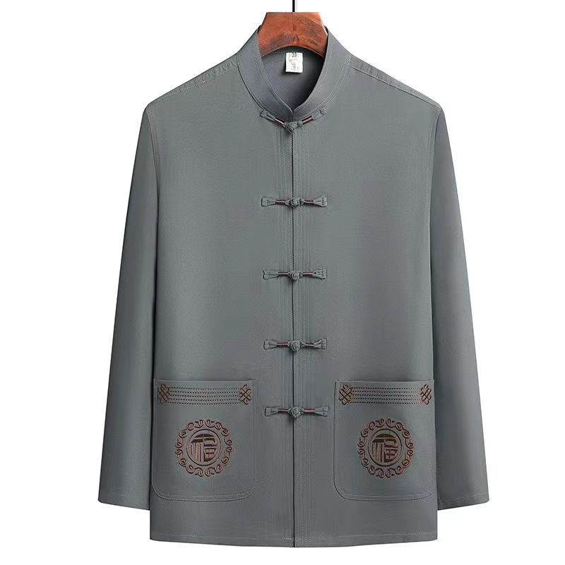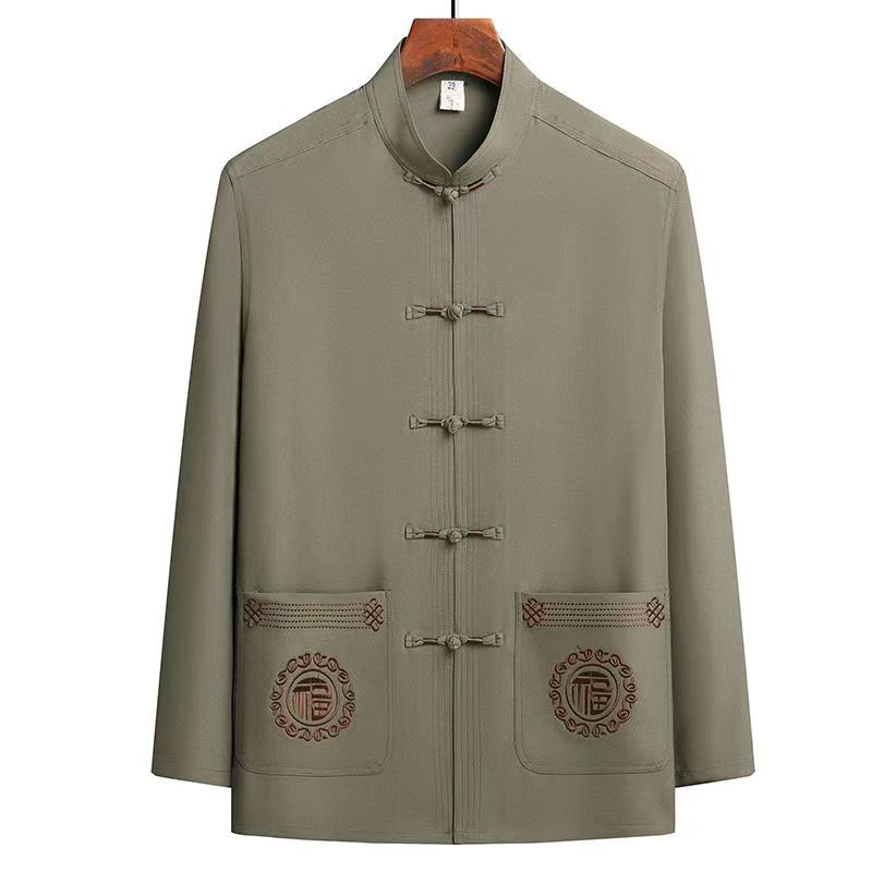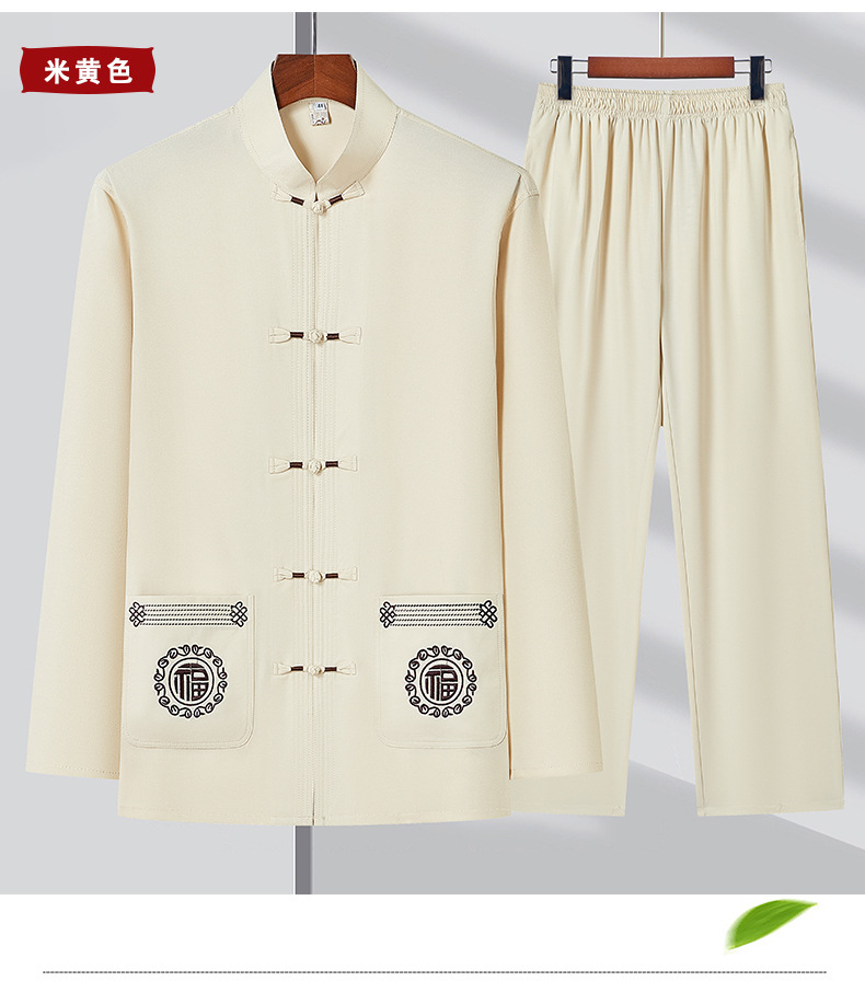 唐装男中老年长袖套装中国风中式爷爷春夏款棉麻两件套老人衣服薄