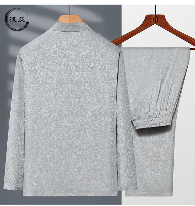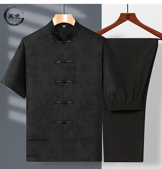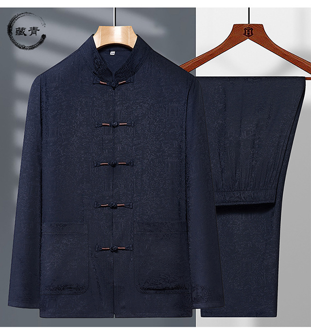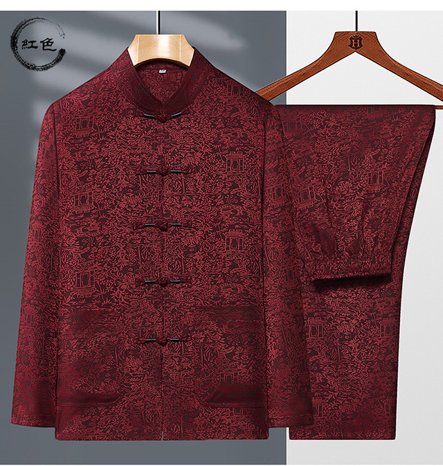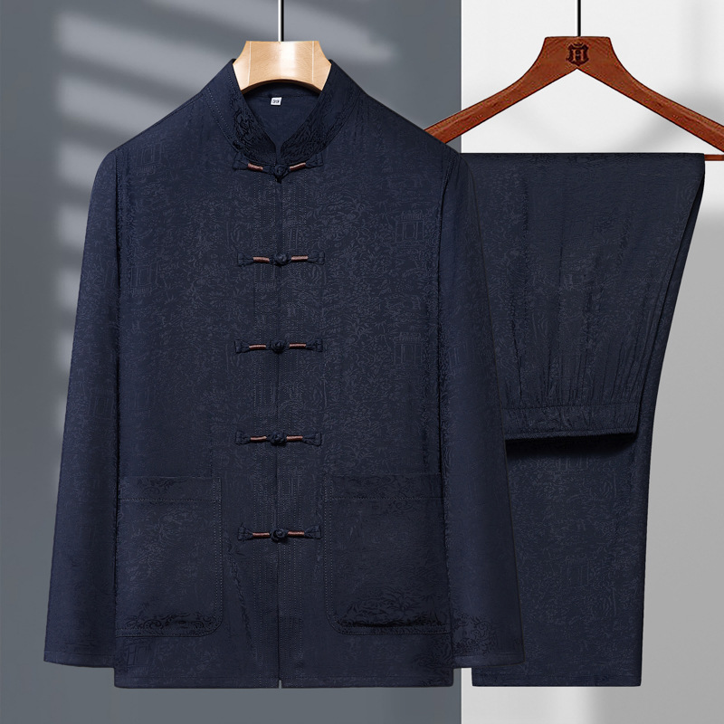 唐装男中老年春秋季长袖套装夏装爸爸装爷爷本命年衣服全套套装