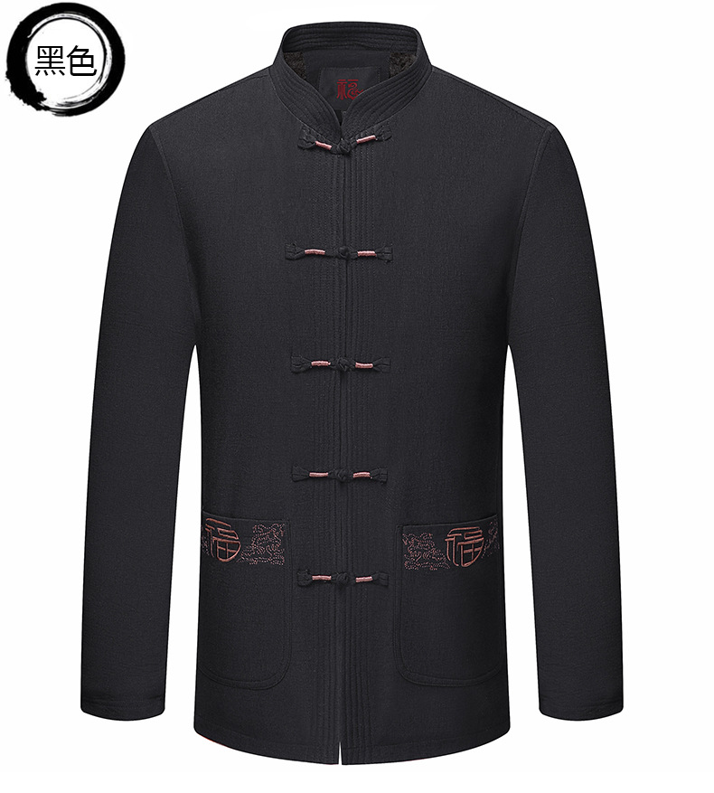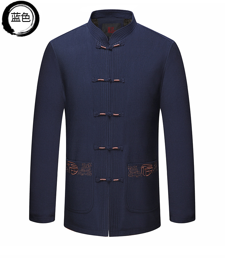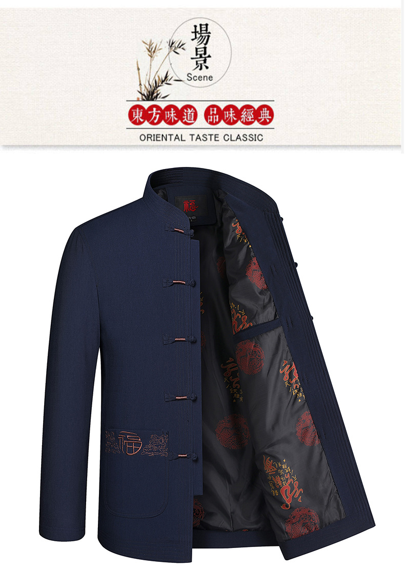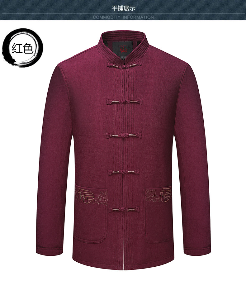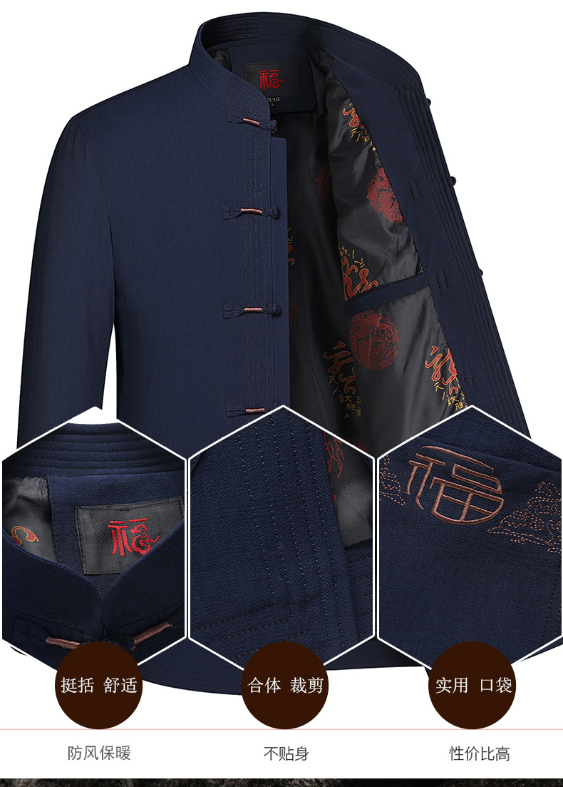 老年人唐装男爷爷装加厚款长袖套装中老年男装衣服秋冬外套中国风