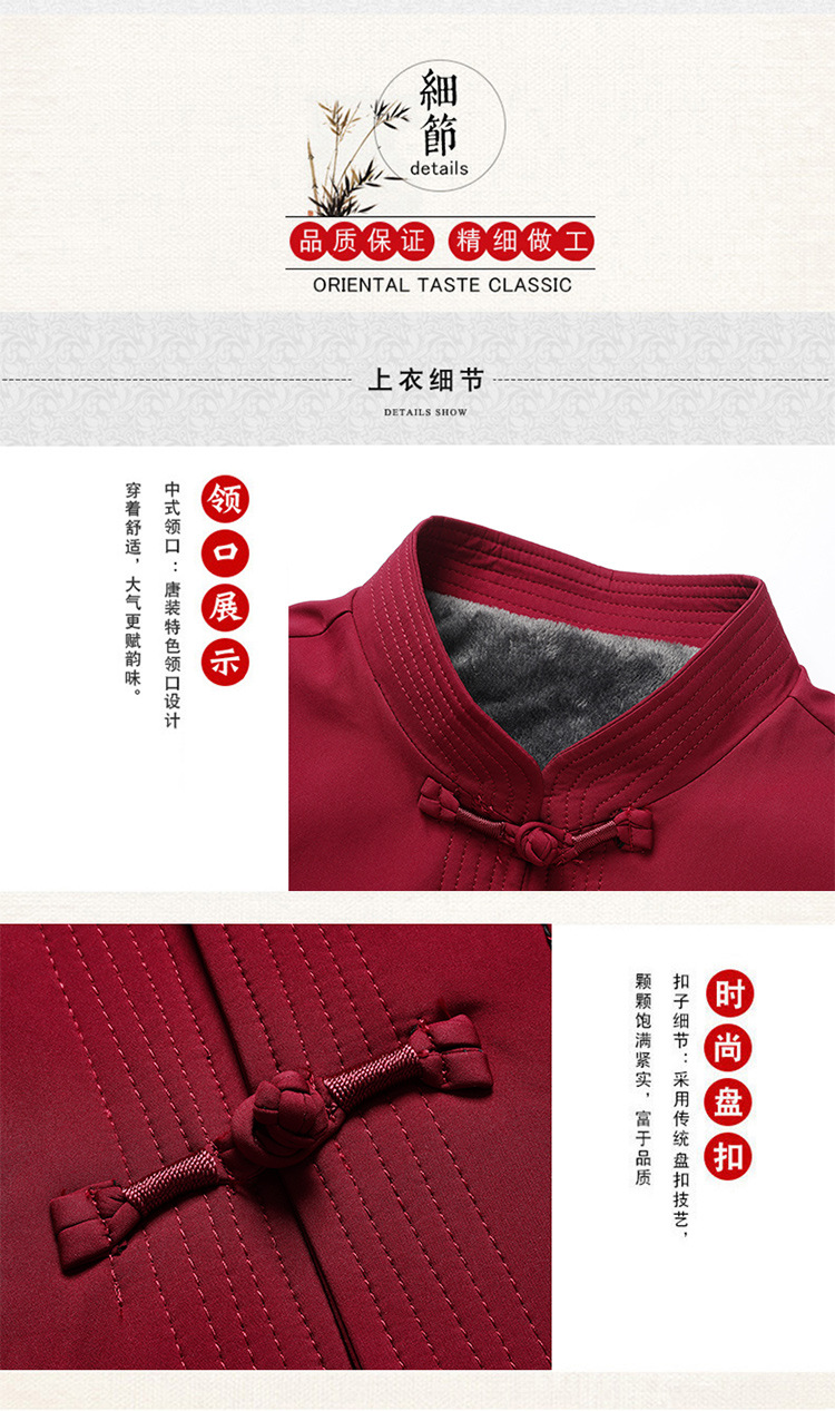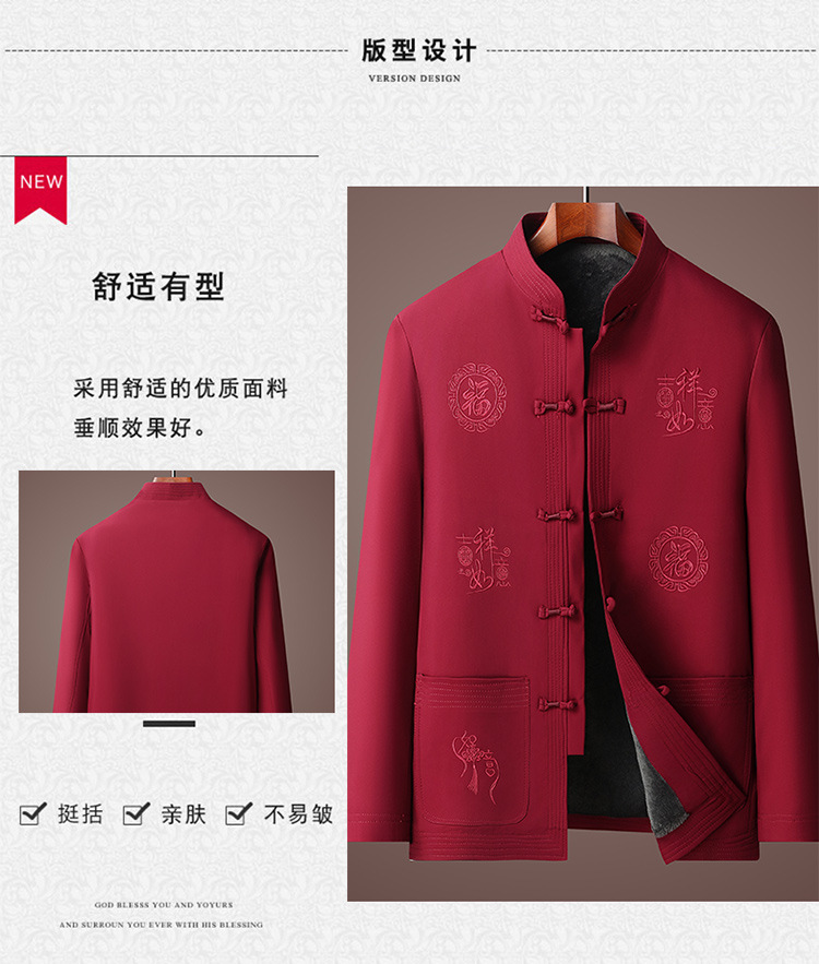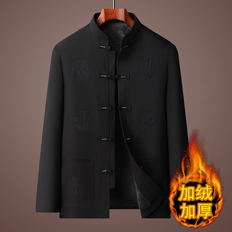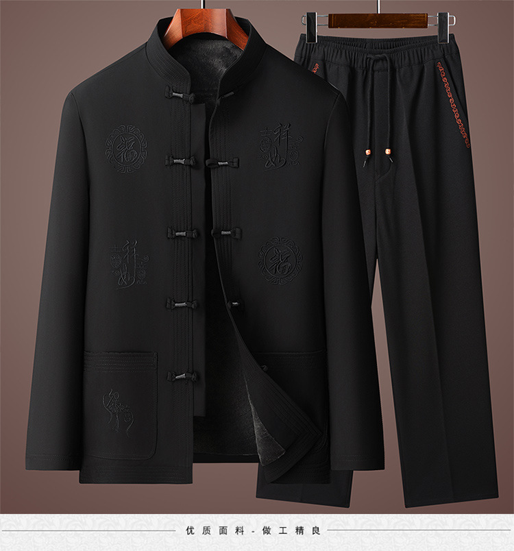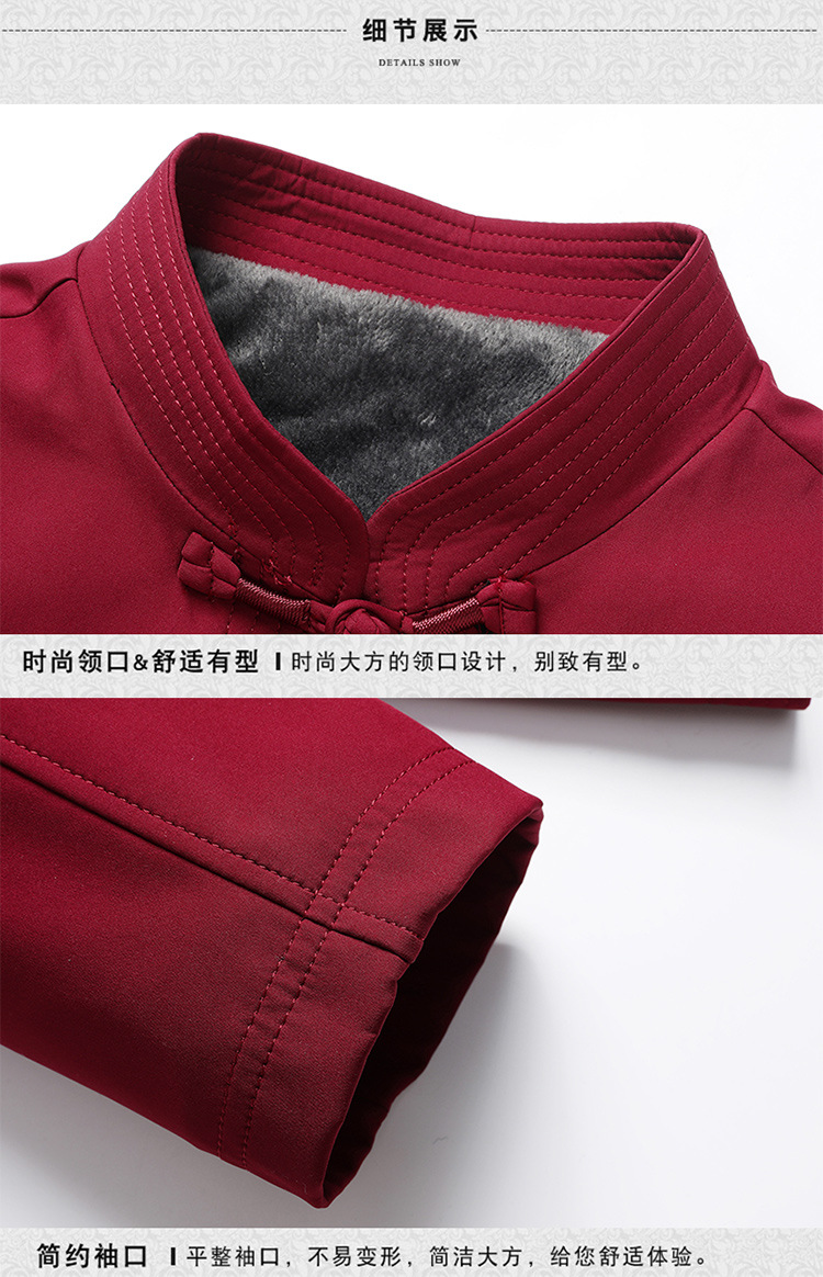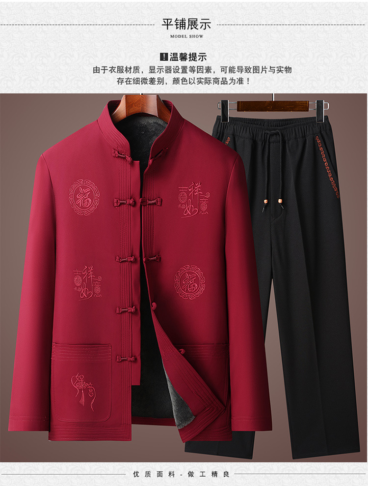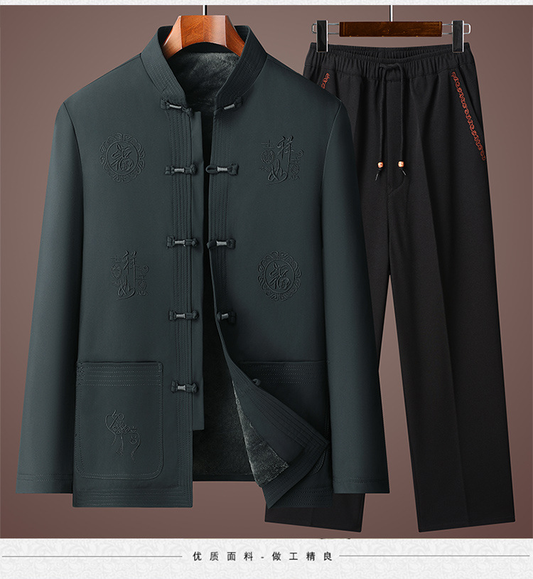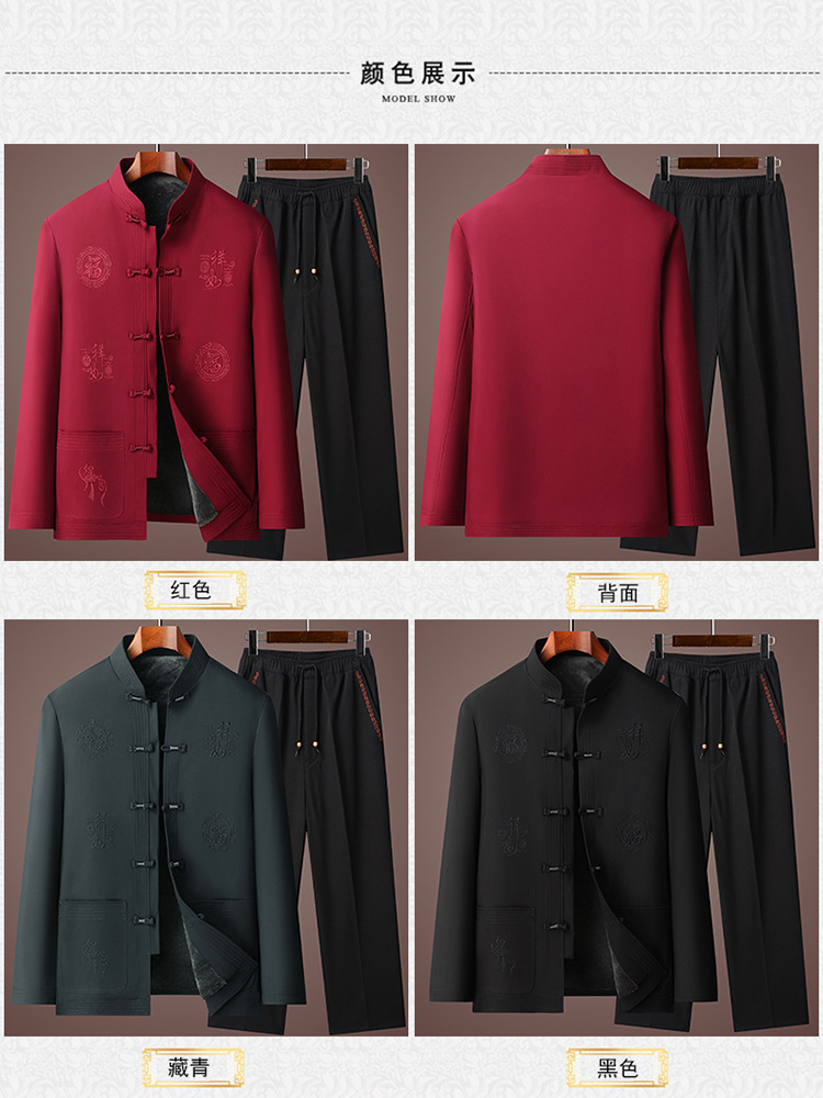 唐装男冬季加绒加厚爸爸棉衣套装中国风父亲棉袄老人爷爷生日外套
