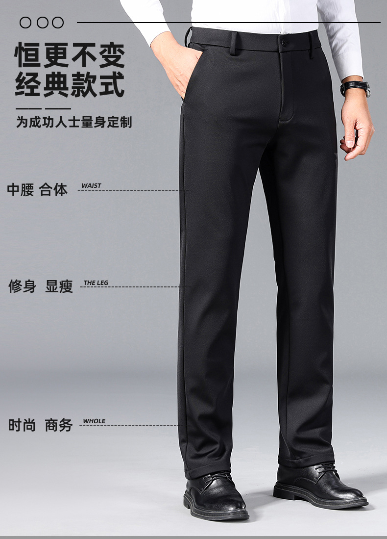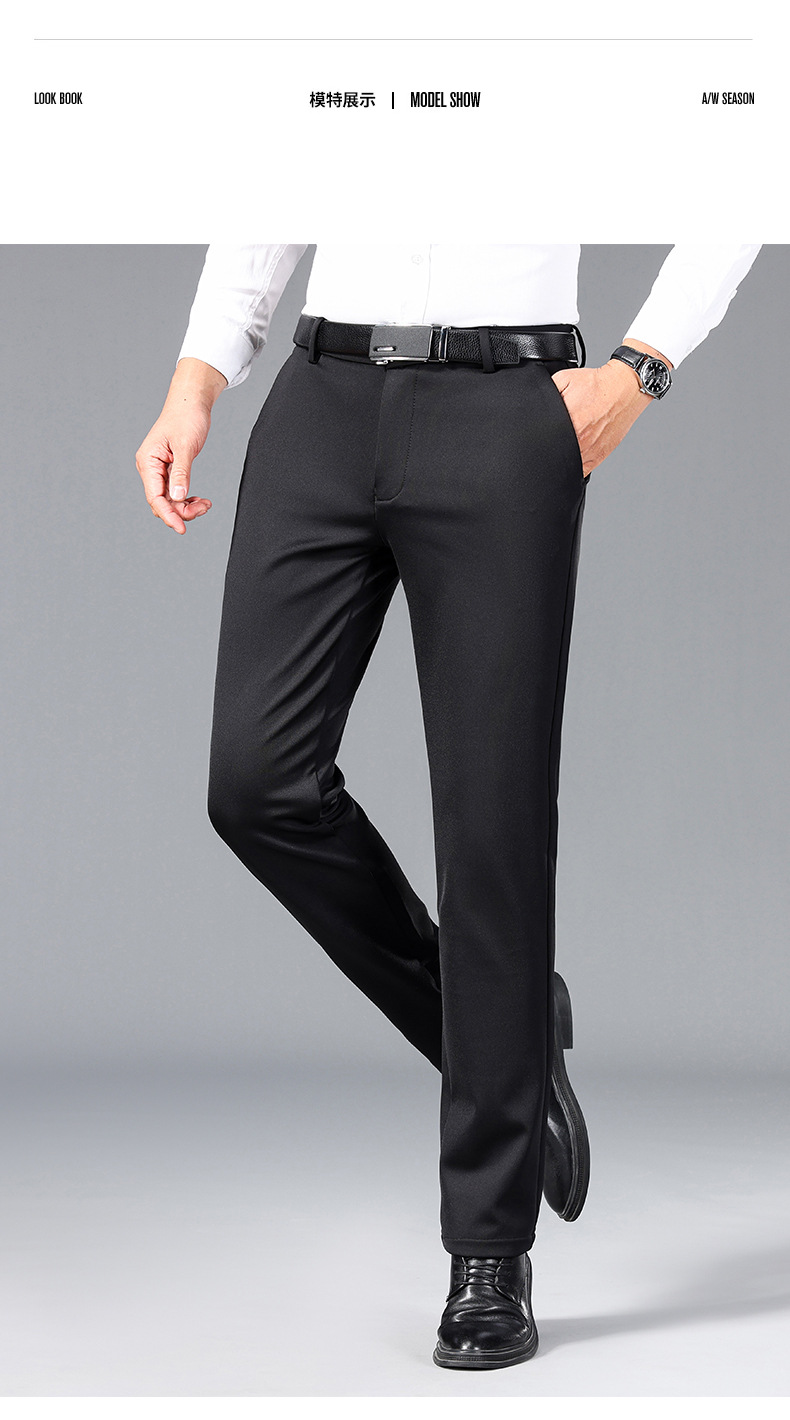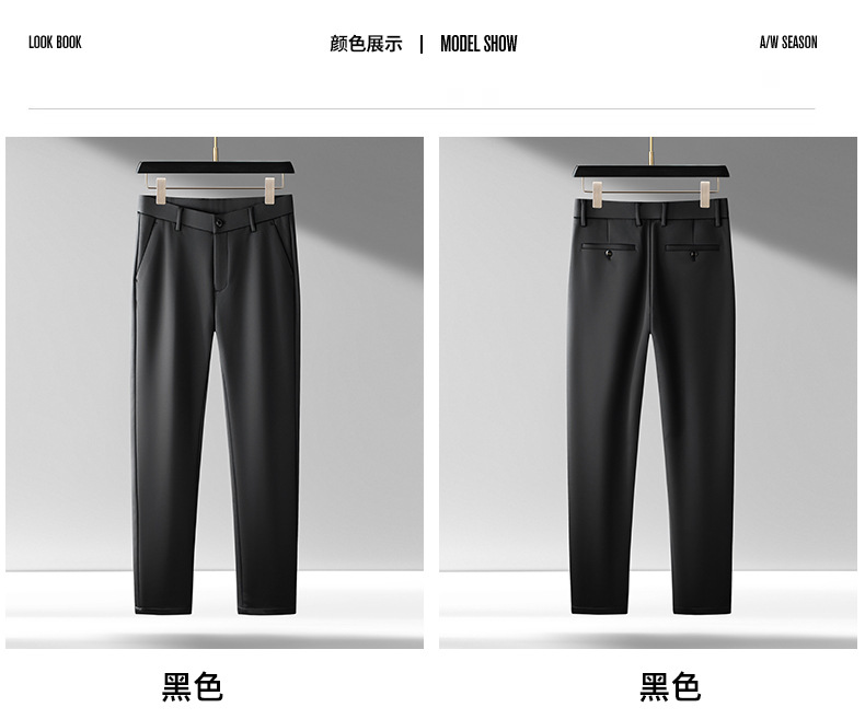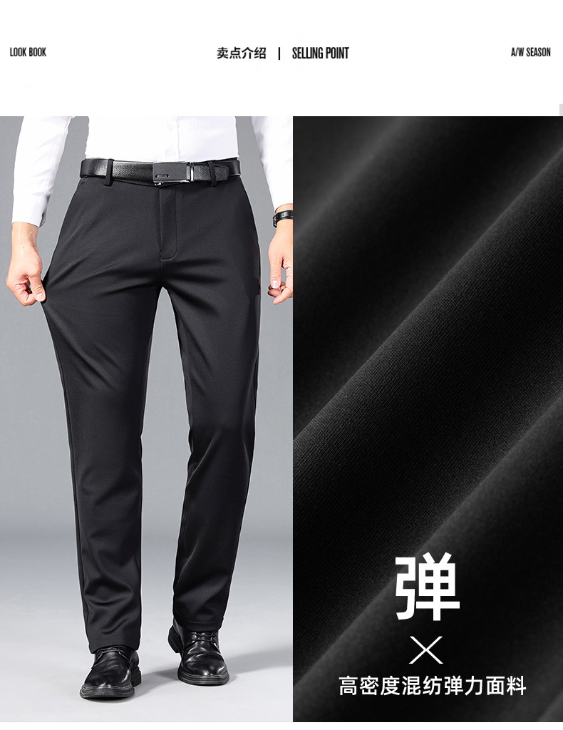2024新款男士裤子秋冬休闲裤修身商务中年长裤免烫黑色西裤垂感直