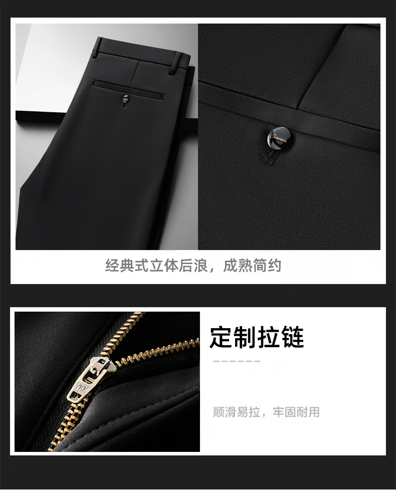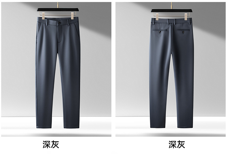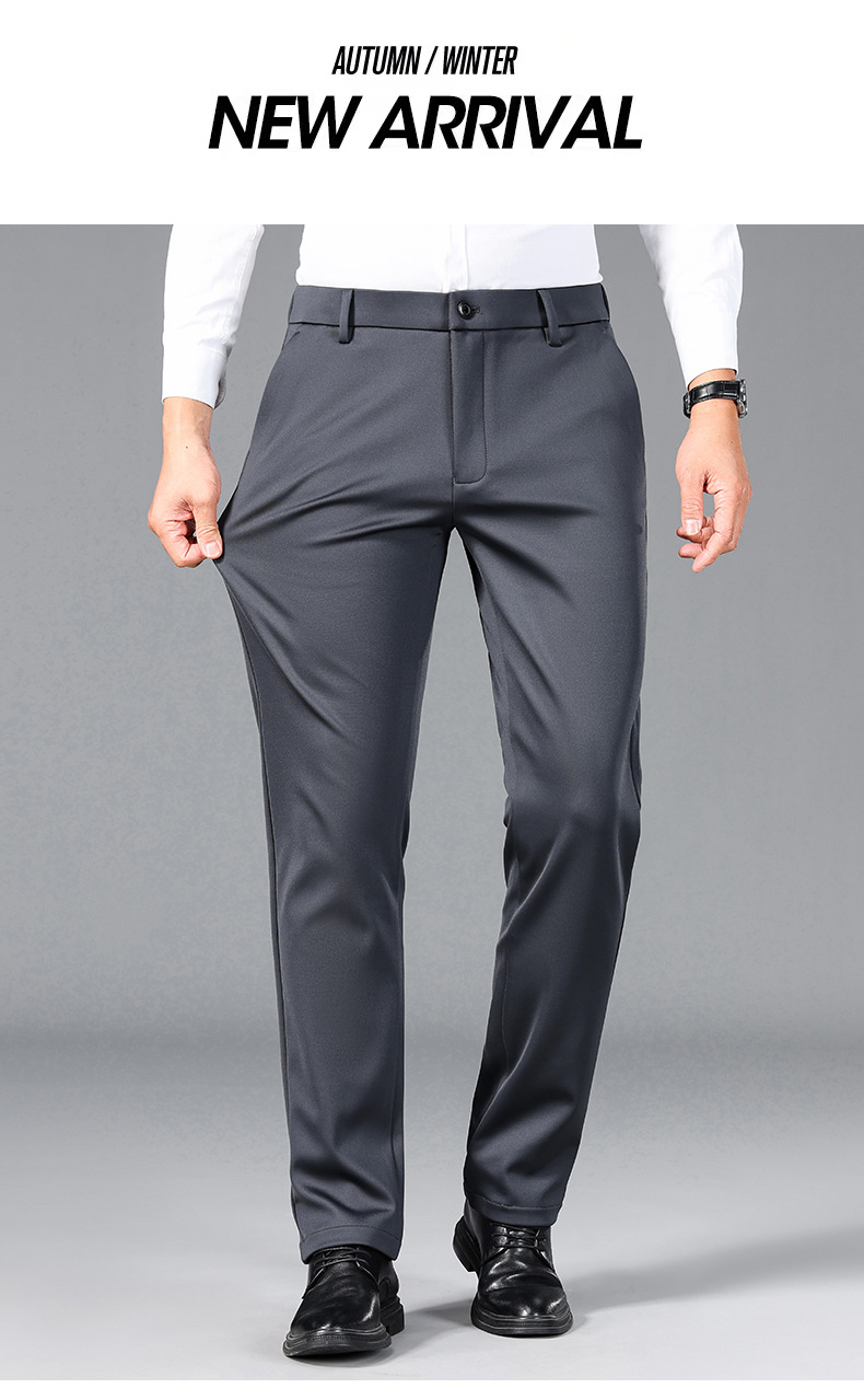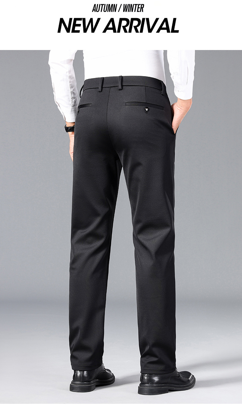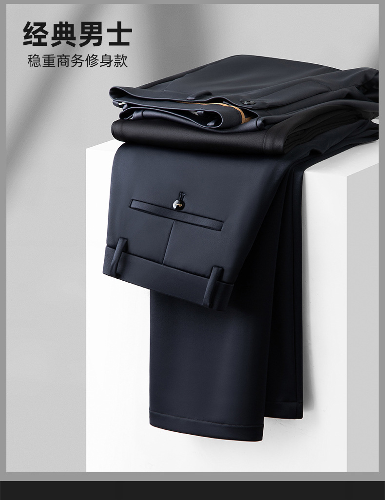 2024新款男士裤子秋冬休闲裤修身商务中年长裤免烫黑色西裤垂感直
