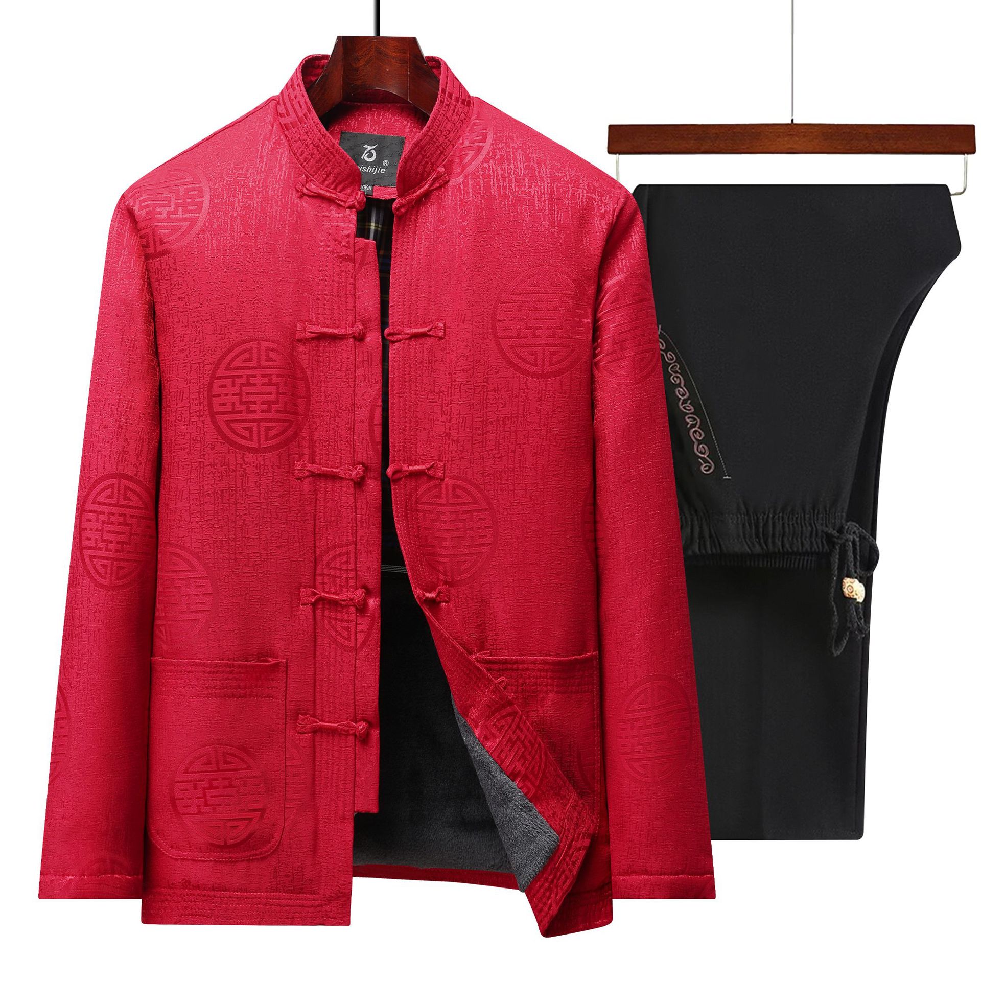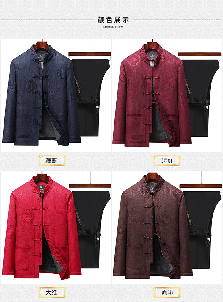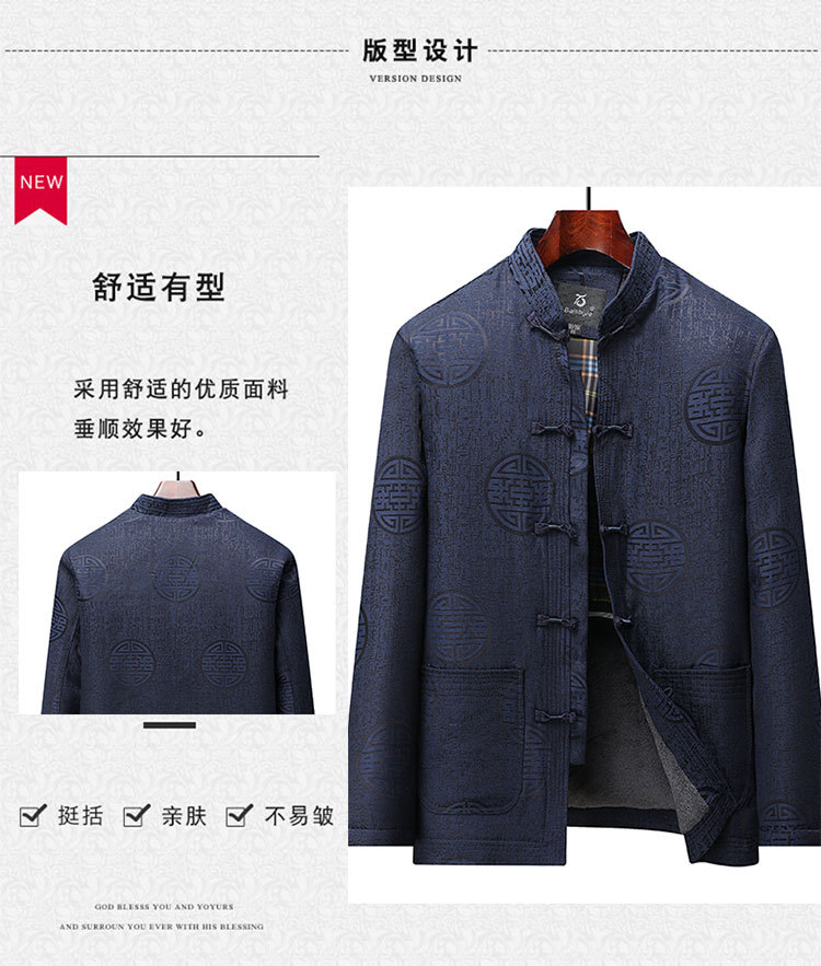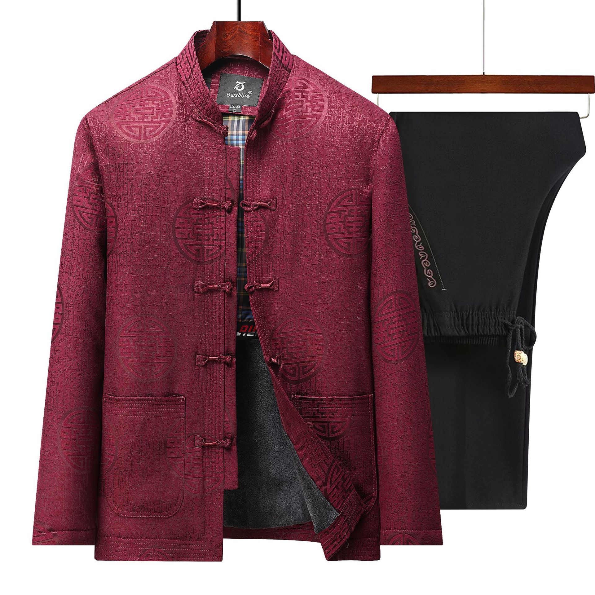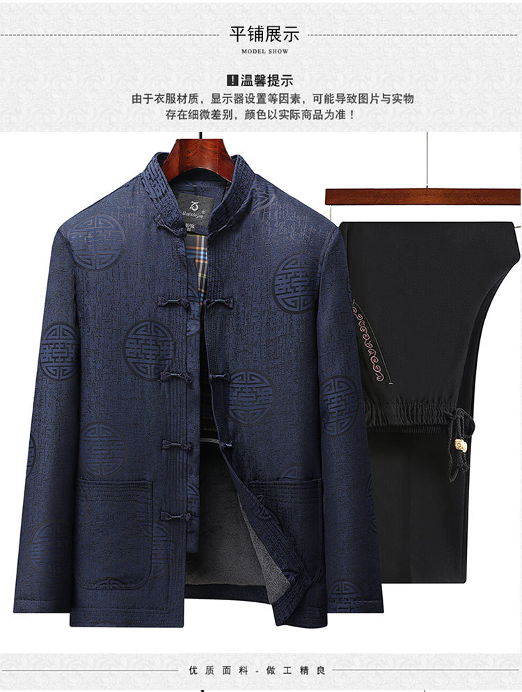 爸爸秋装套装唐装中年男长袖夹克中老年人生日爷爷外套宴会婚礼服