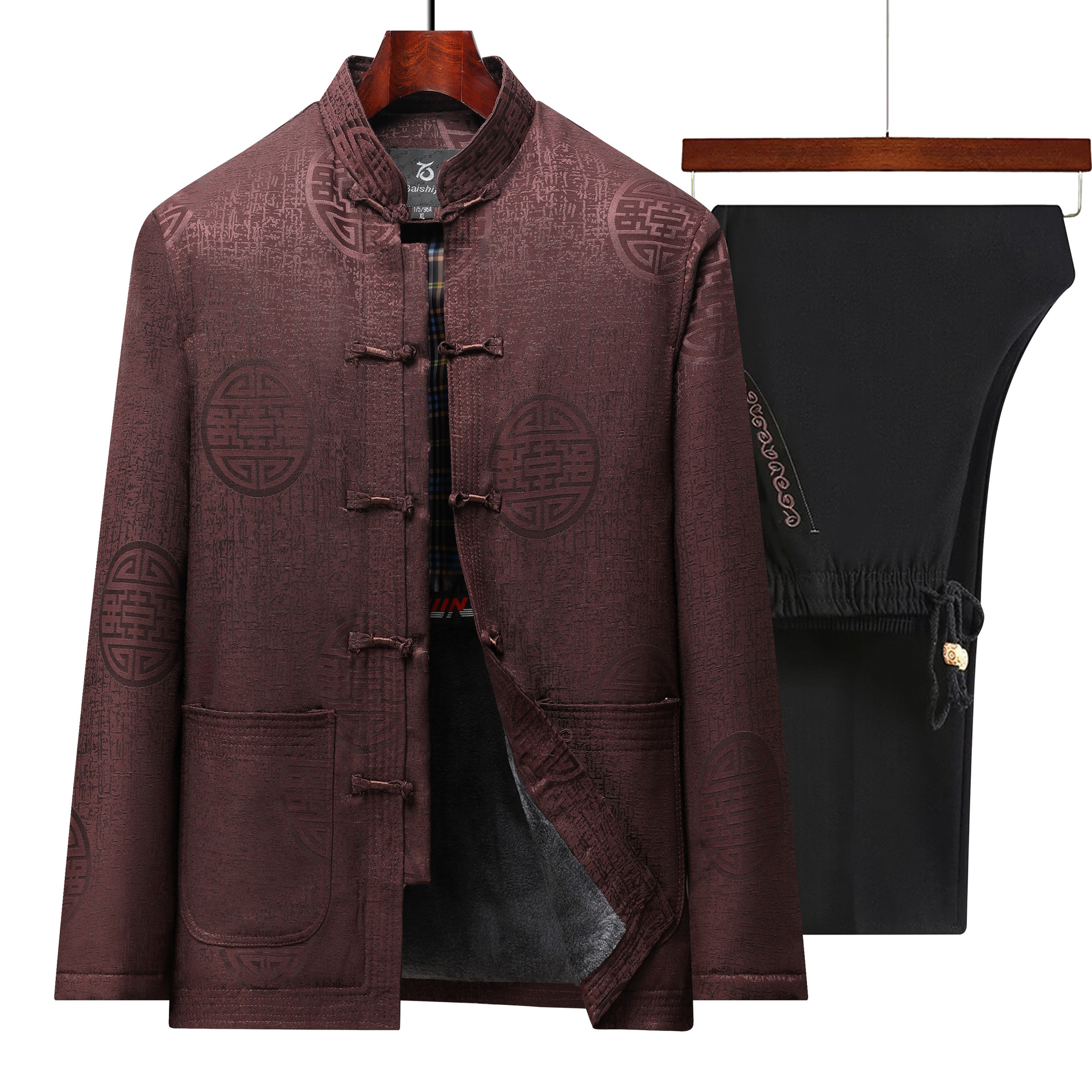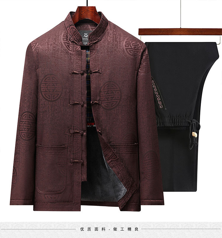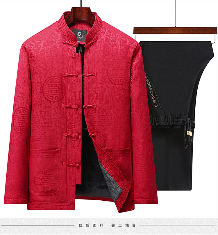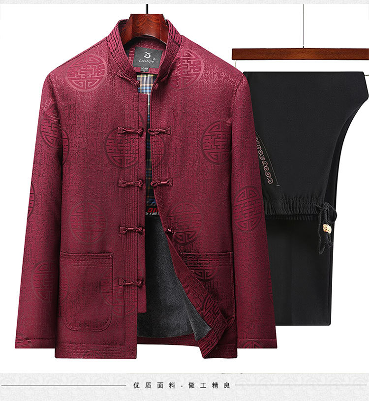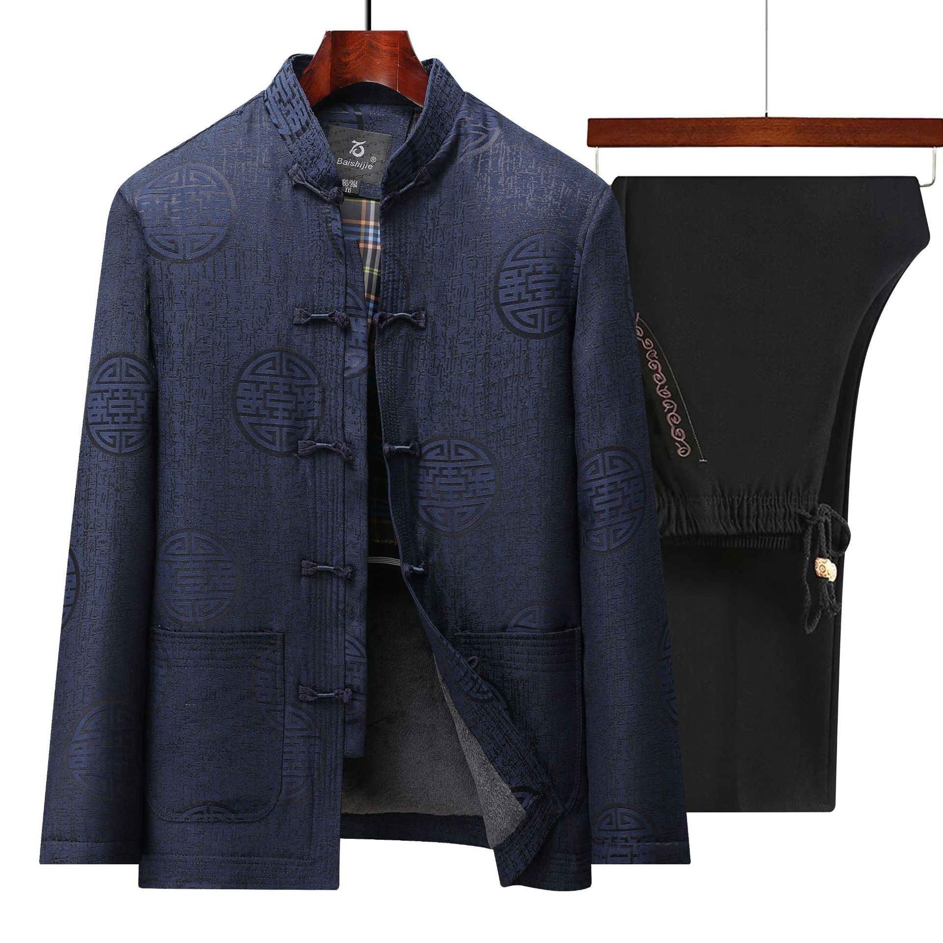 爸爸秋装套装唐装中年男长袖夹克中老年人生日爷爷外套宴会婚礼服