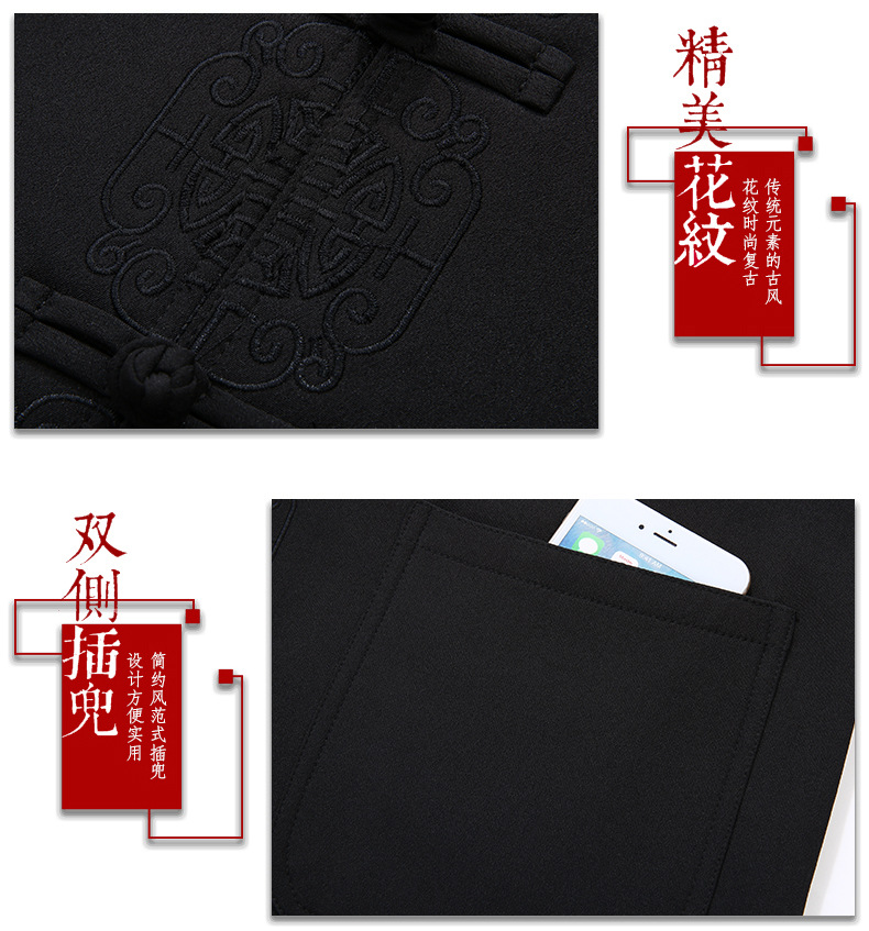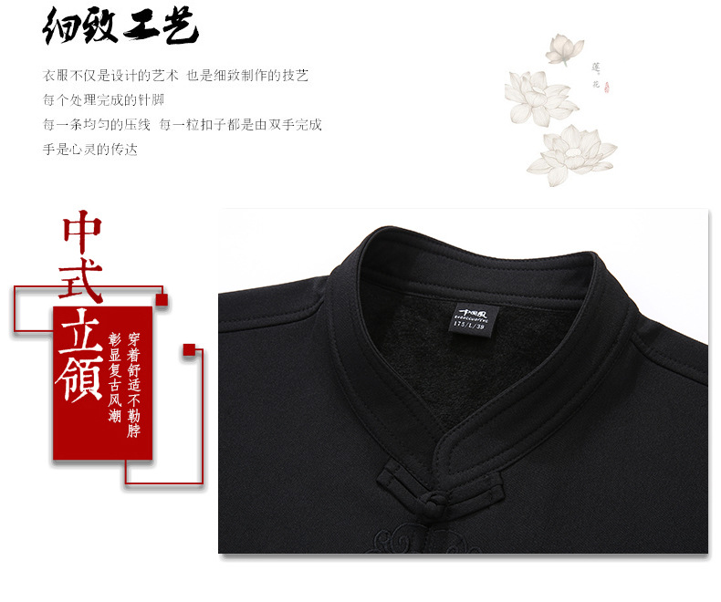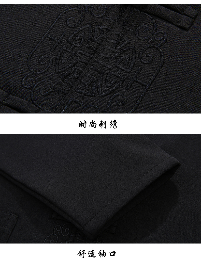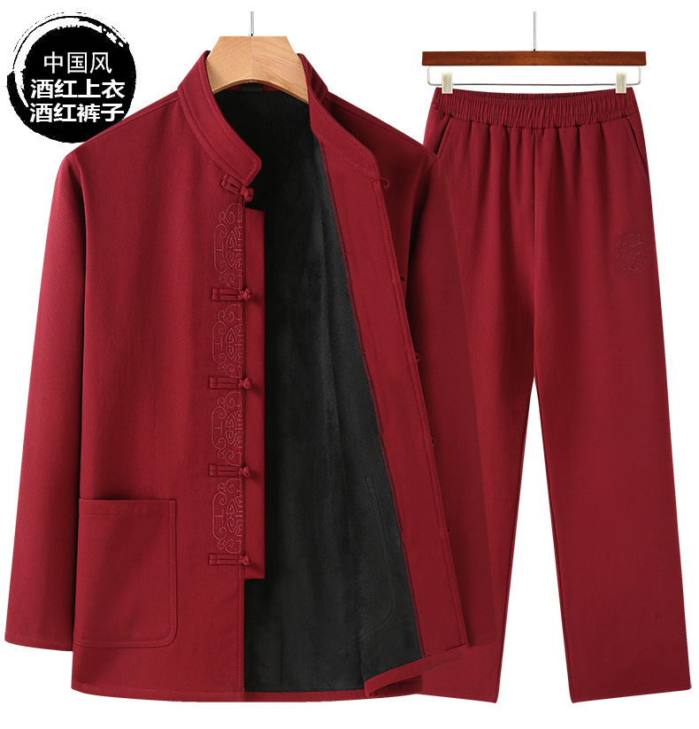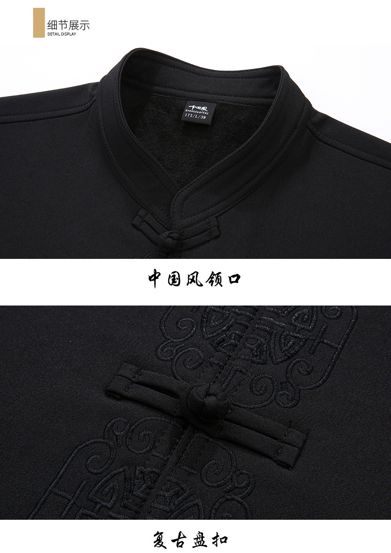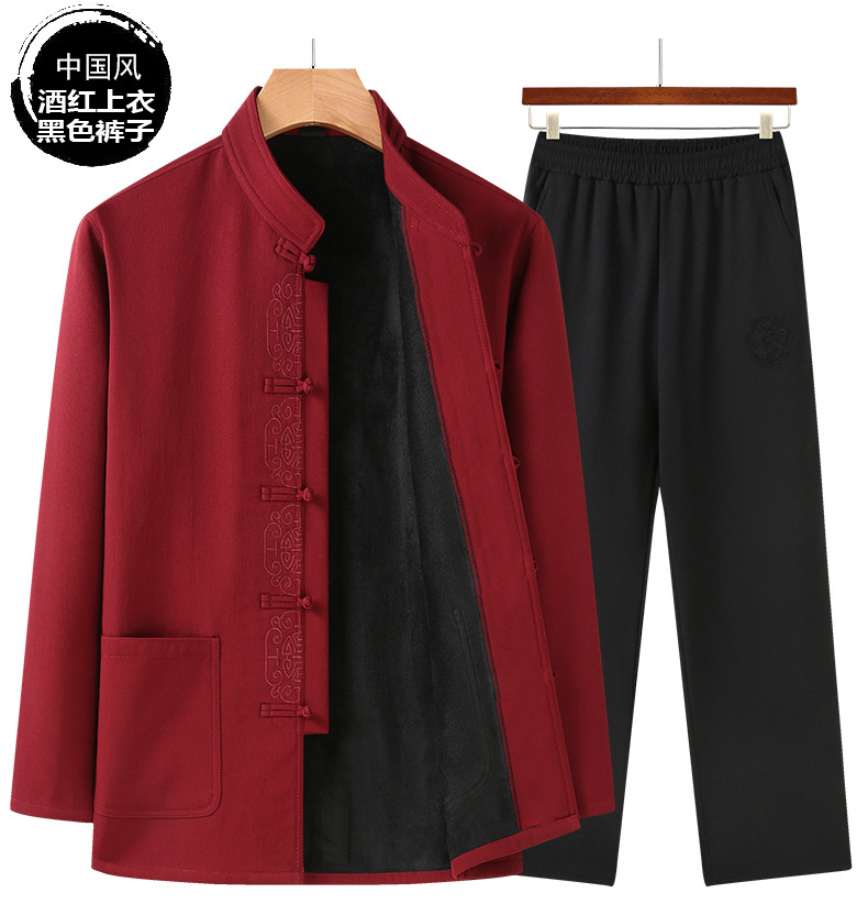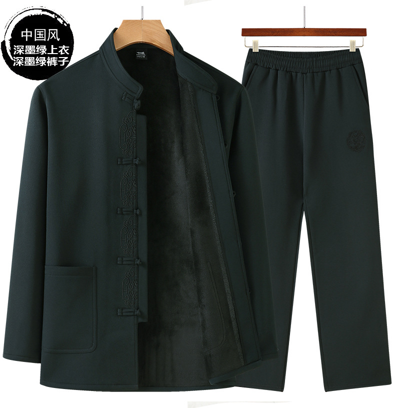 老人秋装长袖t恤男士中老年中国风唐装两件套宽松大码棉麻爷爷装