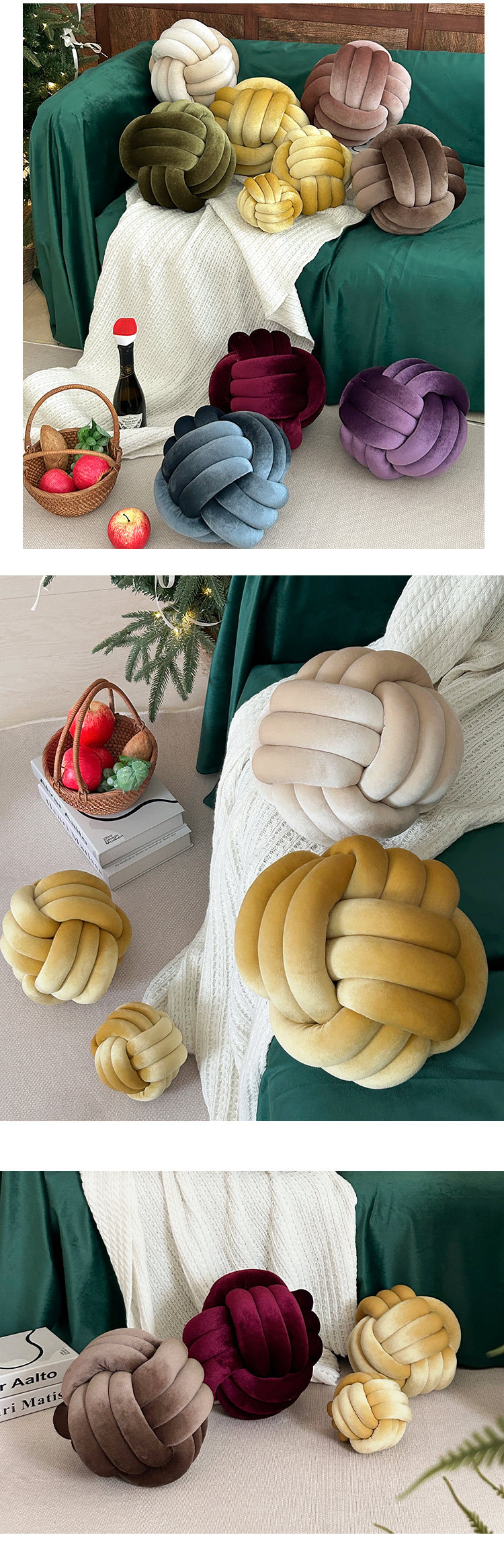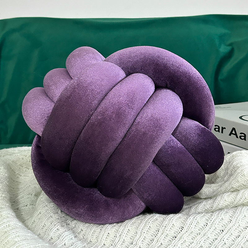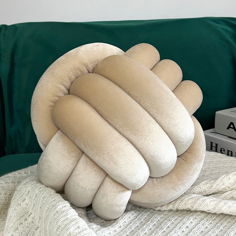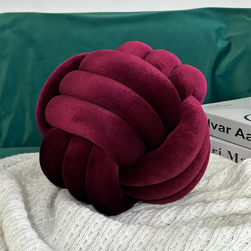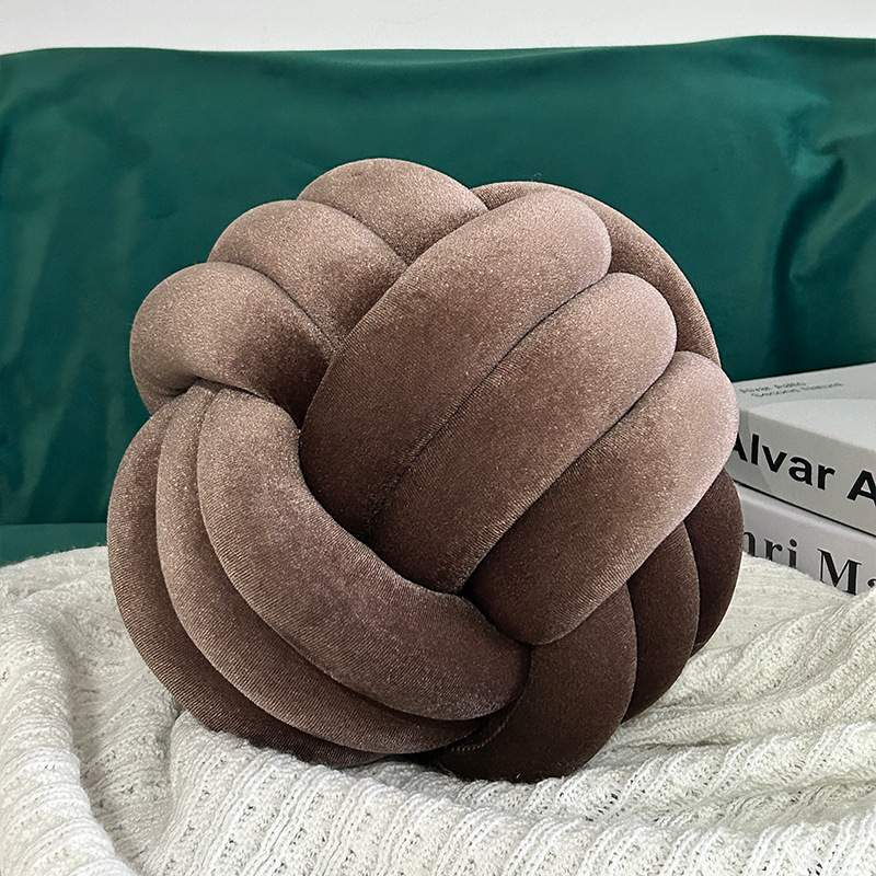 北欧ins抱枕三股绳打结球抱枕手工编织金丝绒靠枕靠垫knot飘窗垫