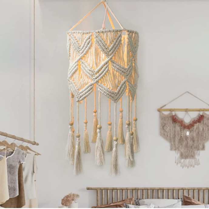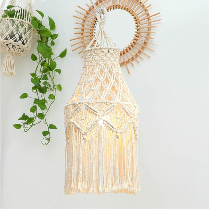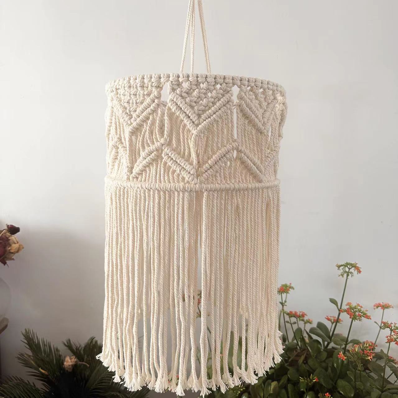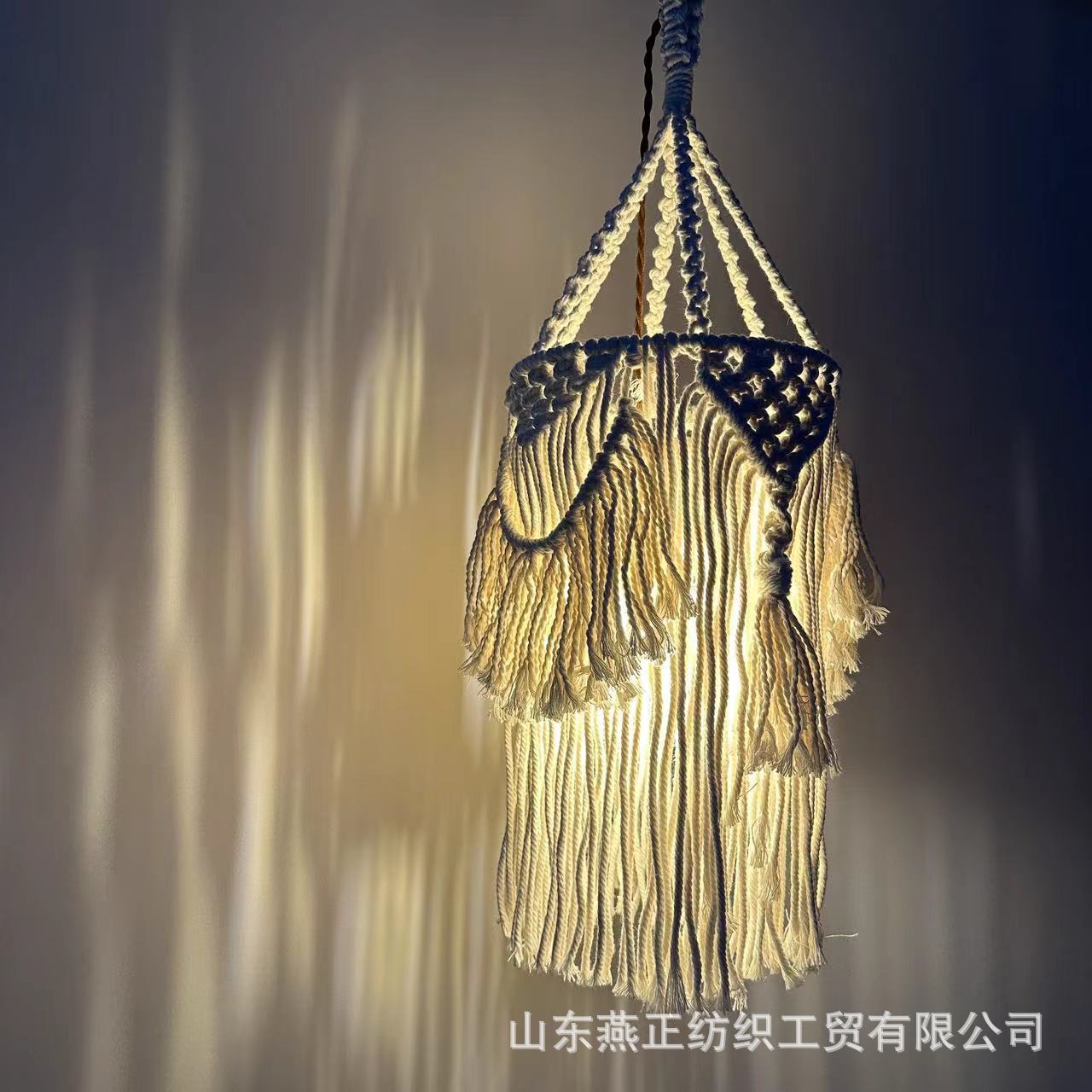 跨境手工编织灯罩波西米亚风 棉绳灯罩复古装饰 民宿手工编织灯罩