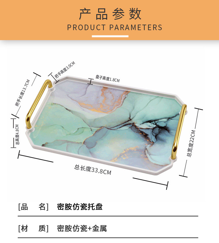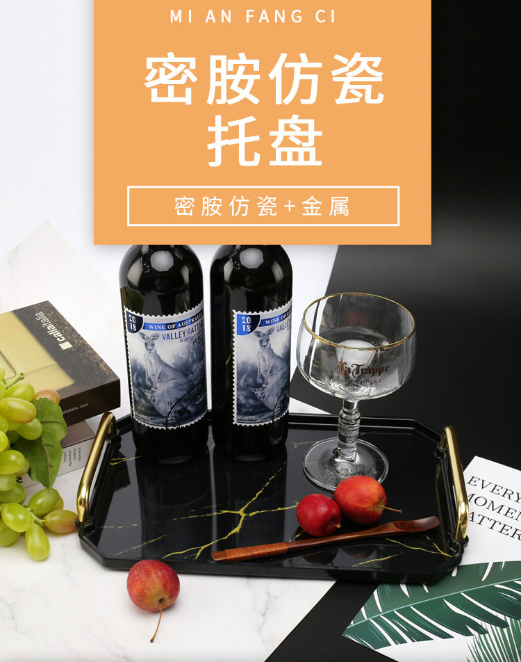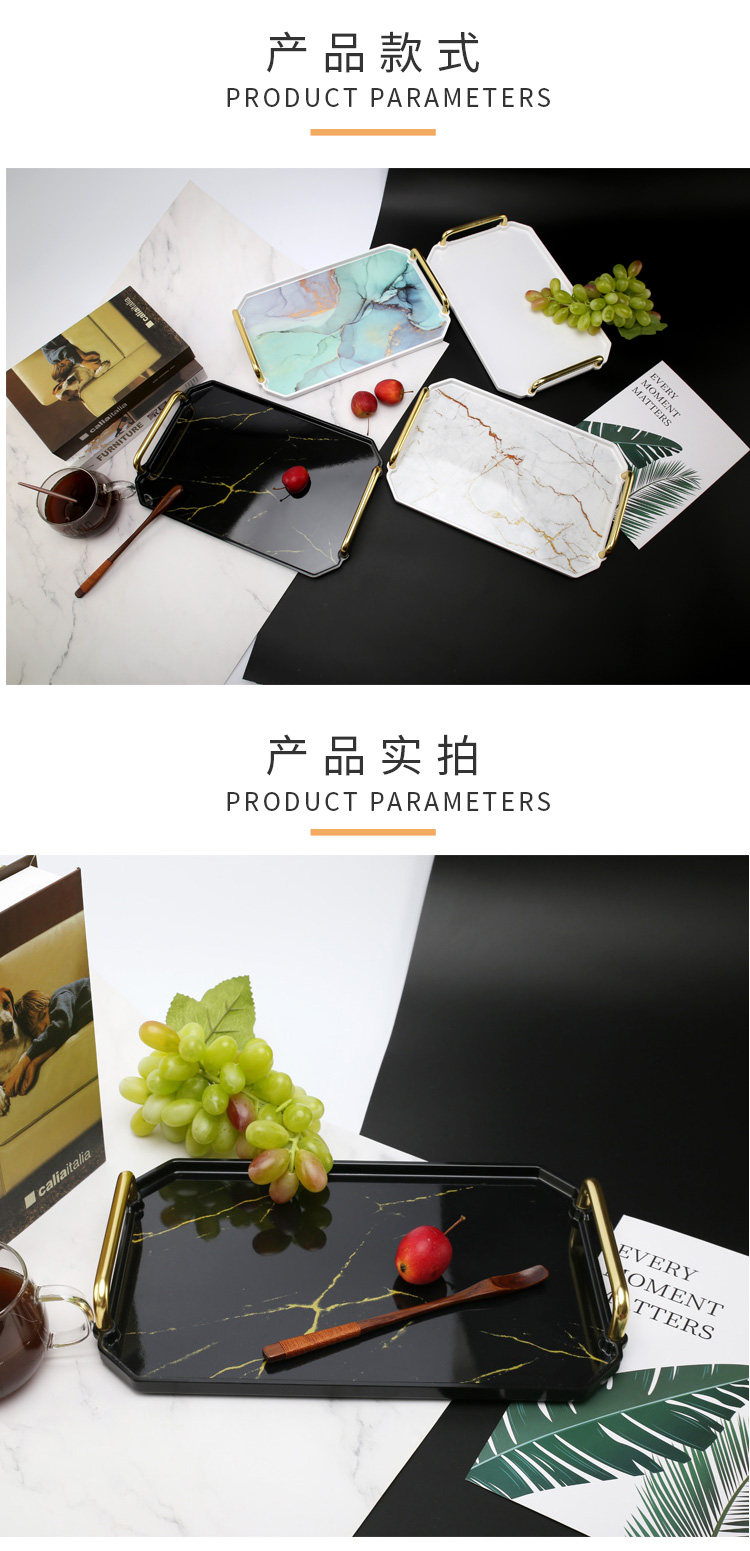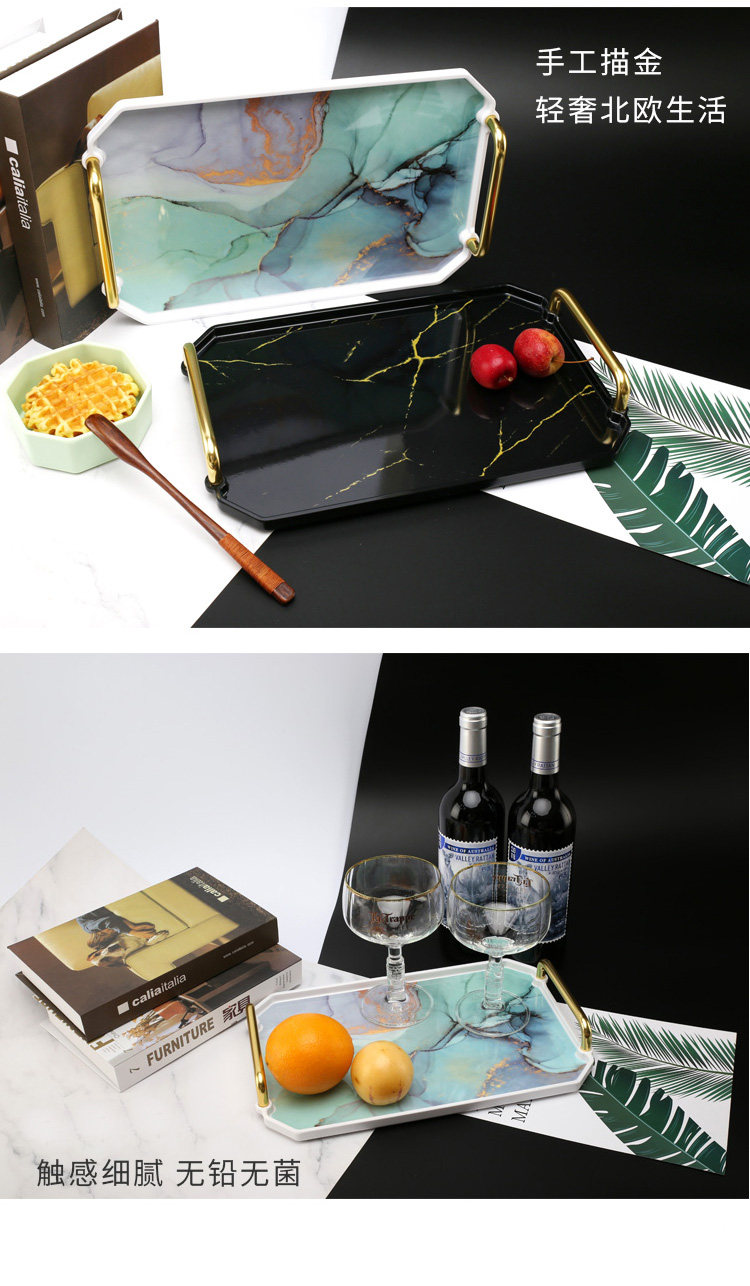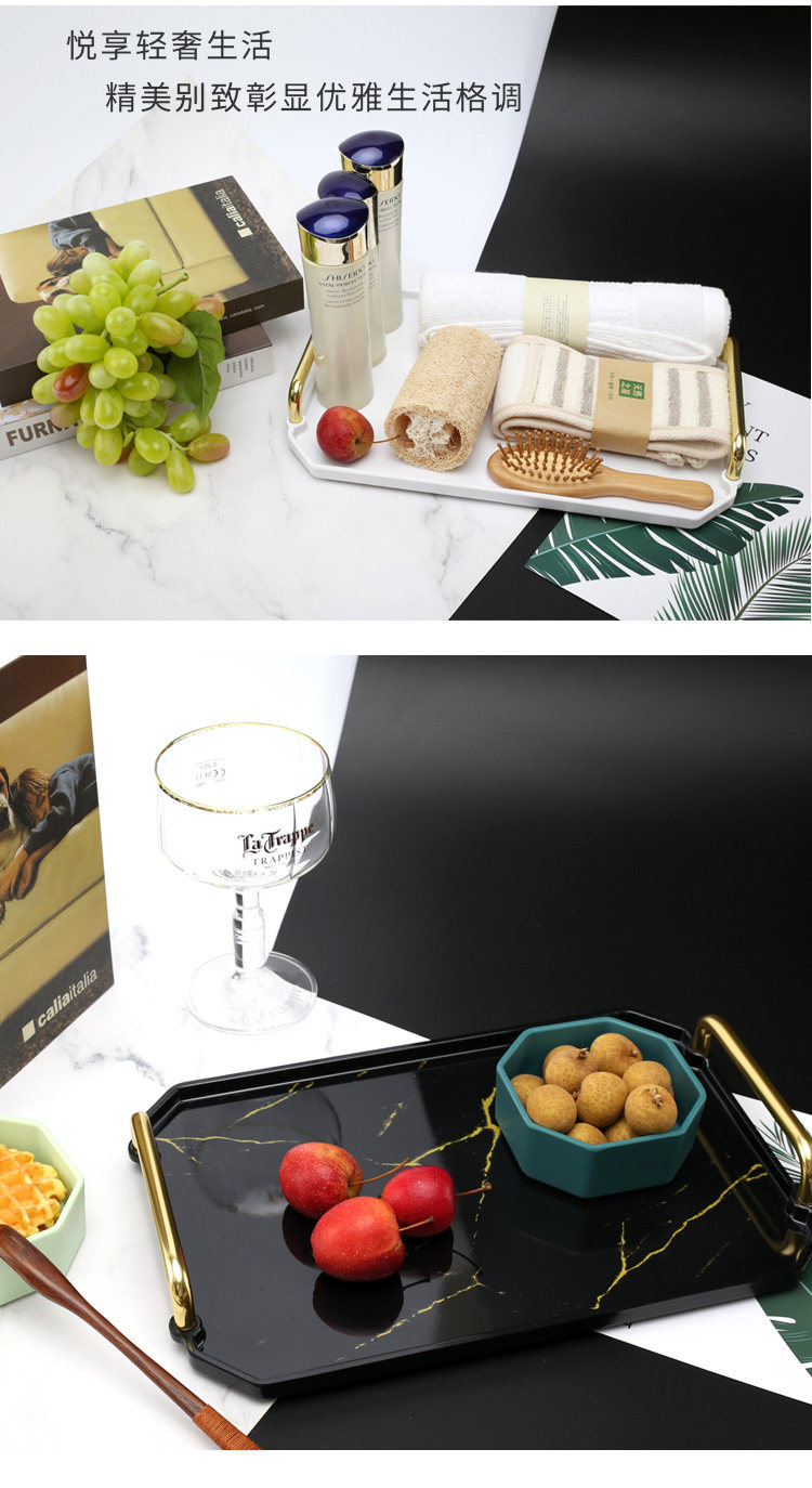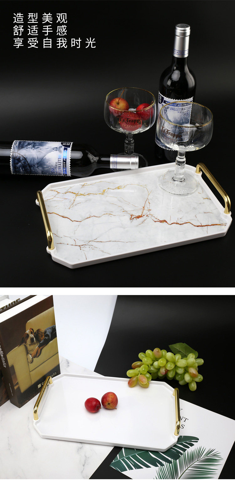 轻奢大理石纹方形托盘水杯盘茶盘家用客厅置物盘化妆品收纳盘白色