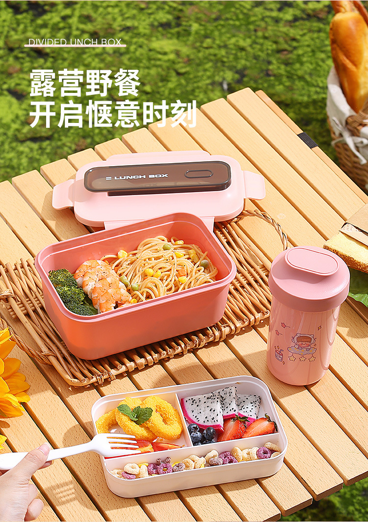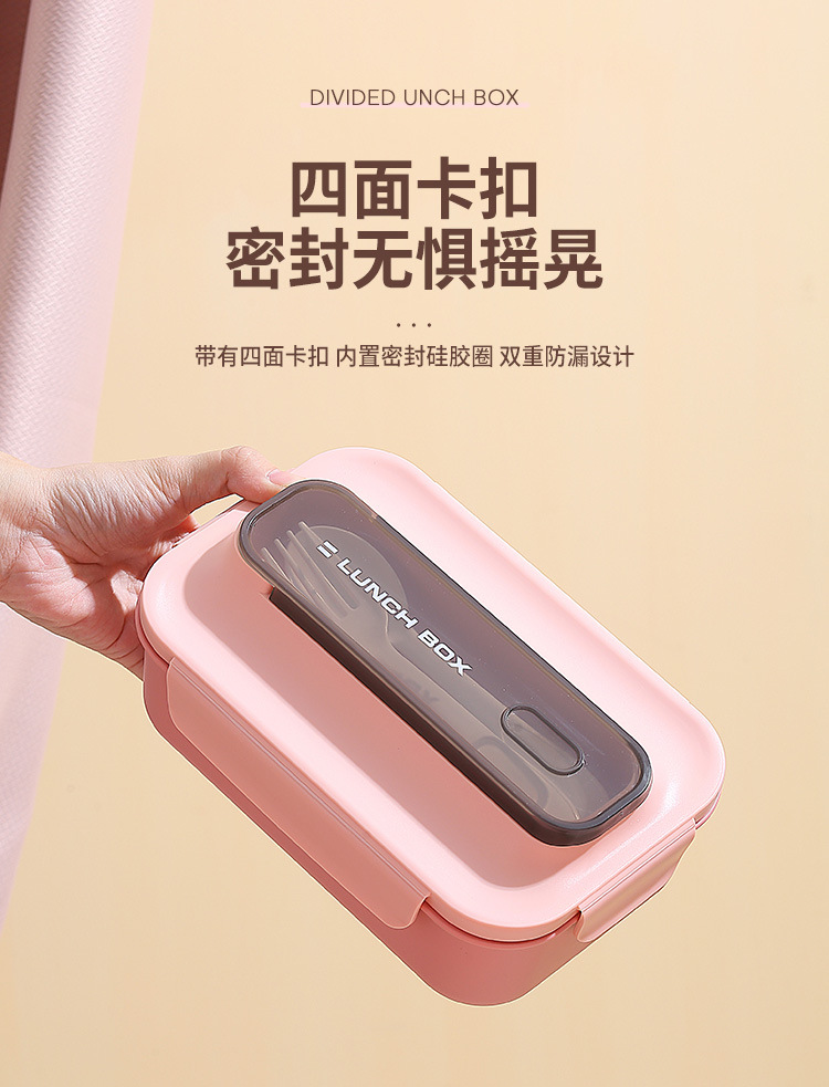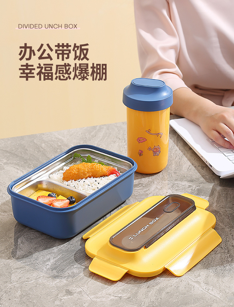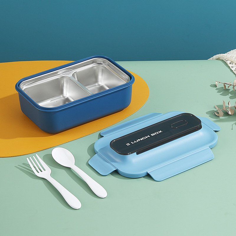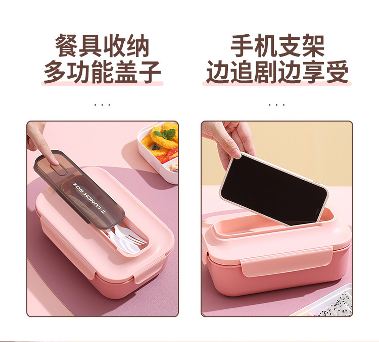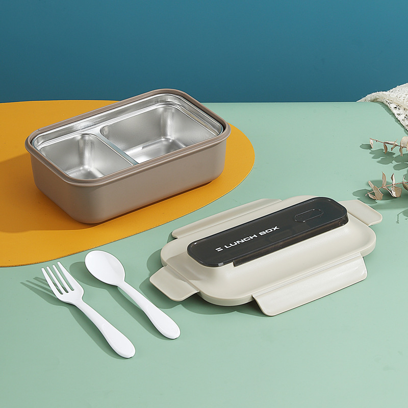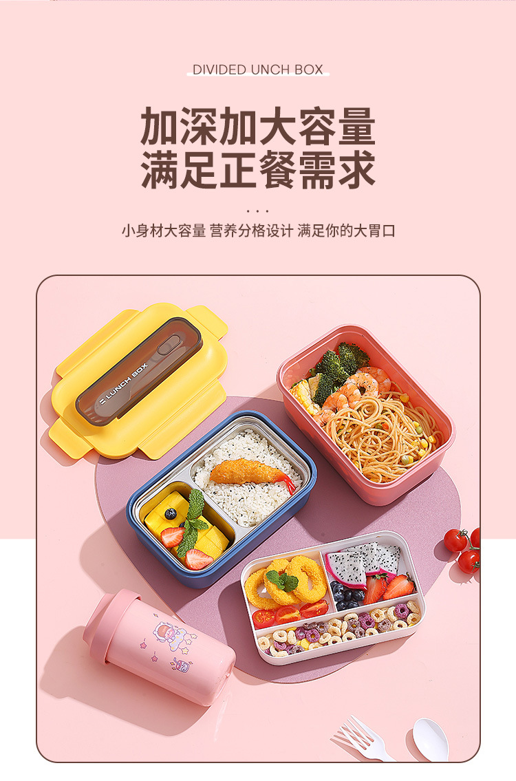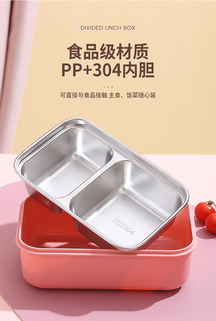 304不锈钢双层饭盒家用PP分格轻食便当盒上班族学生餐盒带叉勺