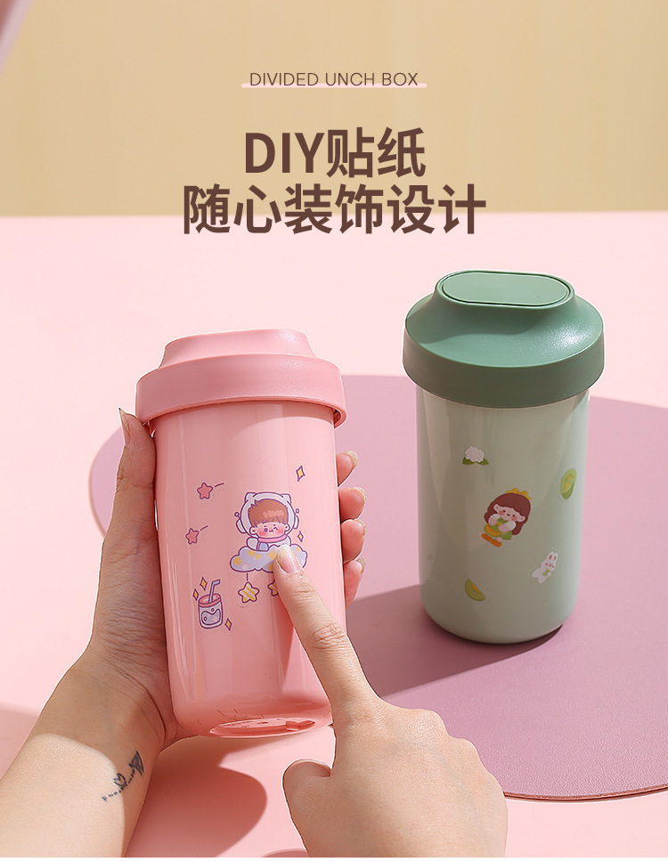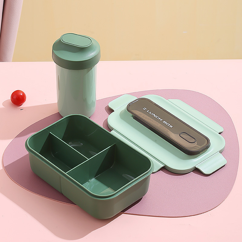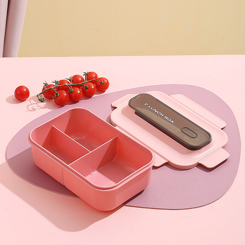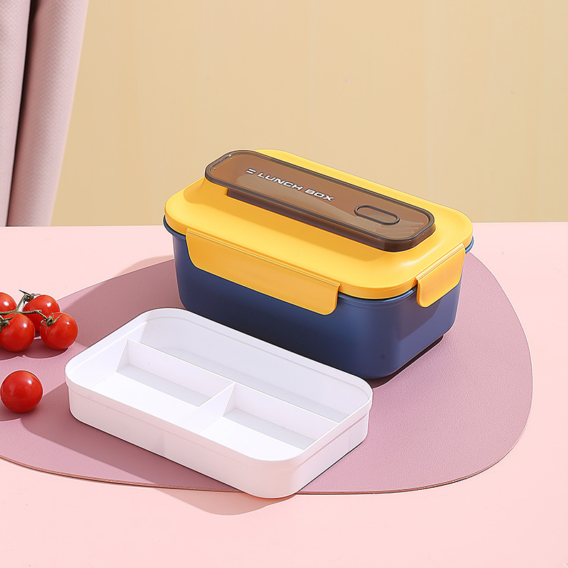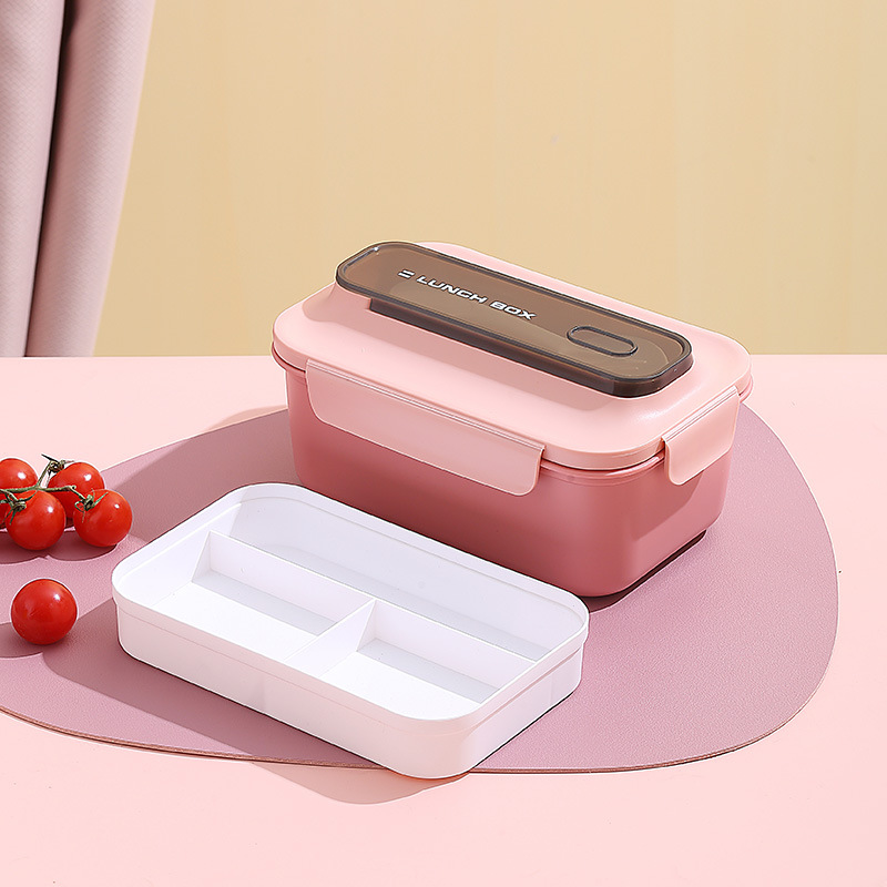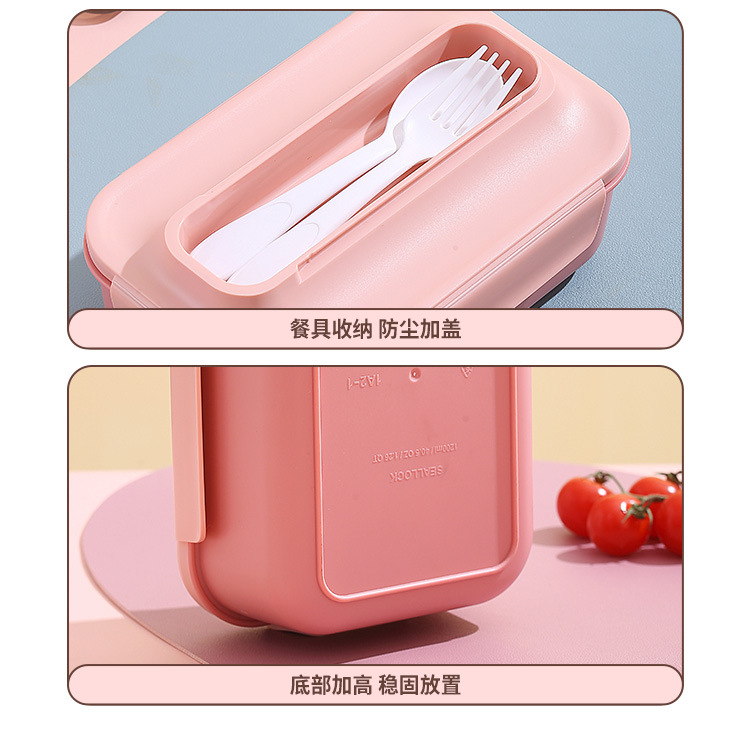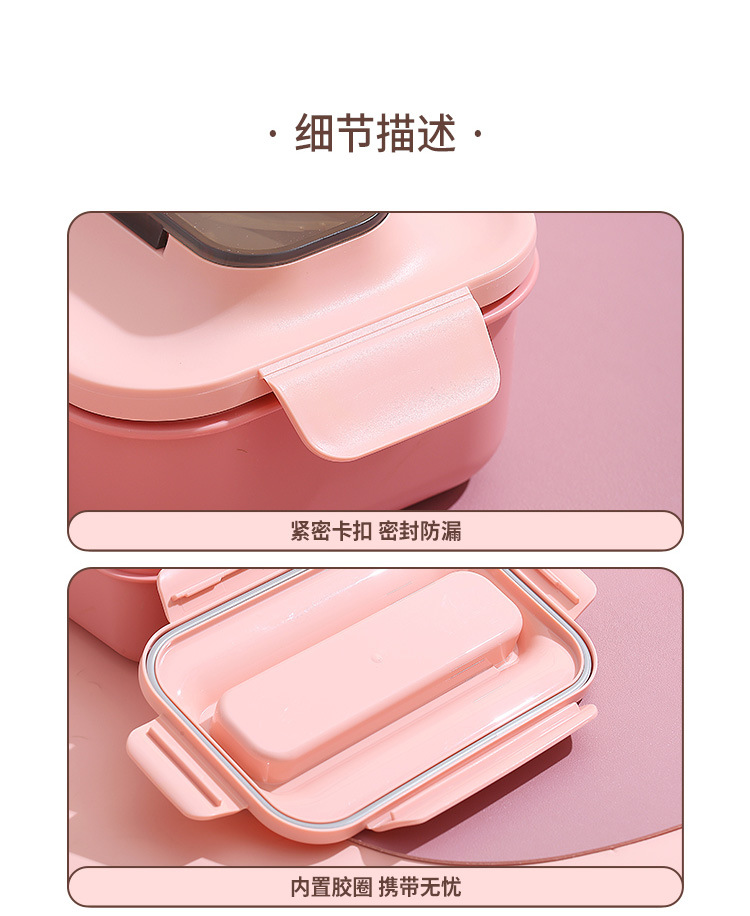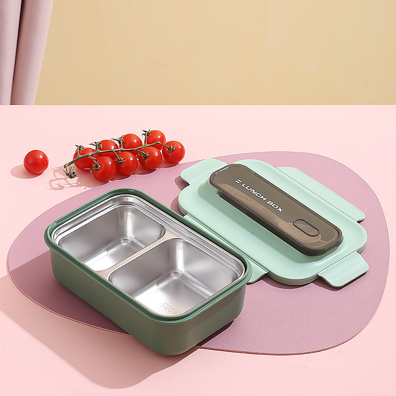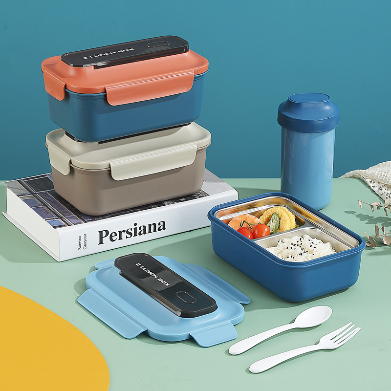 304不锈钢双层饭盒家用PP分格轻食便当盒上班族学生餐盒带叉勺