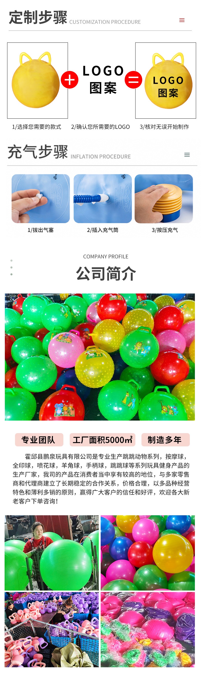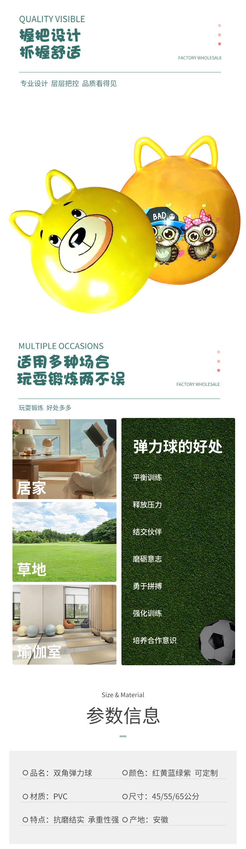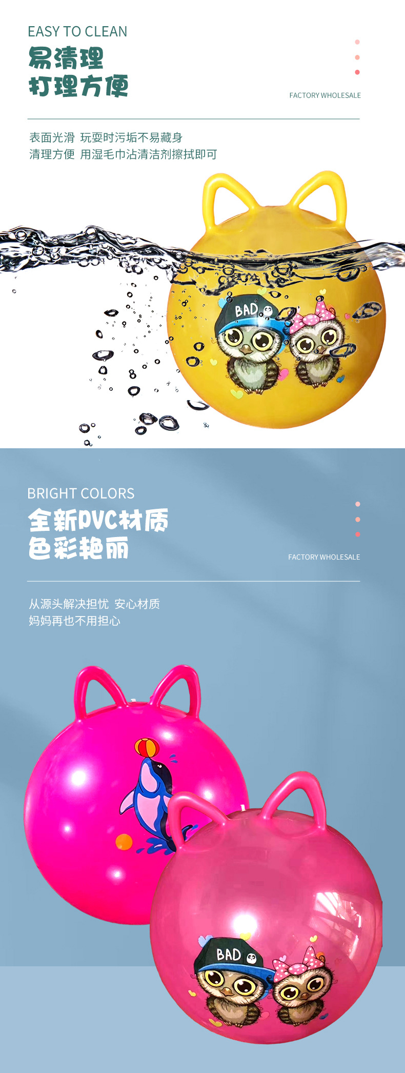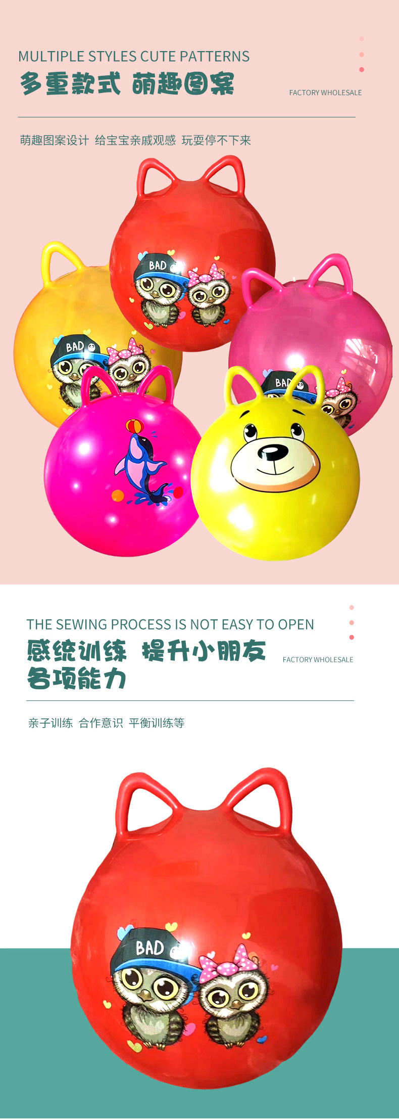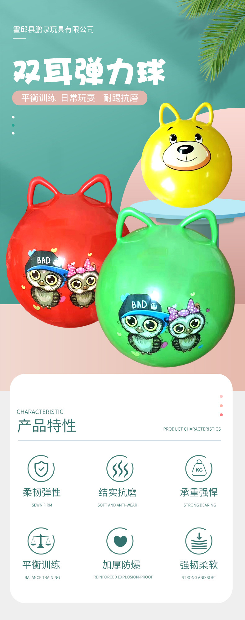 加厚跳跳球双耳弹力球儿童充气玩具蹦蹦球大号幼儿园感统训练