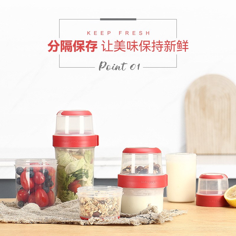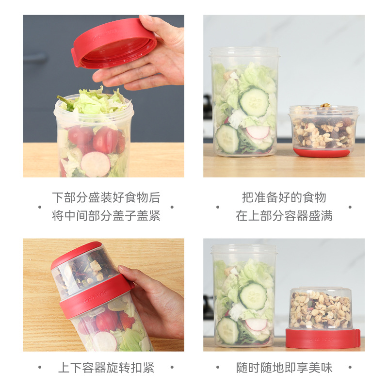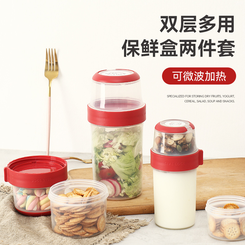 便携双层保鲜盒宝宝婴儿辅食盒酸奶沙拉密封盒水果零食塑料密封罐