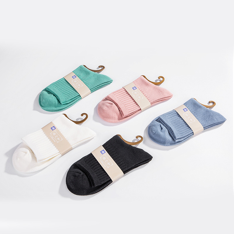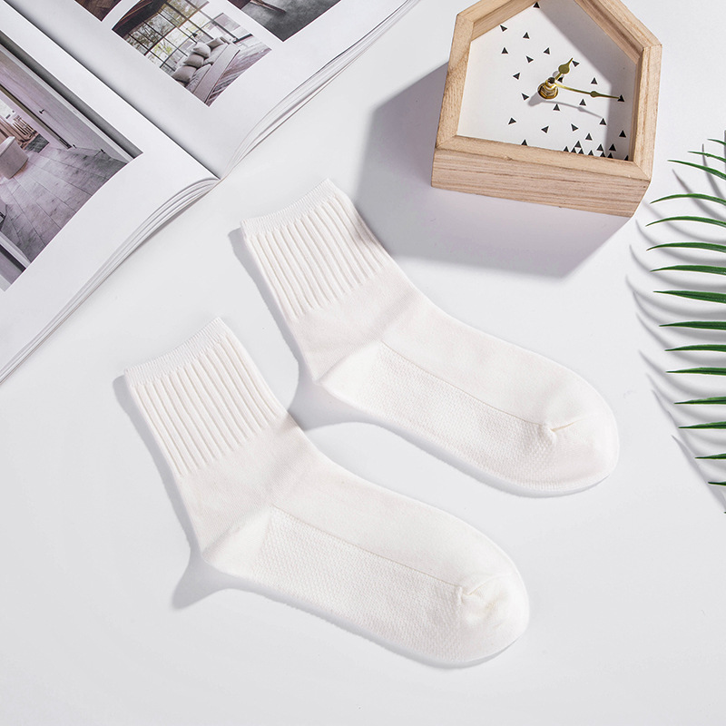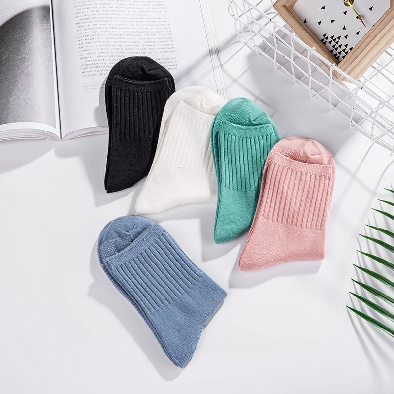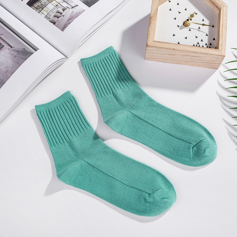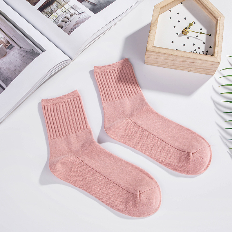 纯色全棉女袜 休闲运动百搭袜子吸汗透气 双针中筒爆款按摩底女袜