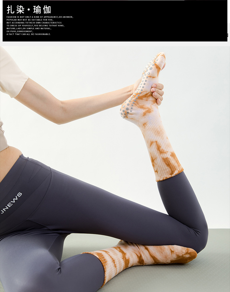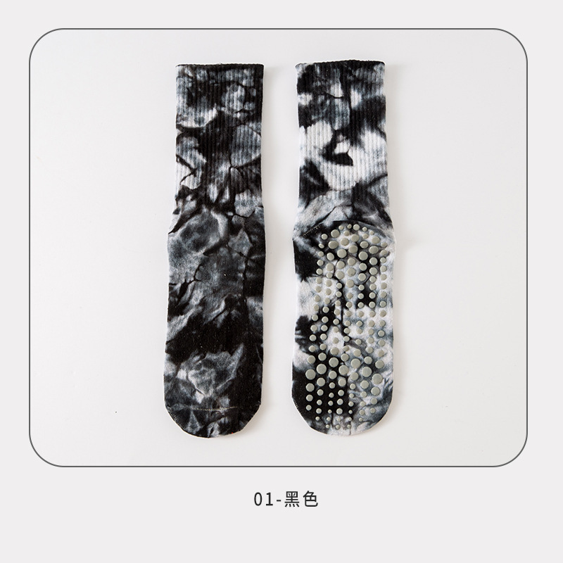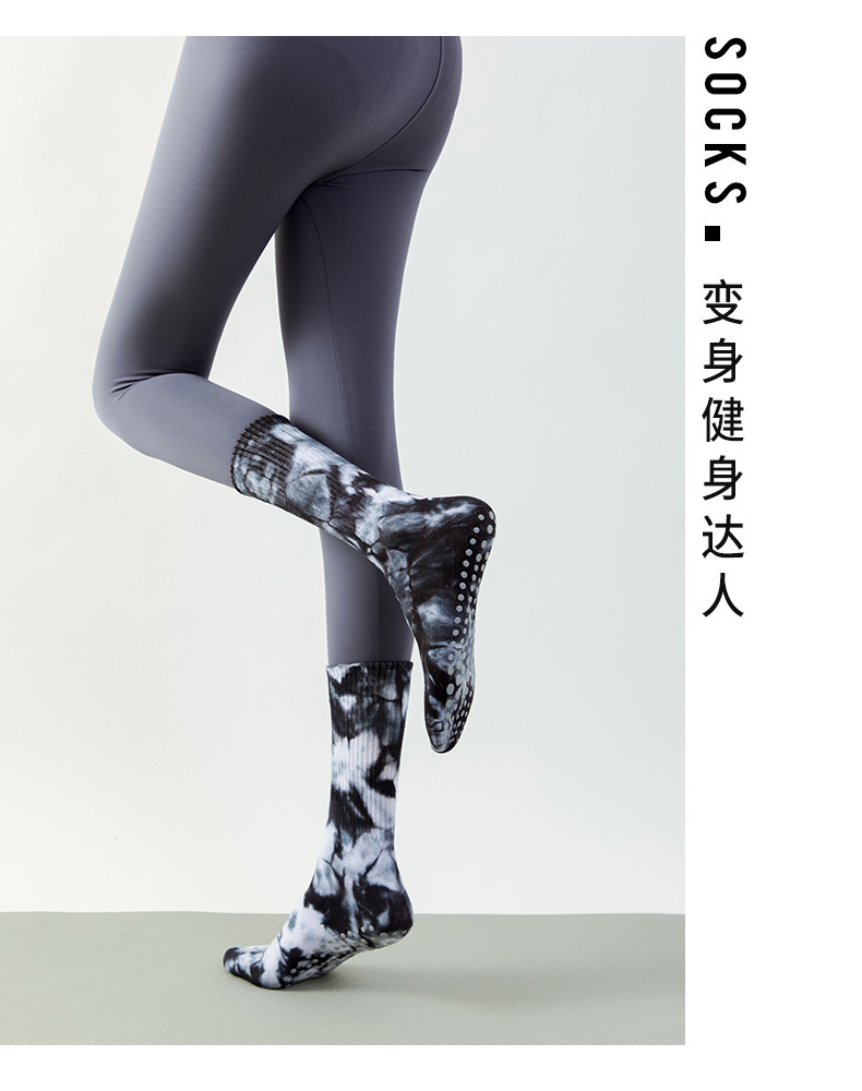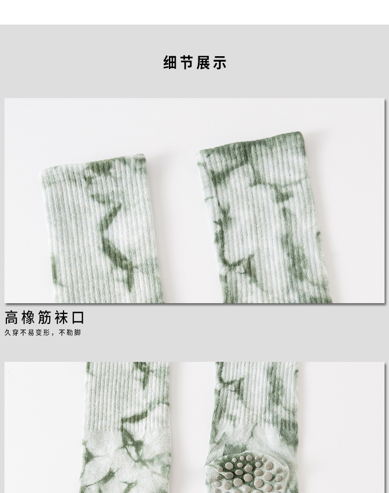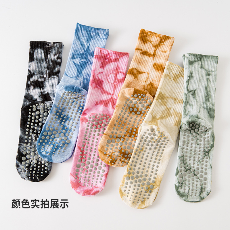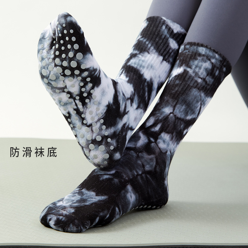 中筒瑜伽袜时尚扎染女生袜子防滑脚底吸汗透气居家普拉提运动潮袜