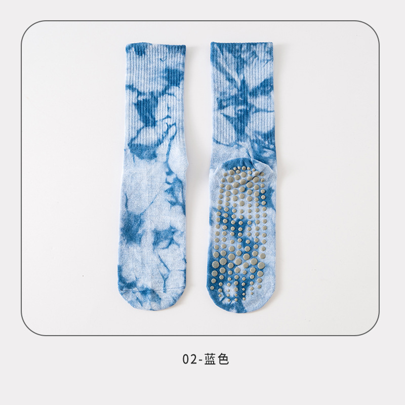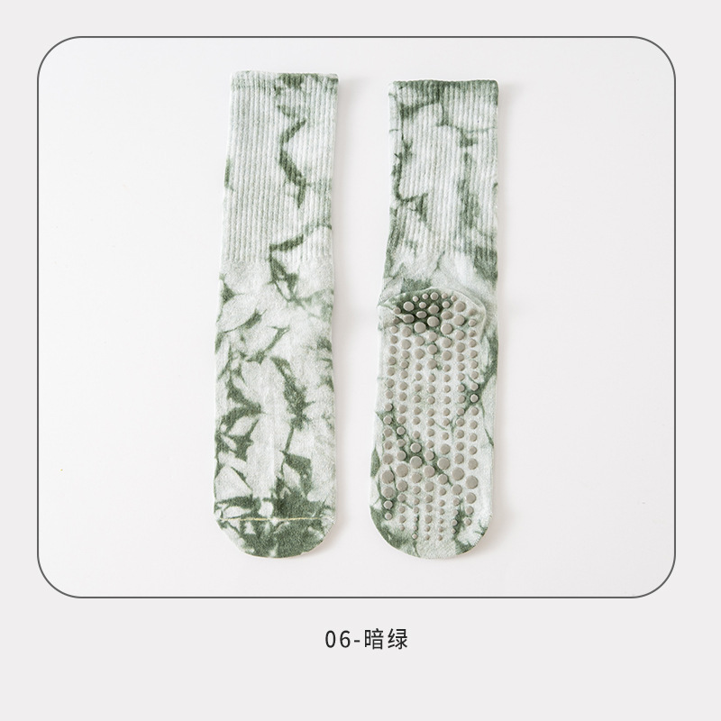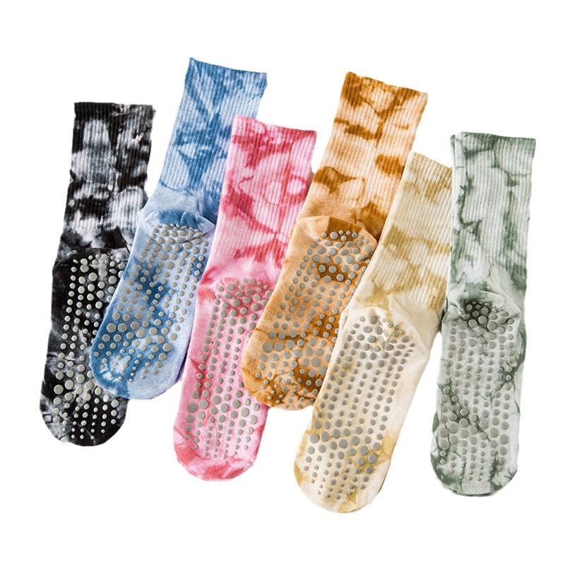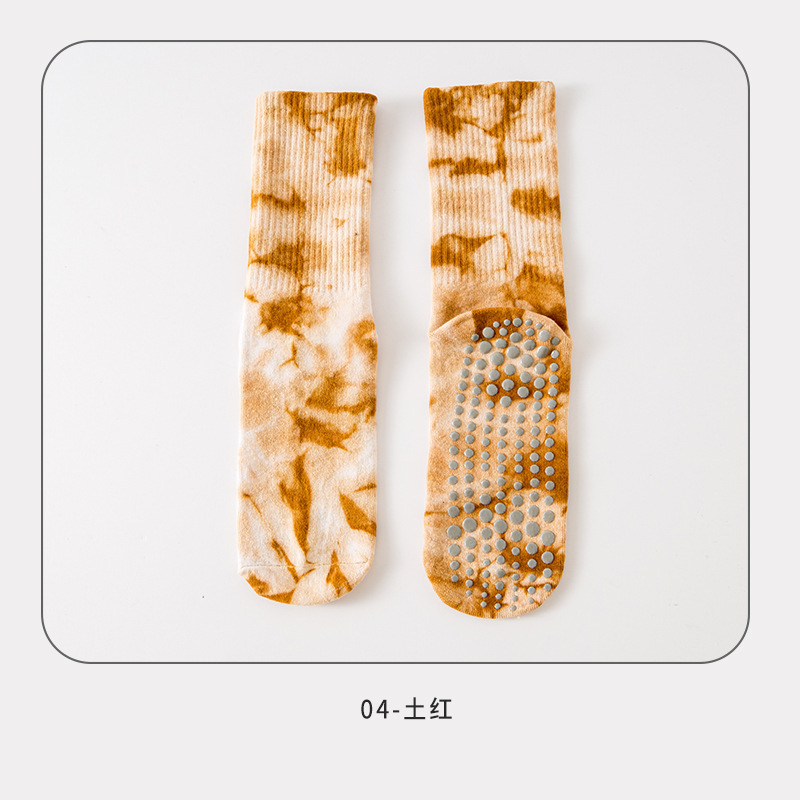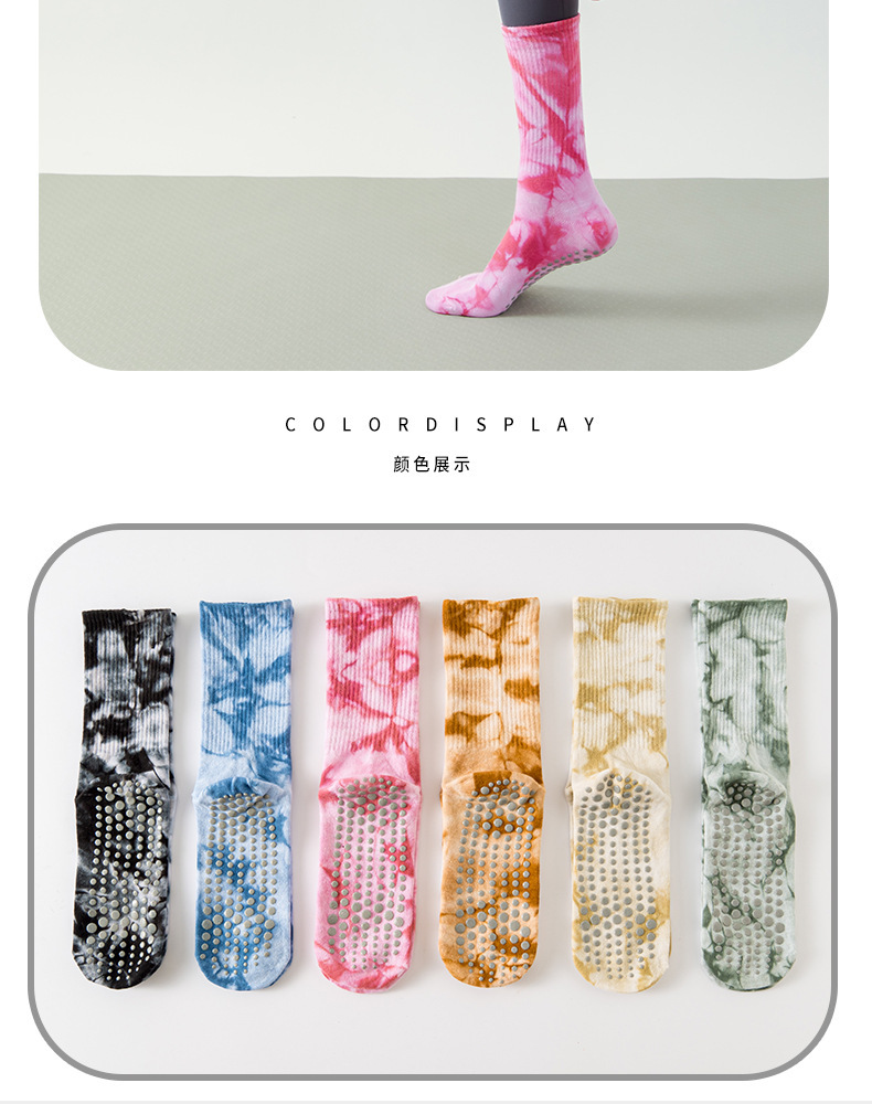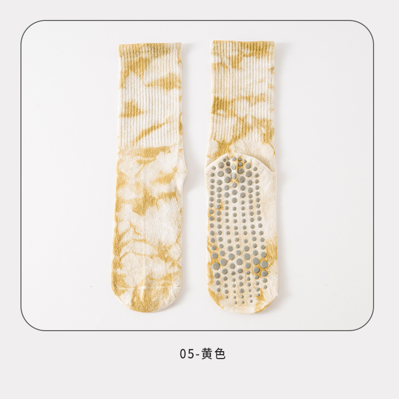 中筒瑜伽袜时尚扎染女生袜子防滑脚底吸汗透气居家普拉提运动潮袜
