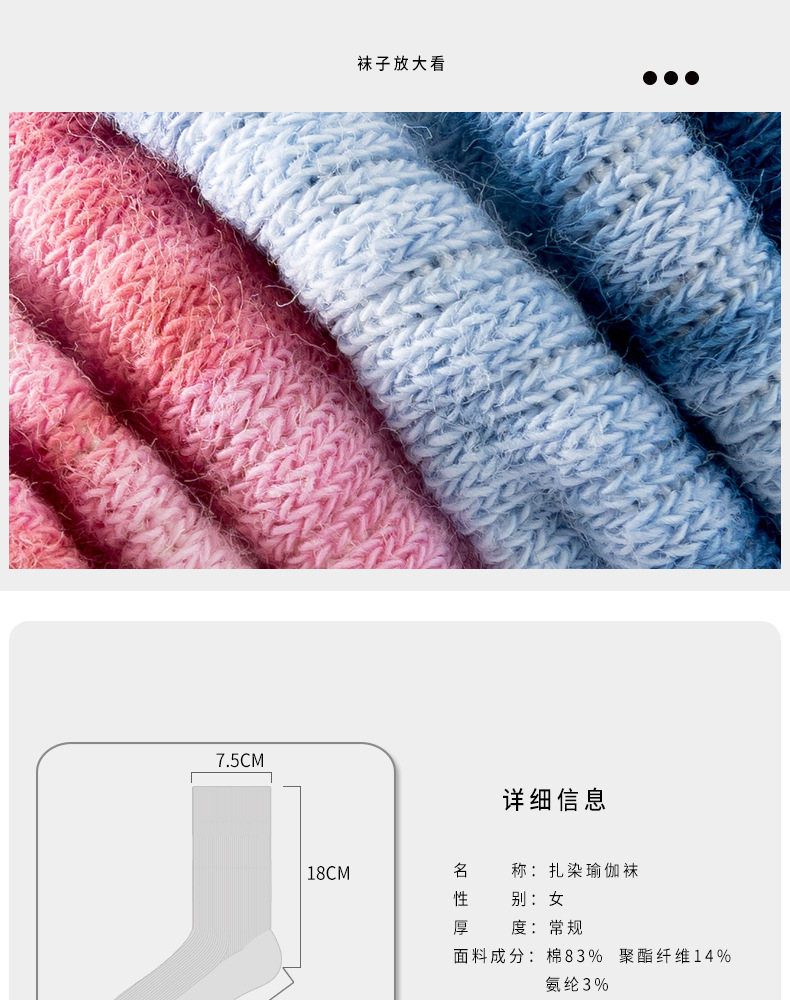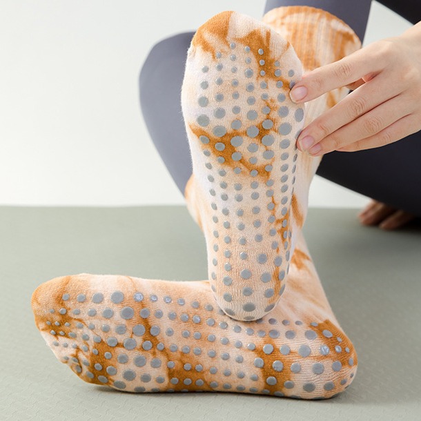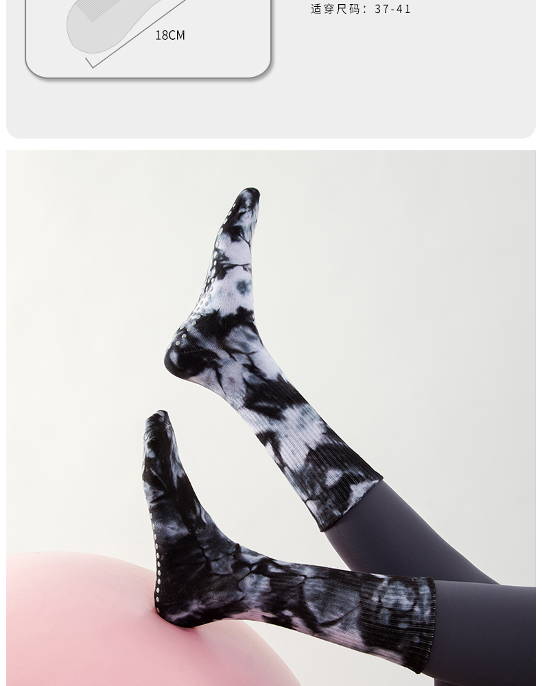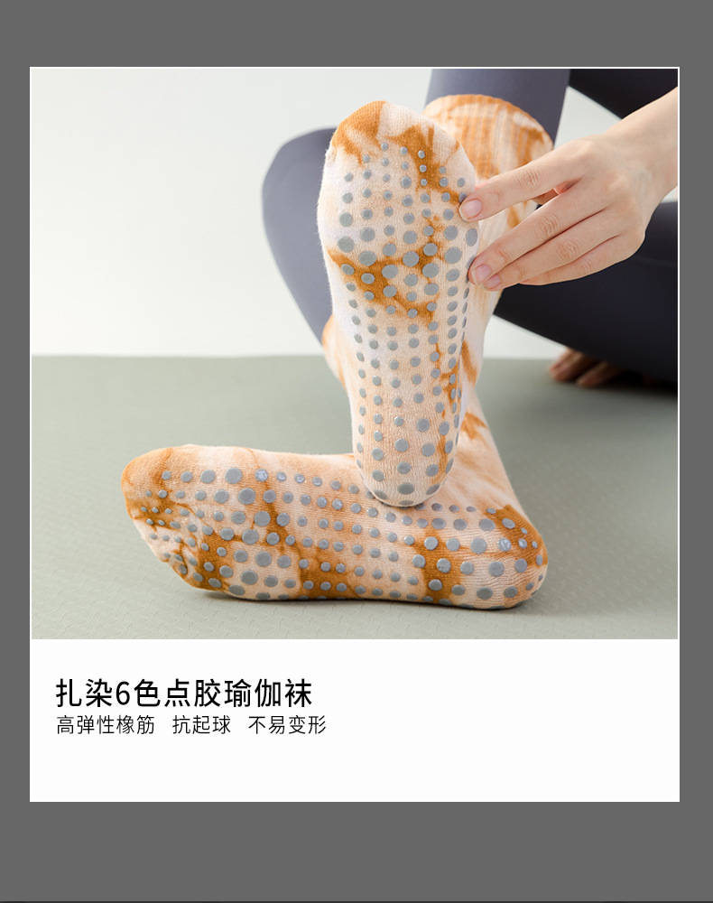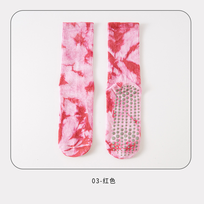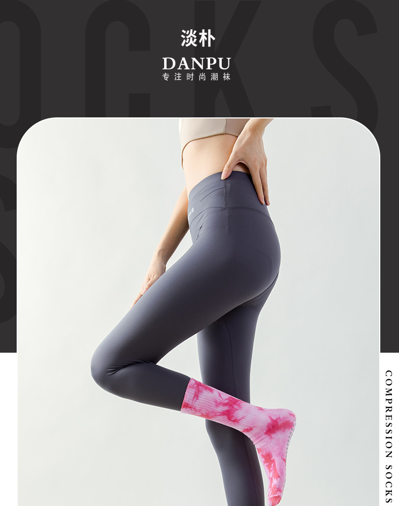 中筒瑜伽袜时尚扎染女生袜子防滑脚底吸汗透气居家普拉提运动潮袜