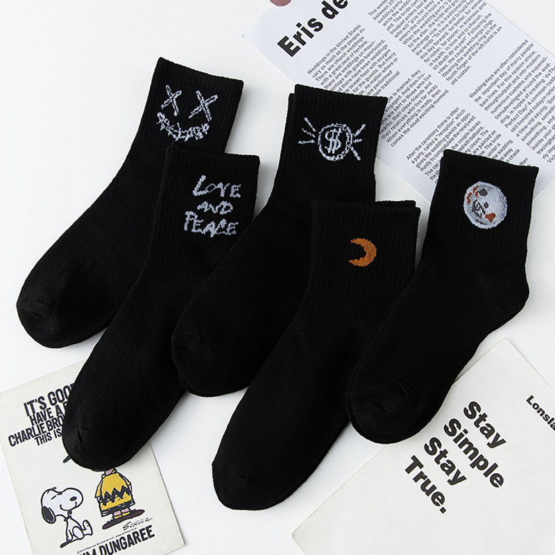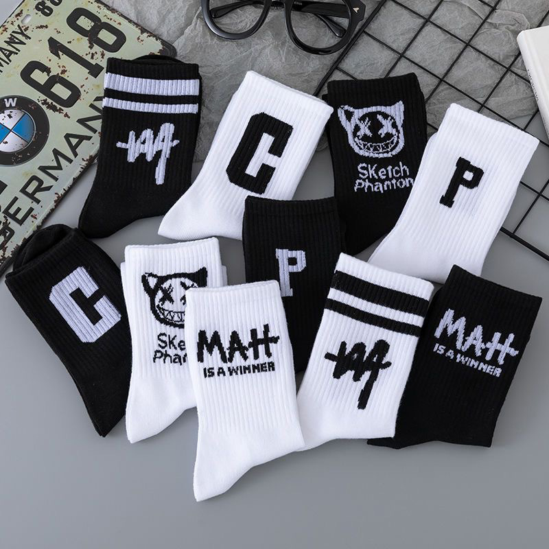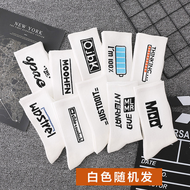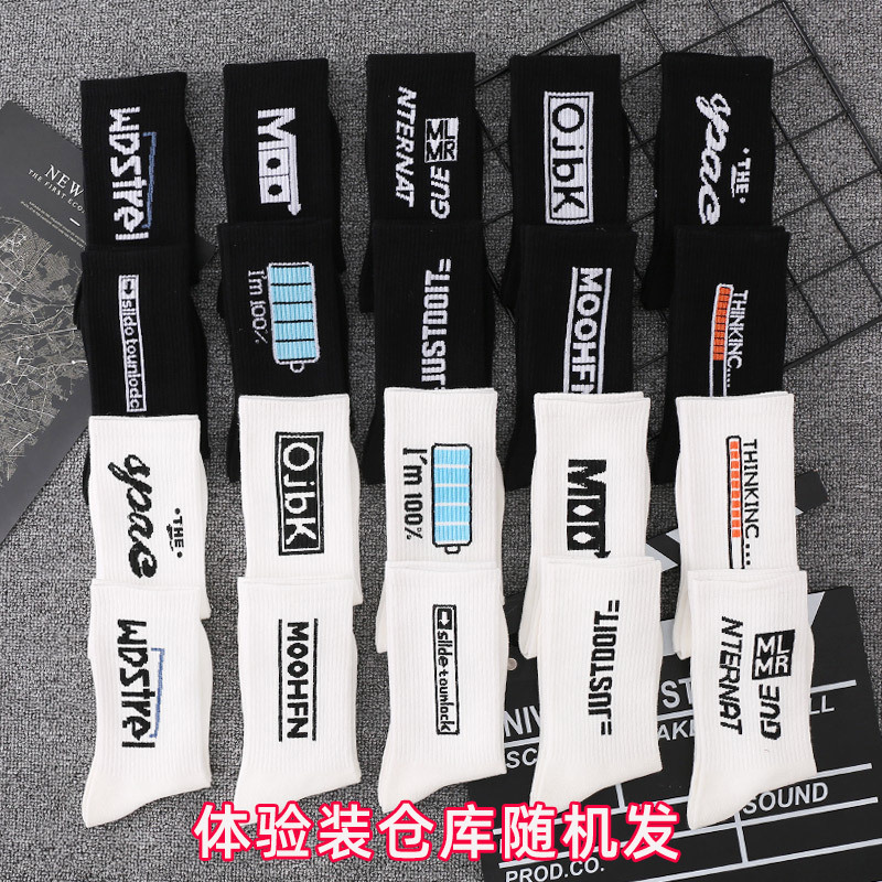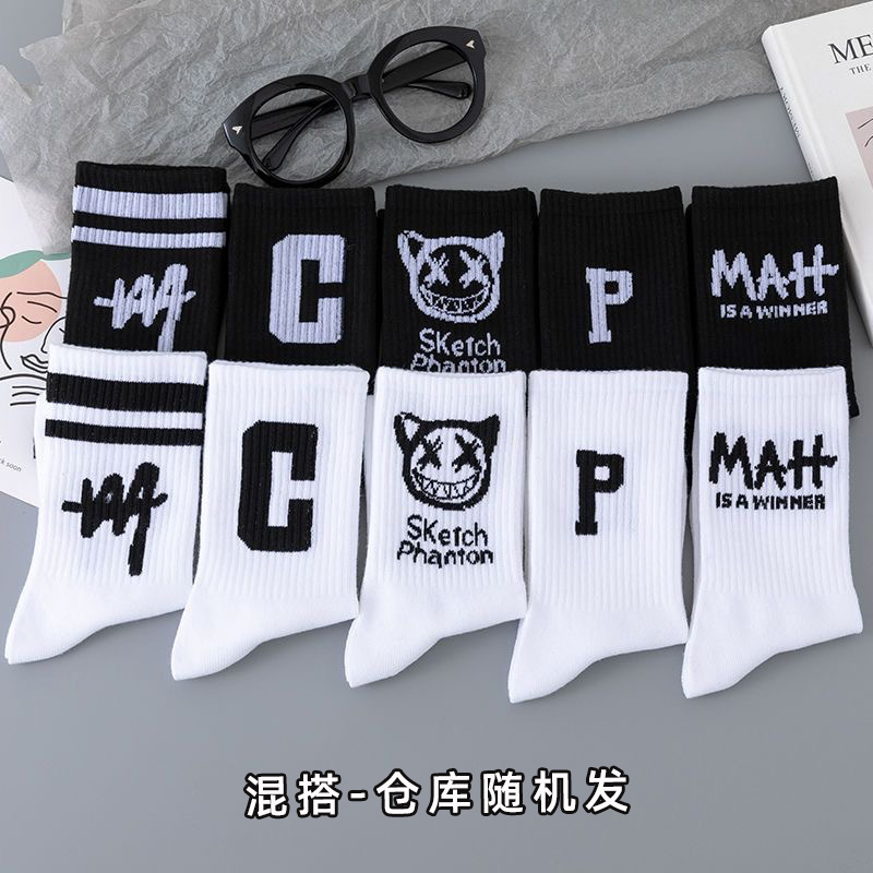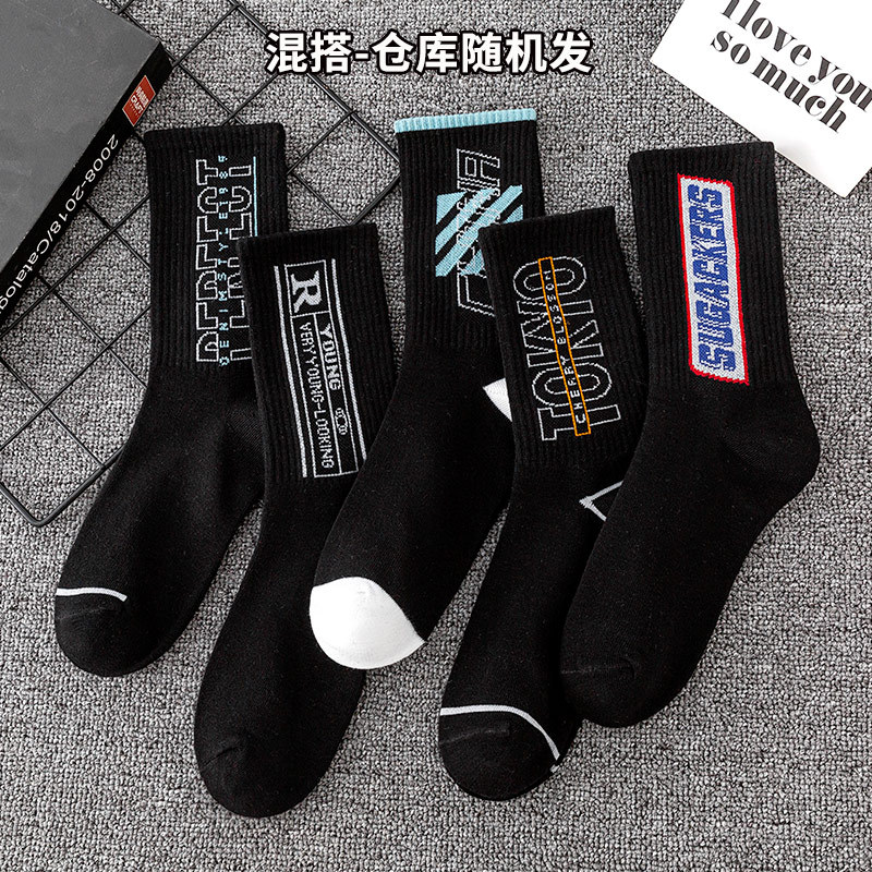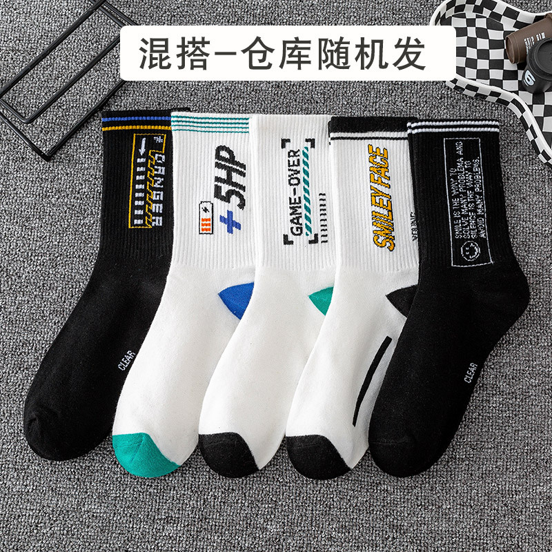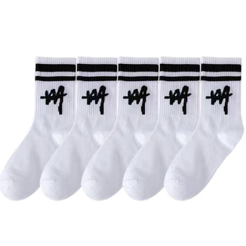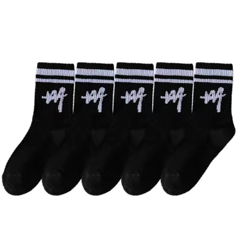 情侣船袜学生运动棉袜外贸批发春夏季黑白色篮球长袜男款中筒袜子