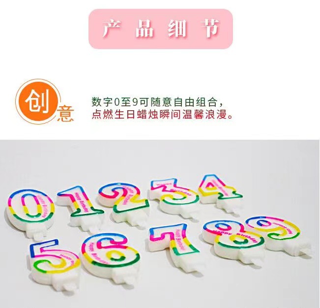 【产品名称】:彩边英文数字蜡烛